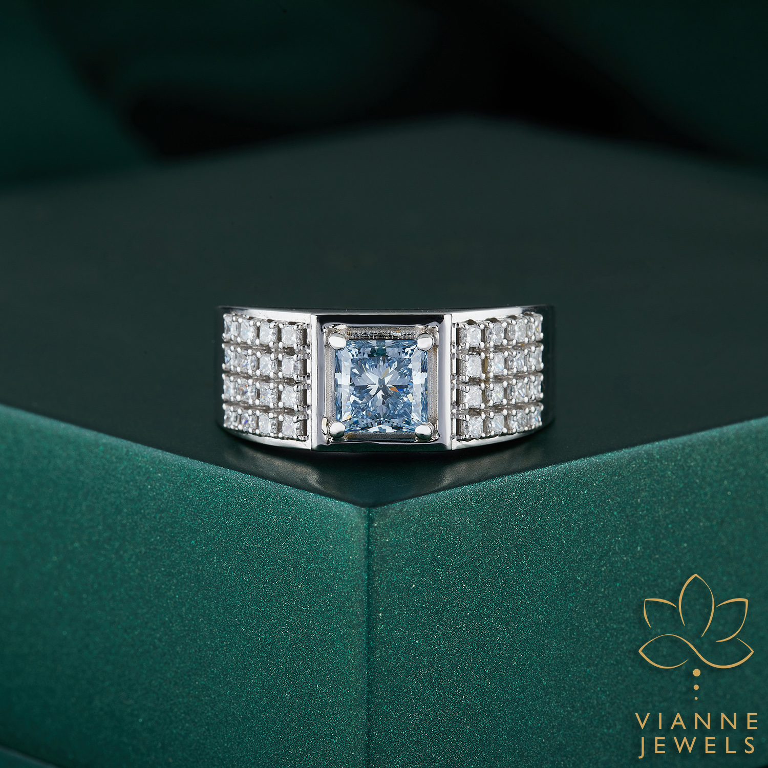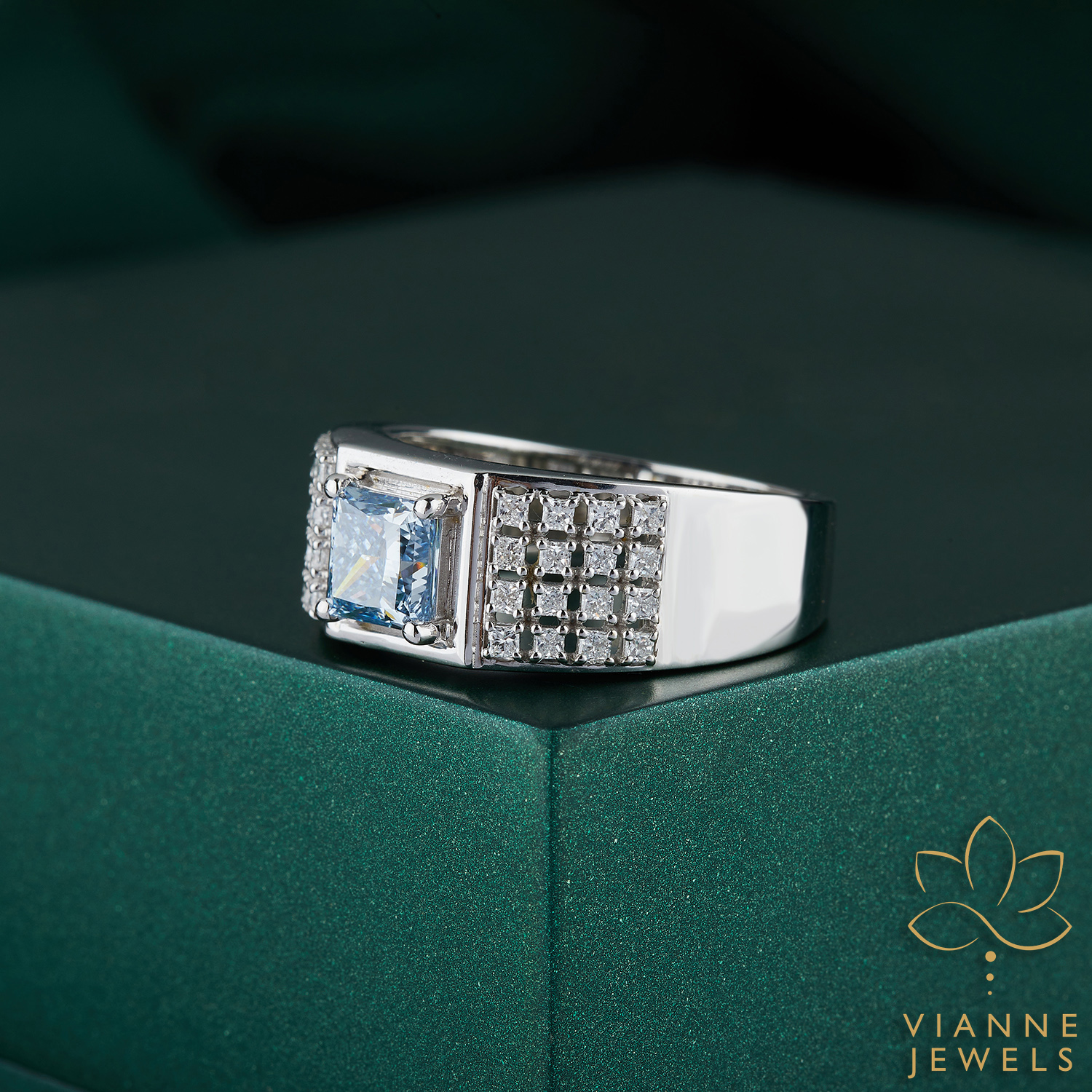 Crafted with meticulous attention to detail, the ring’s structure takes inspiration from contemporary architecture, with clean lines and a robust silhouette that speaks to a love of form and function. The central diamond, a lab-grown creation of unmatched purity and fire, is showcased within a secure bezel setting, highlighting its clarity and brilliance.