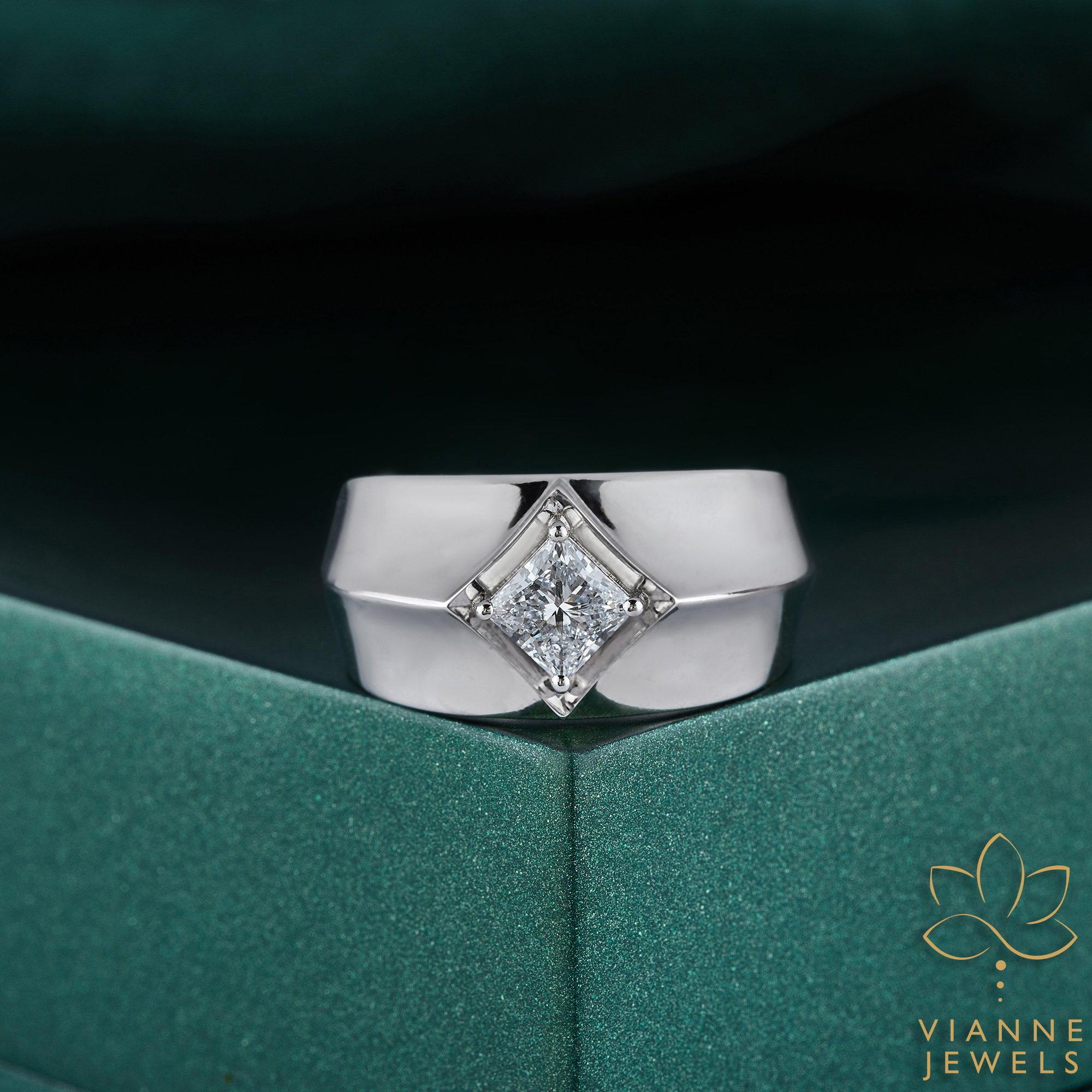 “Step into the future of fine jewelry with our Architectural Splendor Signet Ring. This piece reimagines the classic signet ring with a modern twist, featuring a prominently set princess-cut lab-grown diamond that takes center stage. The diamond’s precise cuts and symmetrical shape echo the clean lines and powerful form of modern architecture, making this ring a statement piece for any wearer.