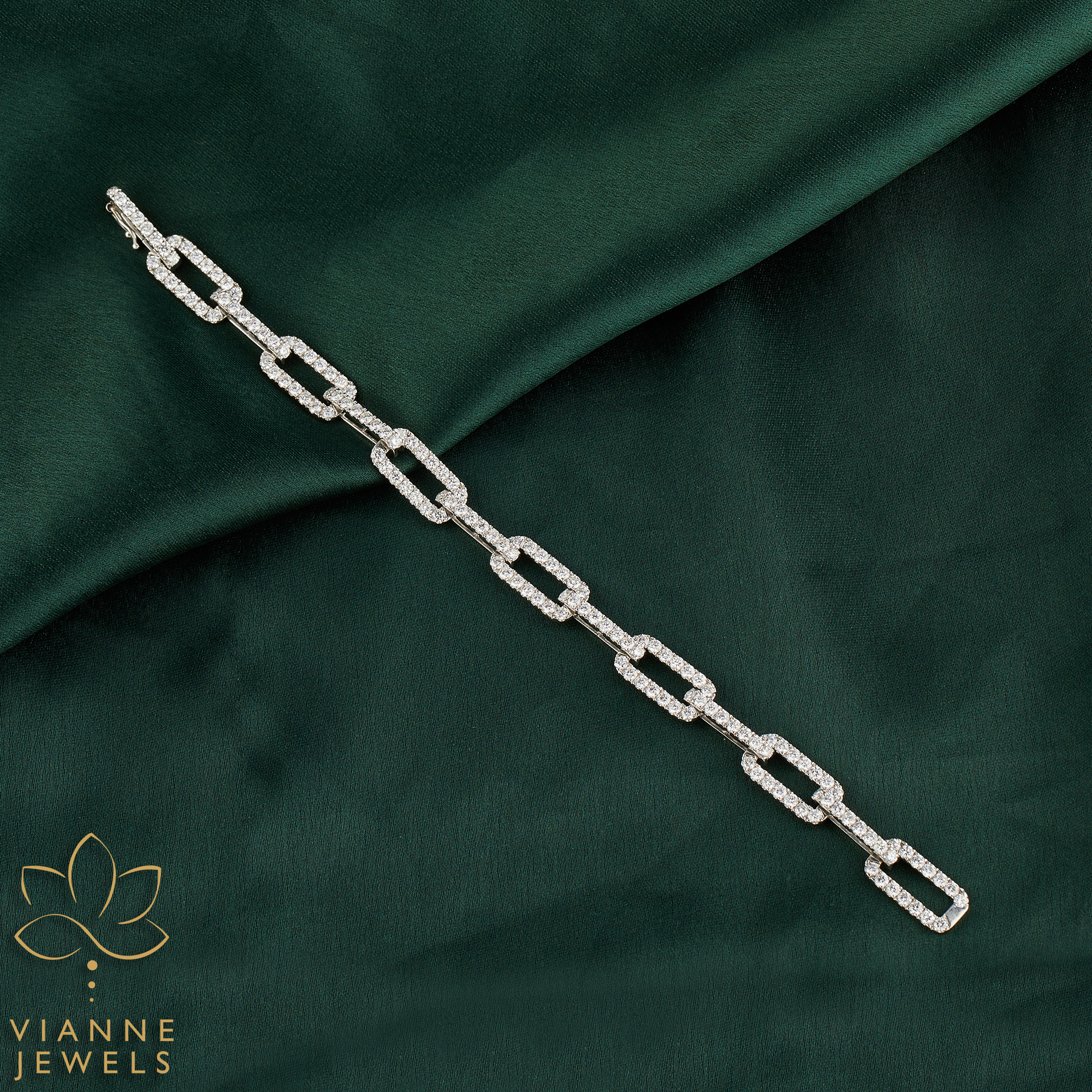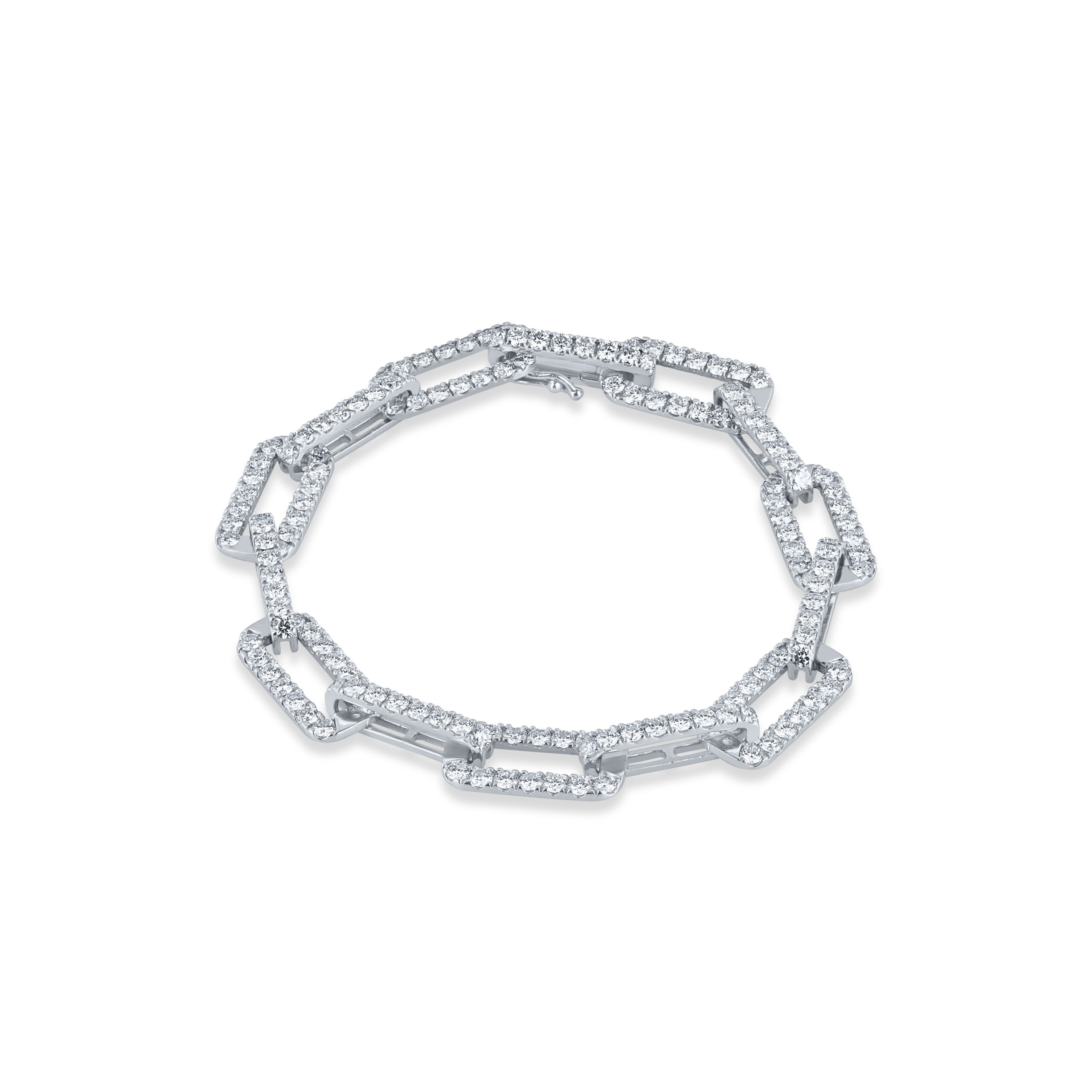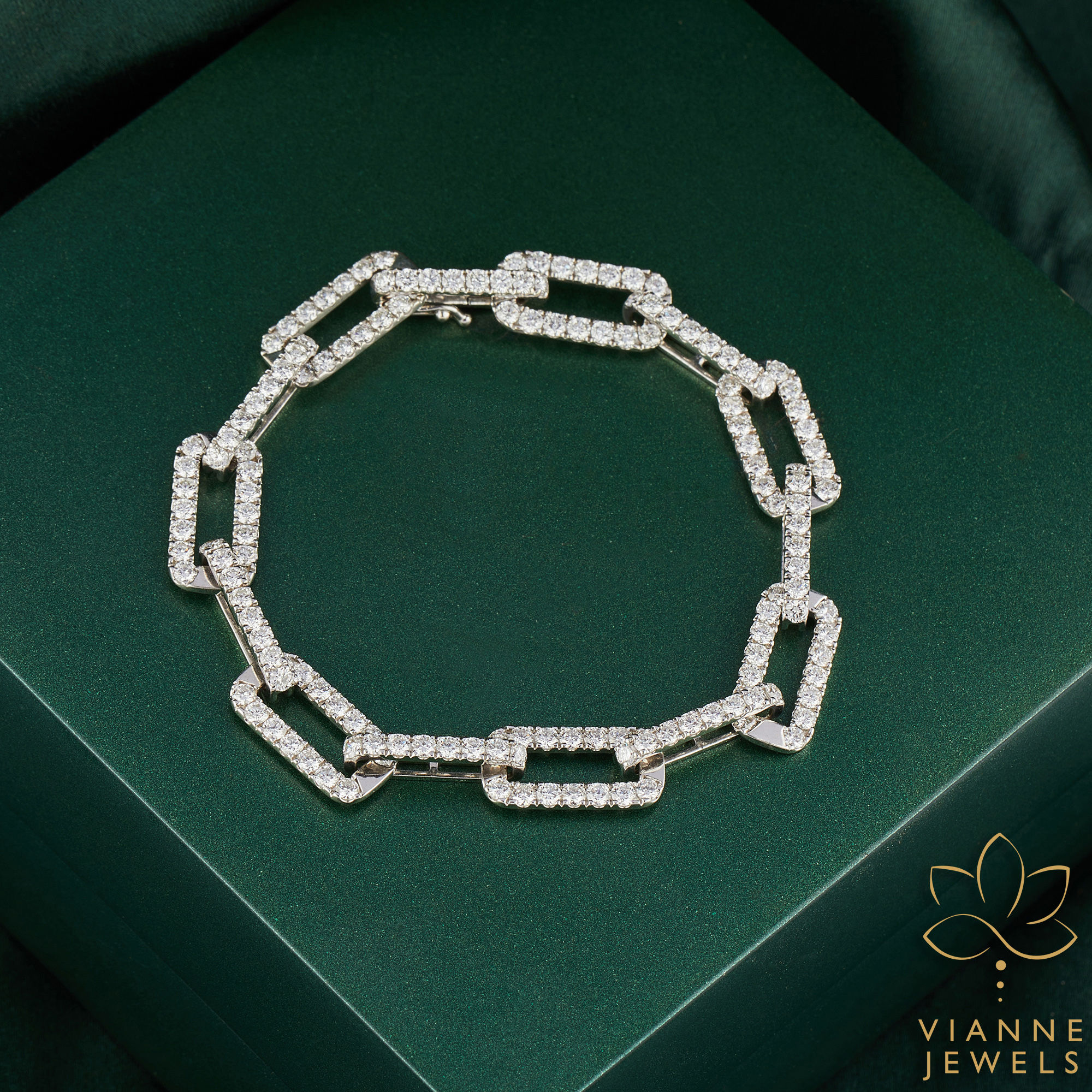 “Introducing our Artisan-Crafted Geometric Elegance Bracelet, a testament to sustainable luxury and meticulous design. Each link of this stunning piece is a celebration of precision, featuring a collection of lab-grown diamonds that offer the same brilliance as mined diamonds, while being an eco-friendly choice for the discerning buyer.