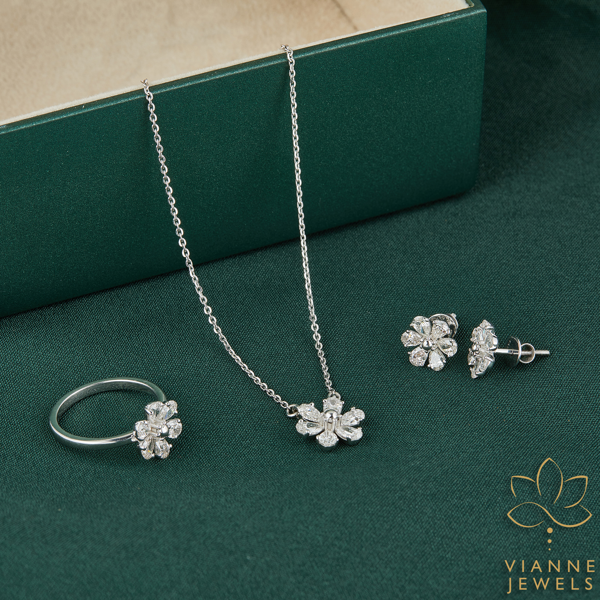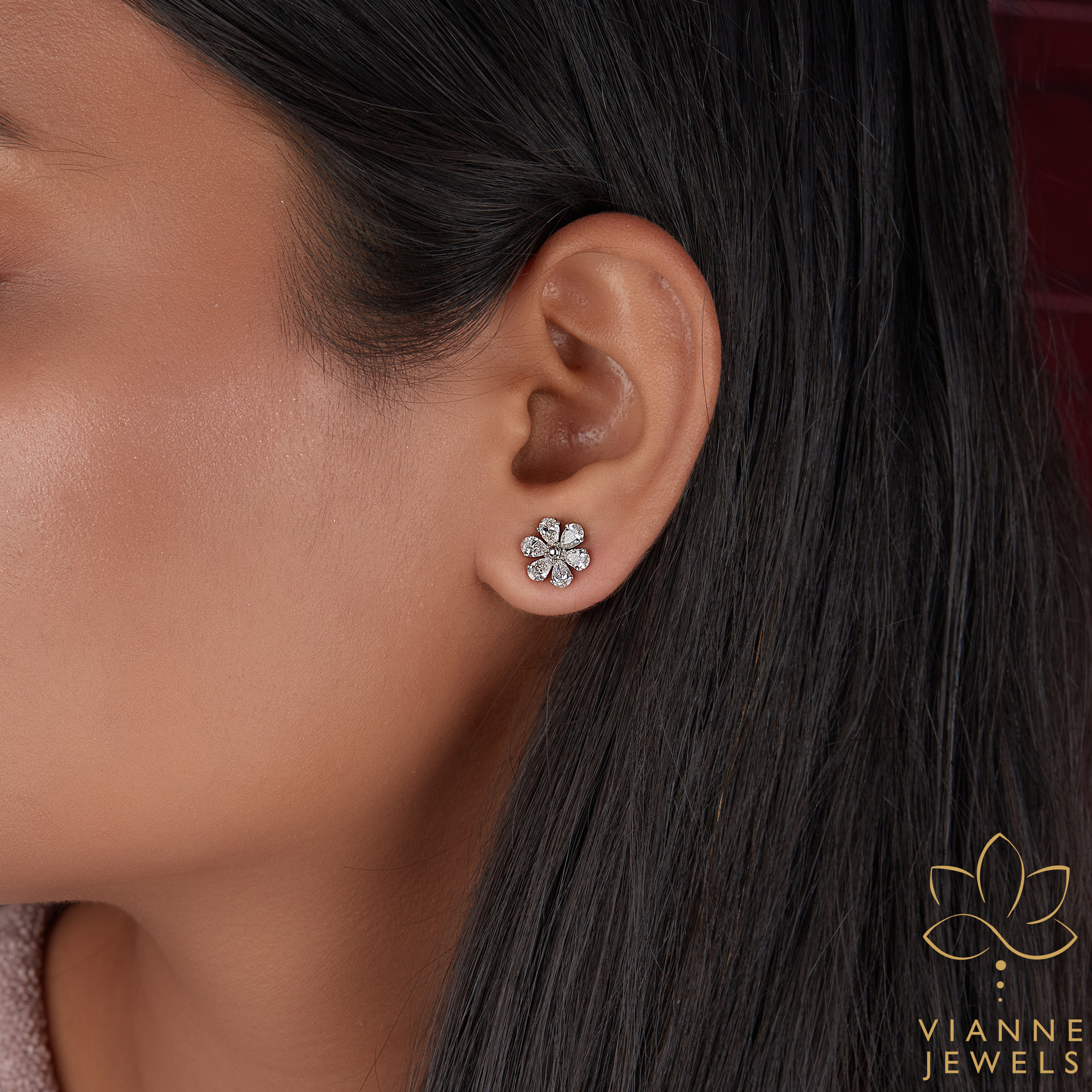 Each pair of our floral diamond earrings is securely fastened with a post and butterfly back, providing peace of mind for all-day wear. They arrive in a luxurious box, making them an impeccable gift for a loved one or a special treat for yourself.