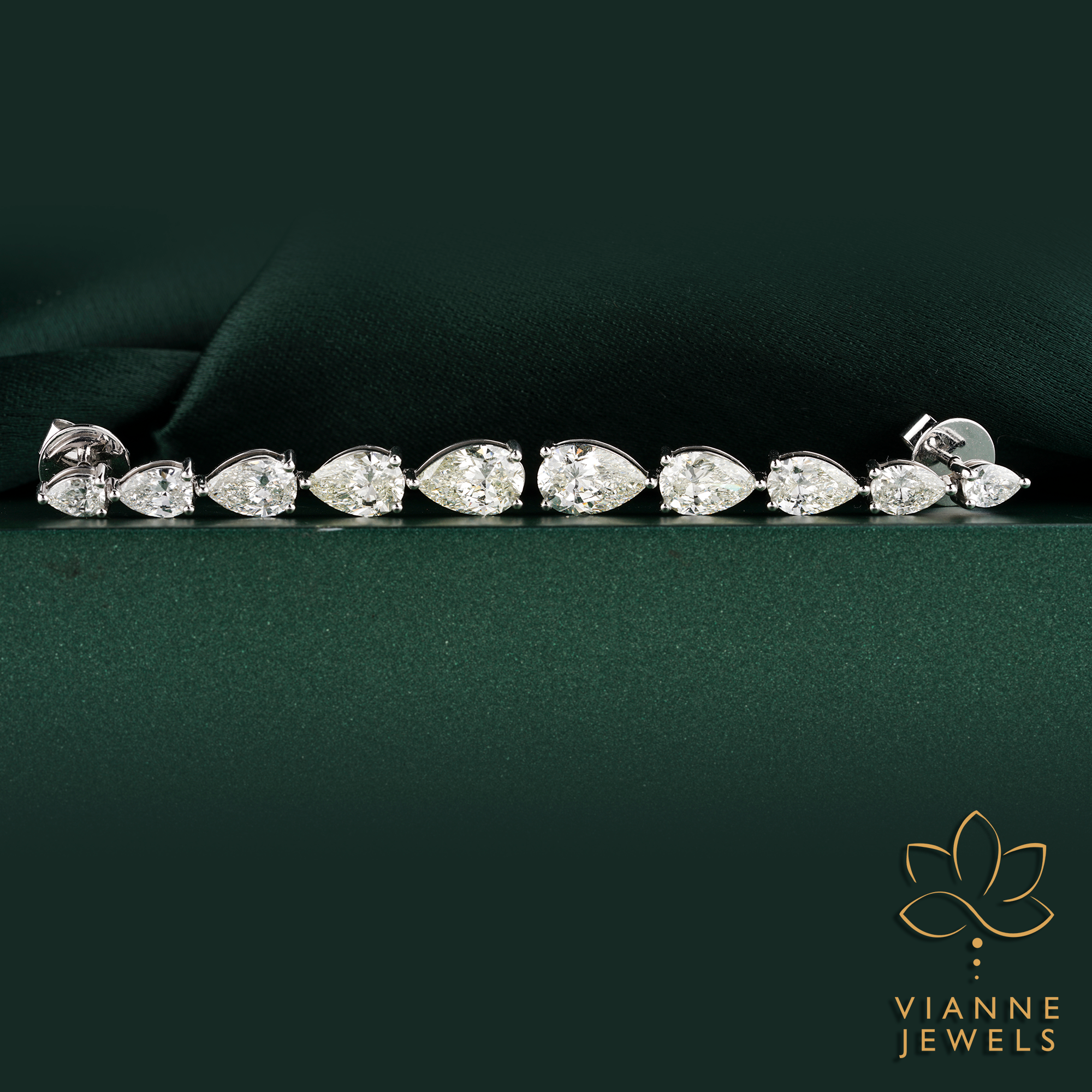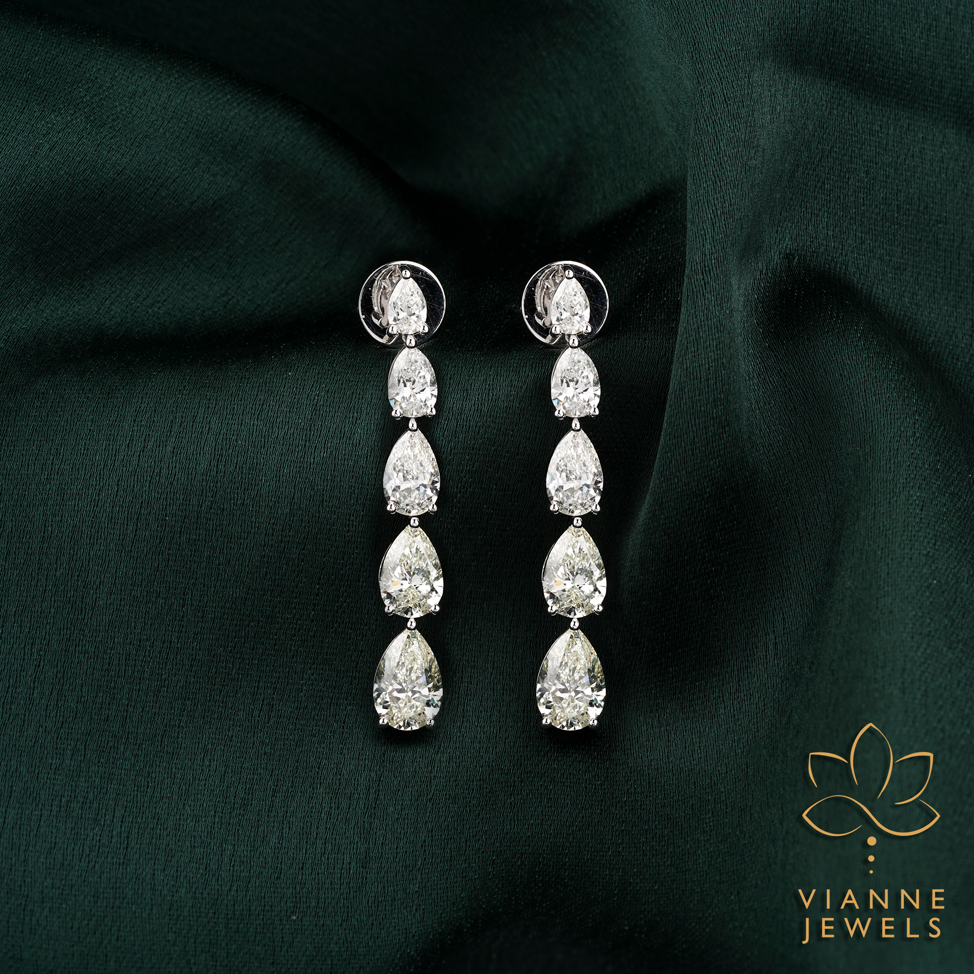 Fashioned in lustrous, eco-friendly gold, these earrings present a journey of sparkle from the round diamond at the post to the exquisite teardrop diamond at the end of the cascade. The conscious choice of lab-grown diamonds not only reflects a commitment to environmental responsibility but also offers a guilt-free indulgence in fine jewelry.