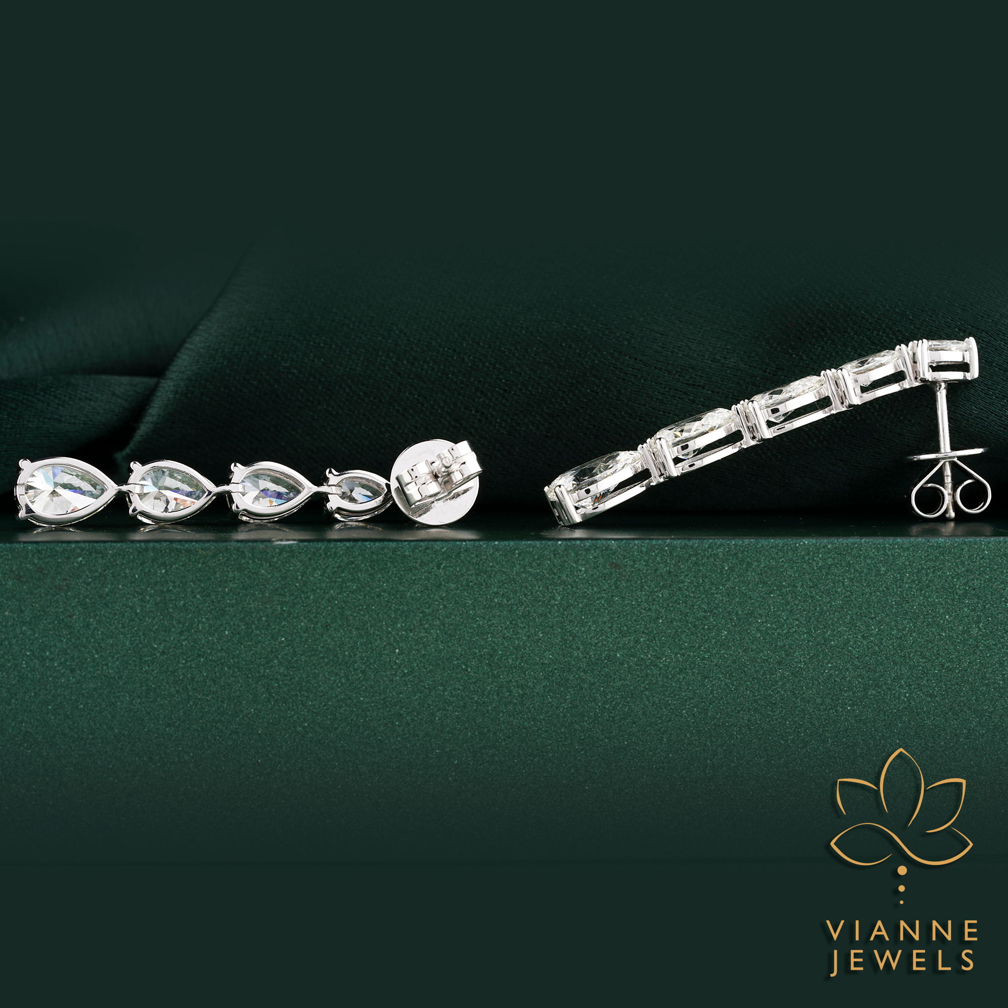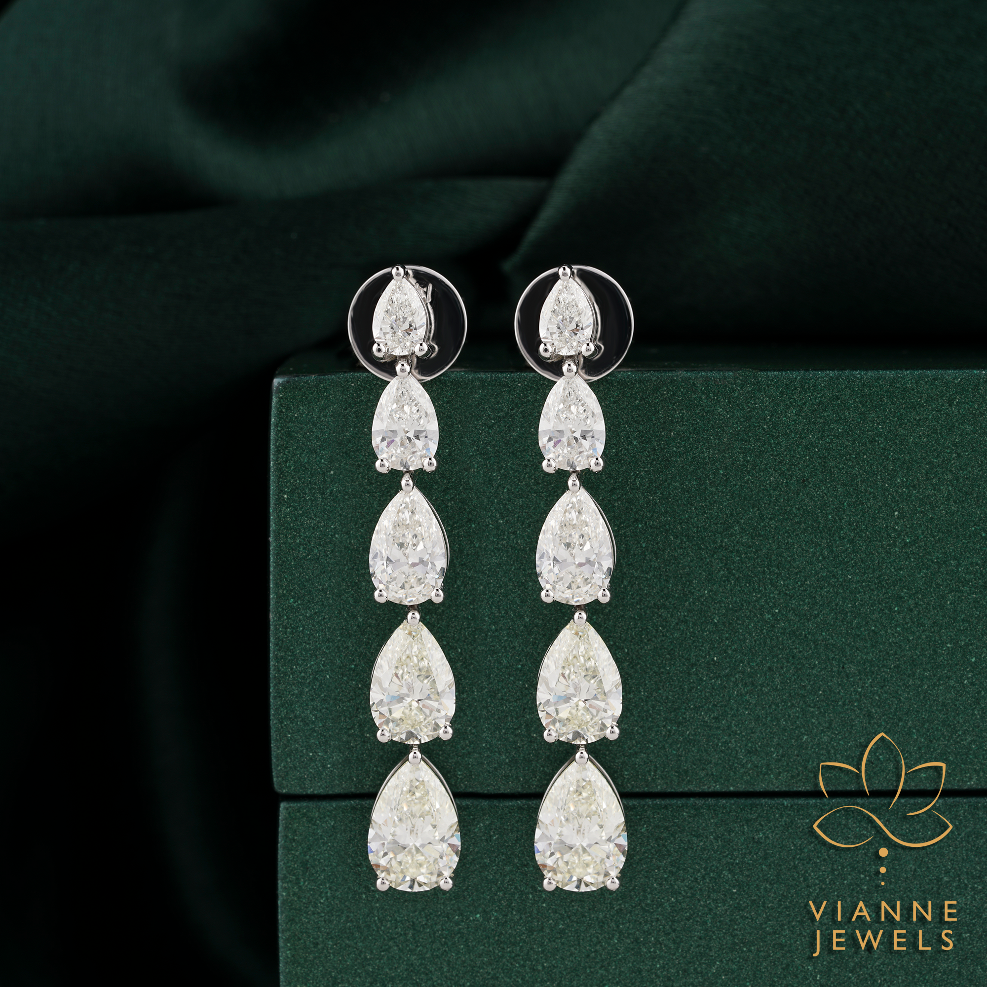 Embrace the allure of modern luxury with our Chic Cascade Teardrop Lab Diamond Drop Earrings. Each piece is a testament to elegance, featuring a series of expertly faceted lab-grown diamonds that dangle delicately, catching the light with every movement.