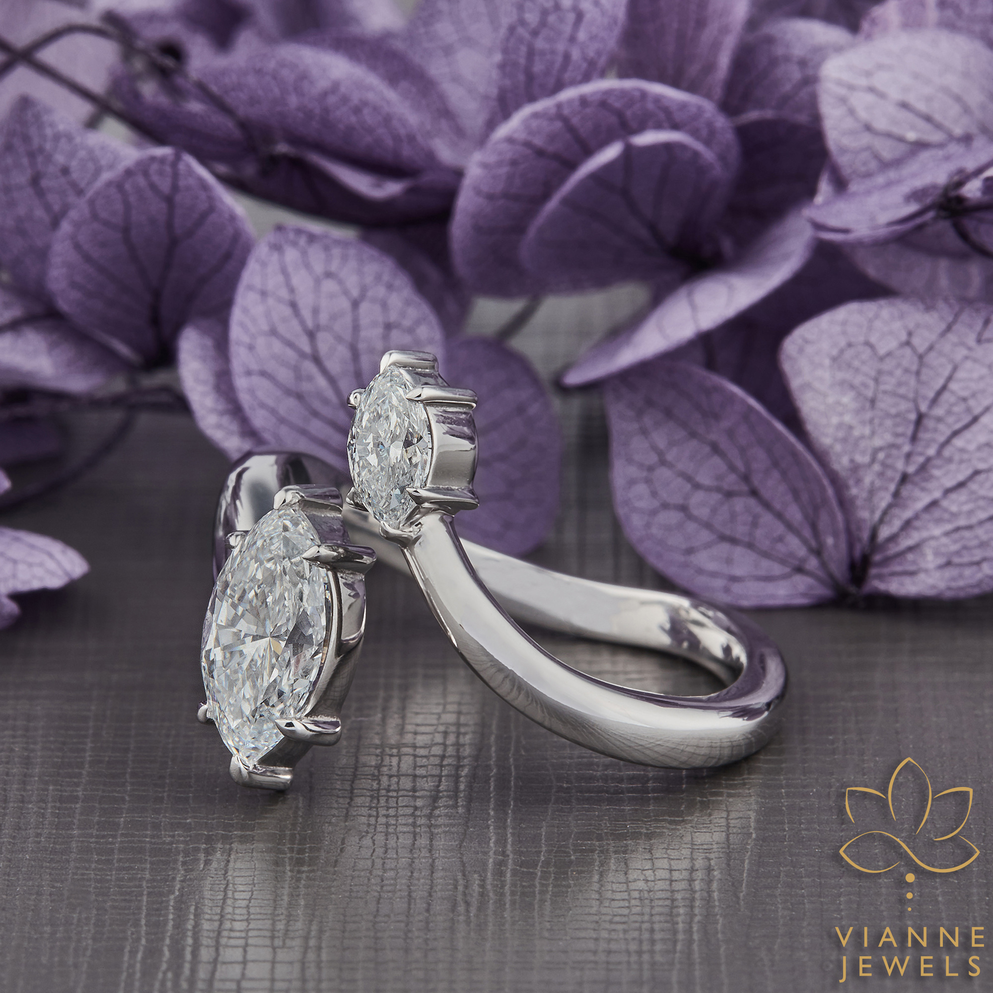 Introducing our latest creation, the Chic Marquise toi-moi Ring, where contemporary design meets classic beauty. This exquisite piece is the epitome of modern style, designed for those who appreciate the grace of minimalism combined with the allure of diamonds.