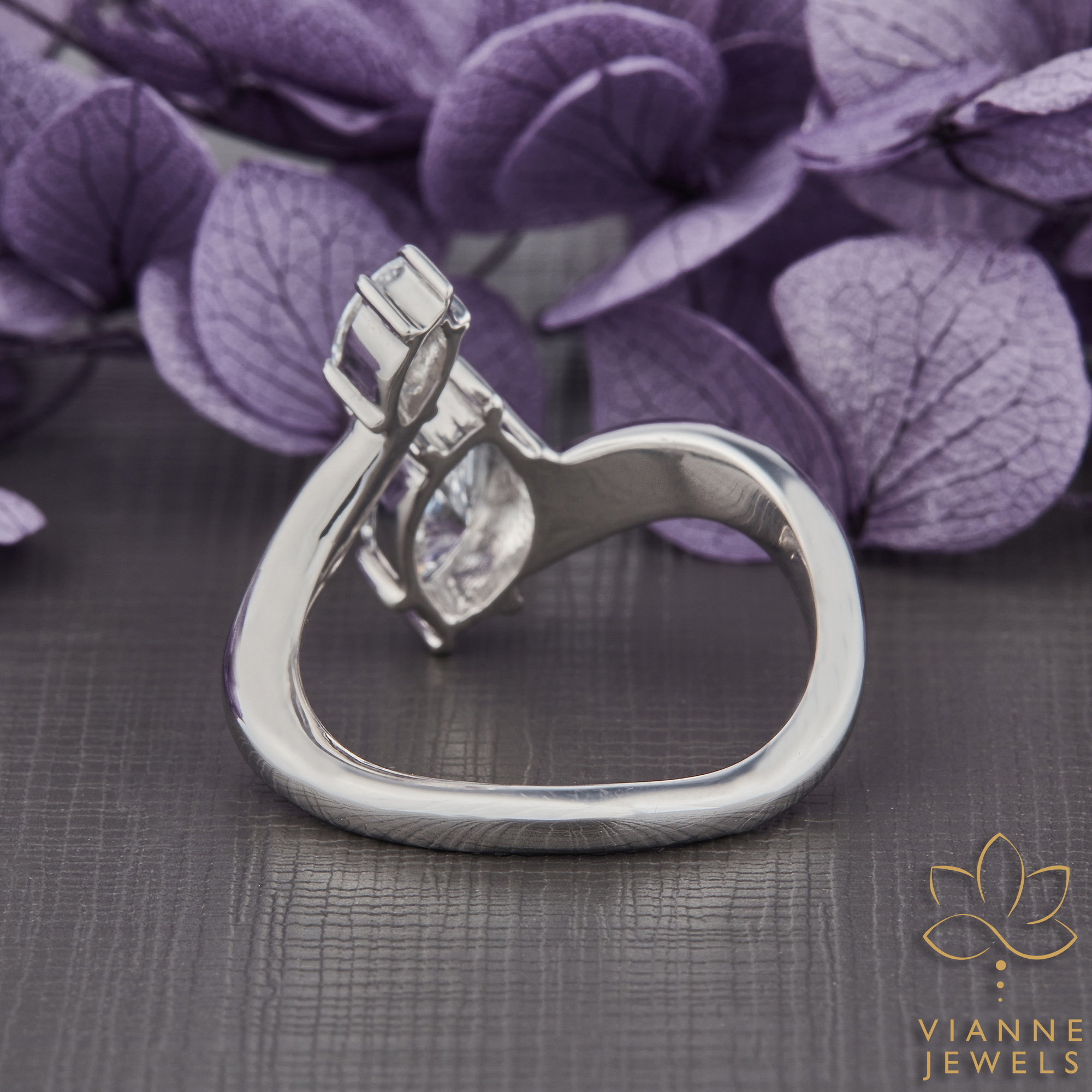 Craftsmanship & Quality: Expertly fashioned from the finest sterling silver, this ring presents a polished finish that radiates with every movement. The marquise diamond is meticulously set, showcasing its brilliance in a sophisticated twist design that symbolizes the unexpected turns in the journey of love.