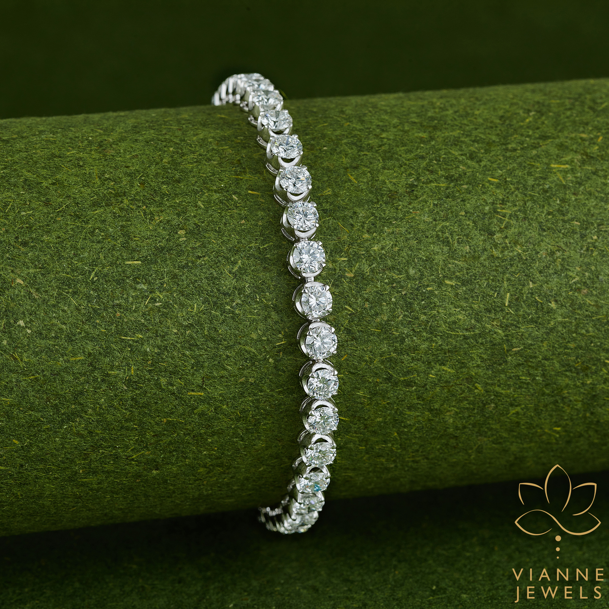 The “Circle of Light” bracelet is a celebration of classic beauty and contemporary craftsmanship. Elegantly crafted from 14K white gold, this full eternity bracelet is adorned with a continuous loop of lab-grown diamonds, each perfectly aligned to create an unbroken circle of brilliance around your wrist.