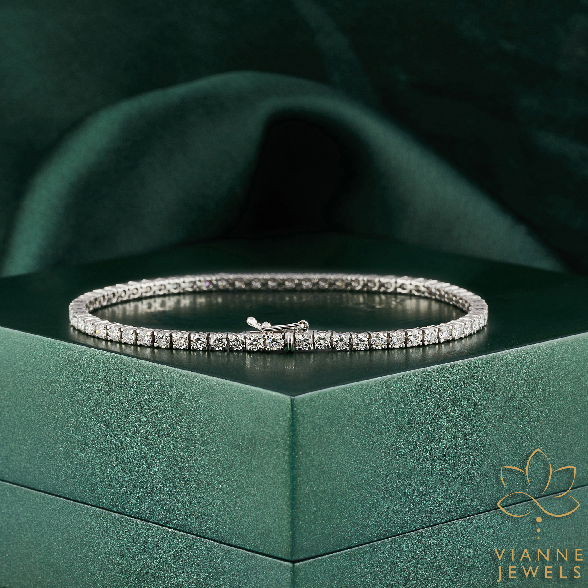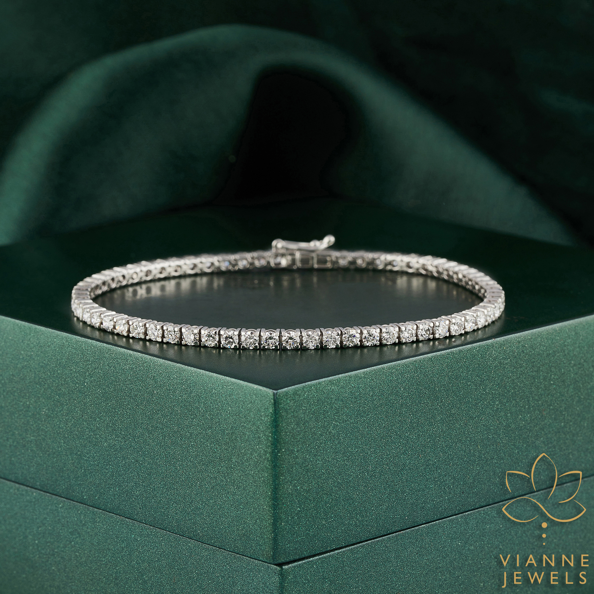 The design of this bracelet is a modern take on the classic tennis bracelet, with a secure and discreet clasp that blends seamlessly into the design. It’s perfect for adding a touch of sophistication to any attire, from the casual elegance of daytime wear to the full glamour of evening events.