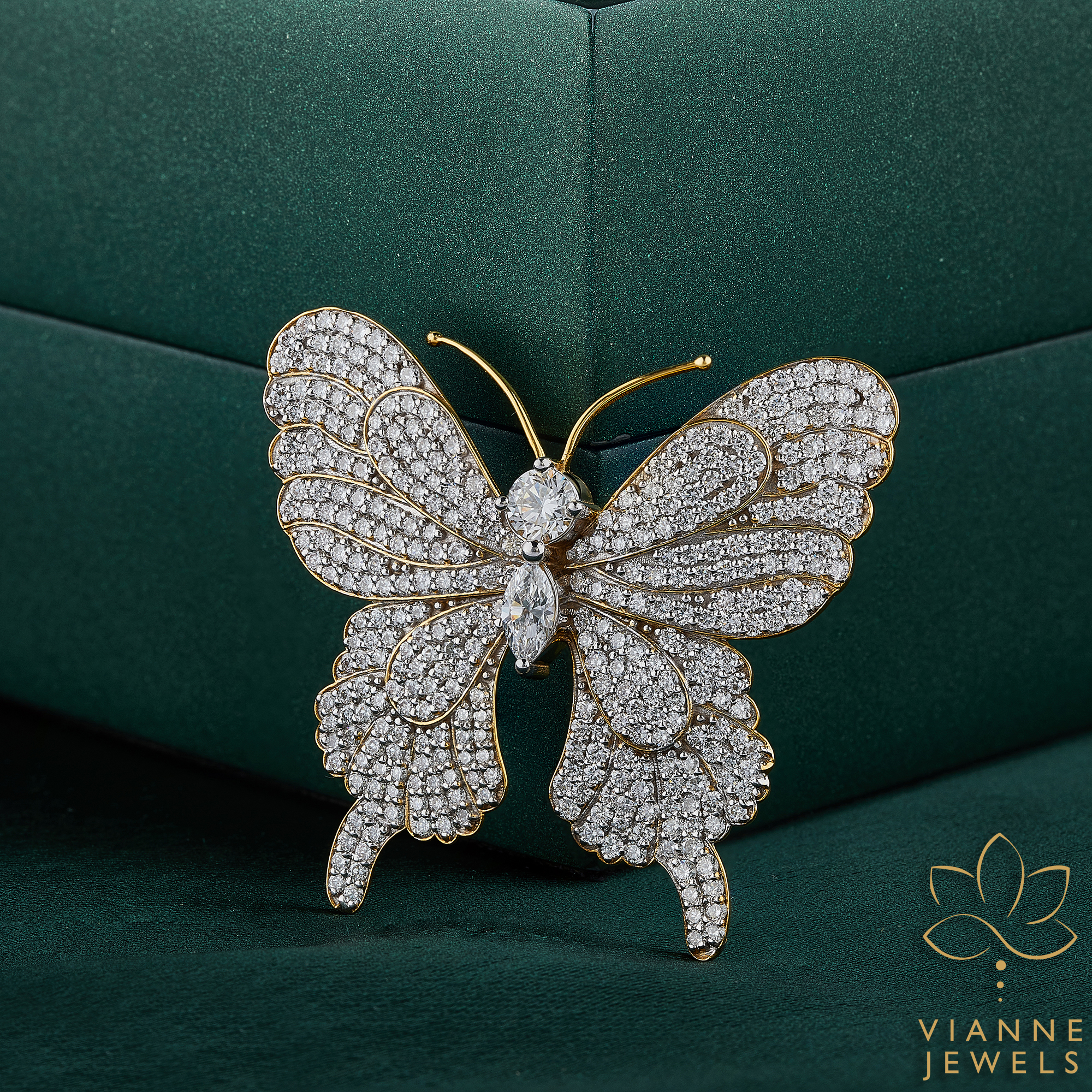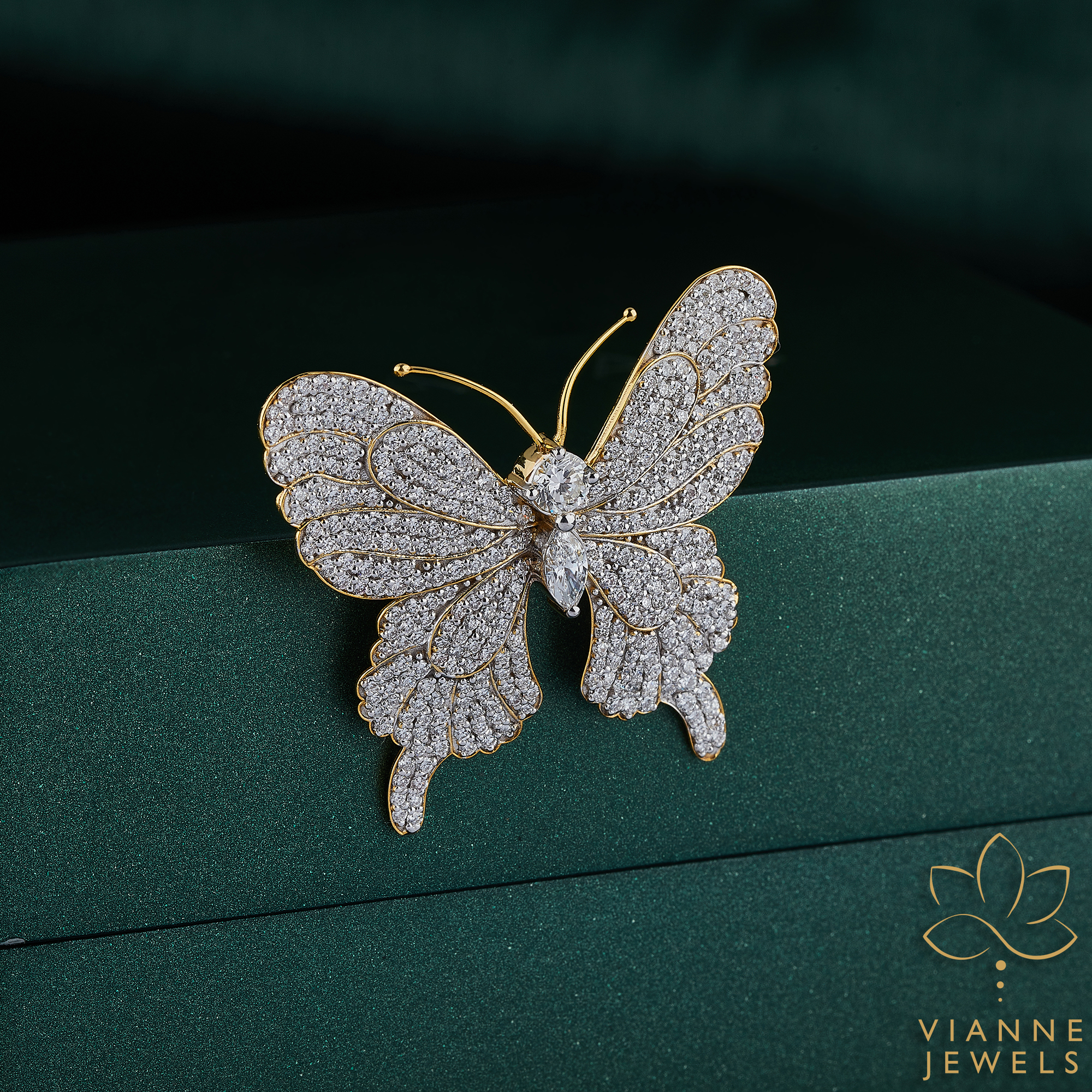 Our Diamond Splendor Butterfly Brooch is a symbol of transformation and beauty, meticulously crafted to catch every eye with its radiant lab-grown diamonds and exquisite 18K gold detailing.