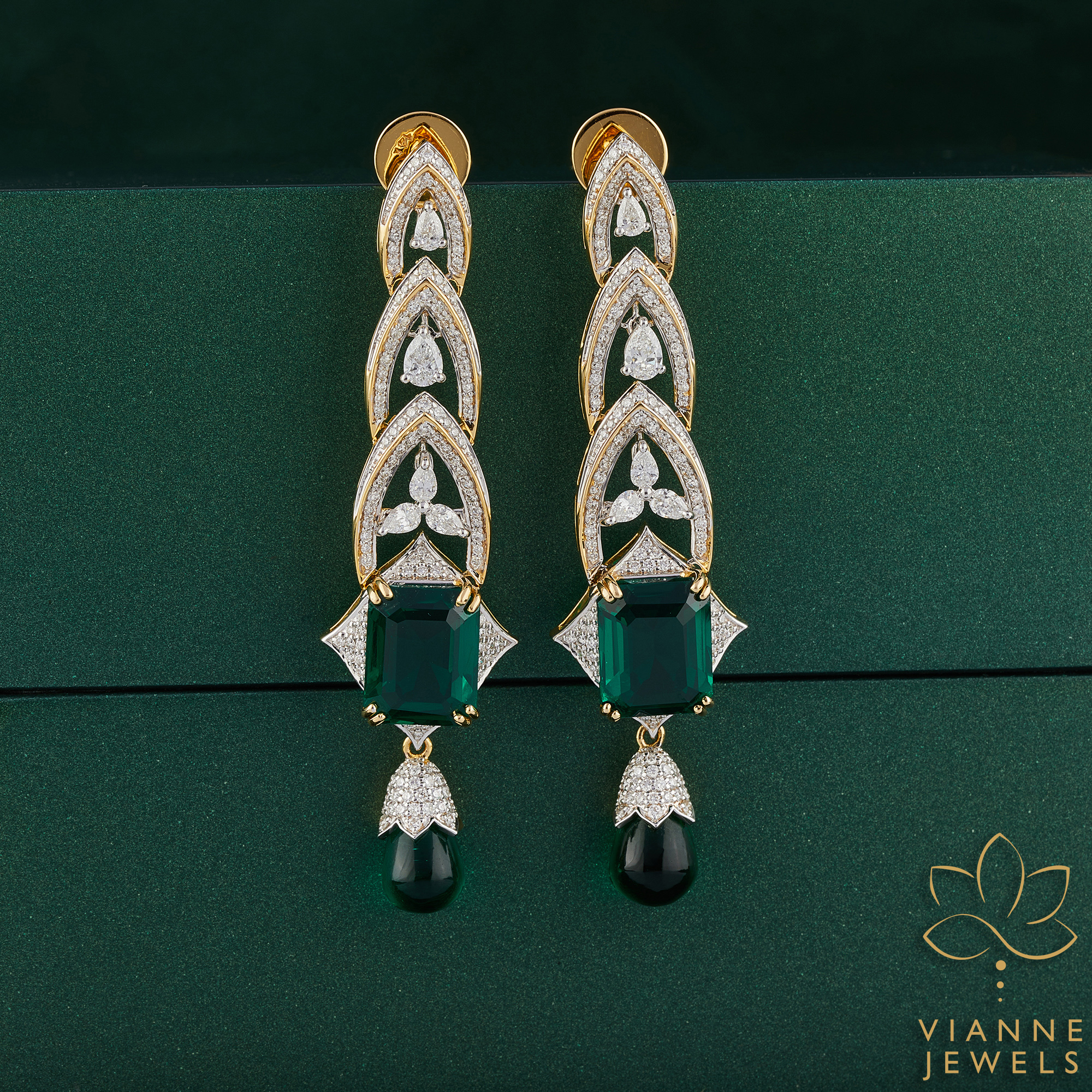 Your purchase includes an elegant box for storage or gifting, ensuring that the Emerald Enchantment Earrings are presented with the same level of luxury with which they were crafted. Let these earrings be a treasure in your collection, a piece that brings a touch of enchantment to every occasion.