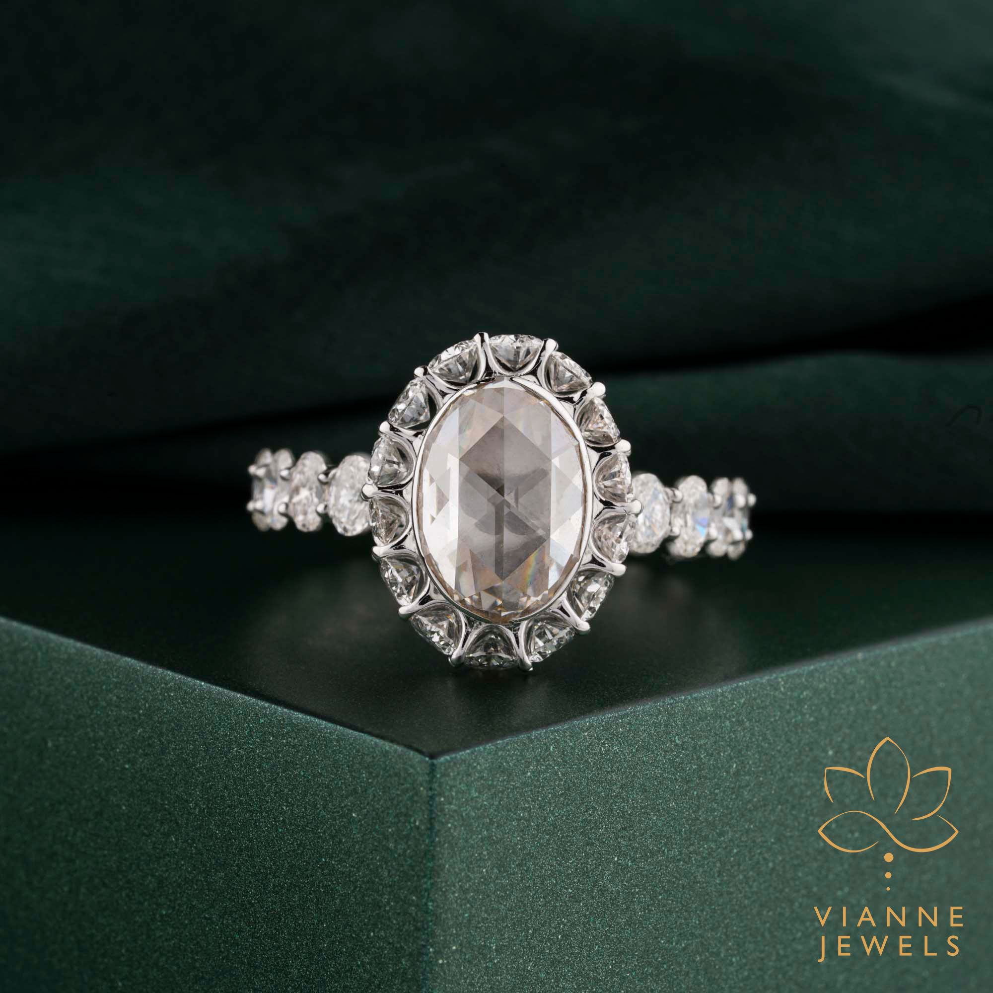 With our Emerald Enchantment Lab-Grown Diamond Halo Ring, you can carry a piece of timeless beauty that aligns with your eco-conscious values. It’s a treasure to be cherished for a lifetime, blending ethical craftsmanship with an enchanting design.”