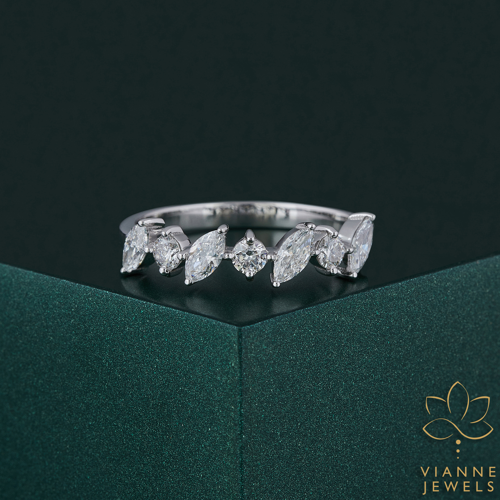 Be the first to review “Enchanted Marquise Wave Band Wedding Ring”