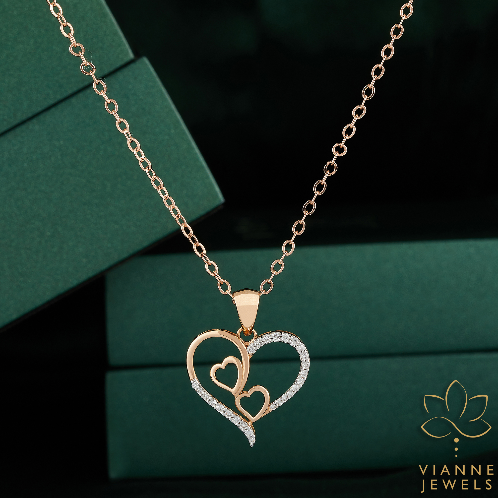 This pendant is not just a piece of jewelry; it’s a narrative of intertwined fates and shared paths. The heart’s graceful curves represent the journey of love, with its ups and downs, and the diamonds illustrate the bright moments that stand out along the way.