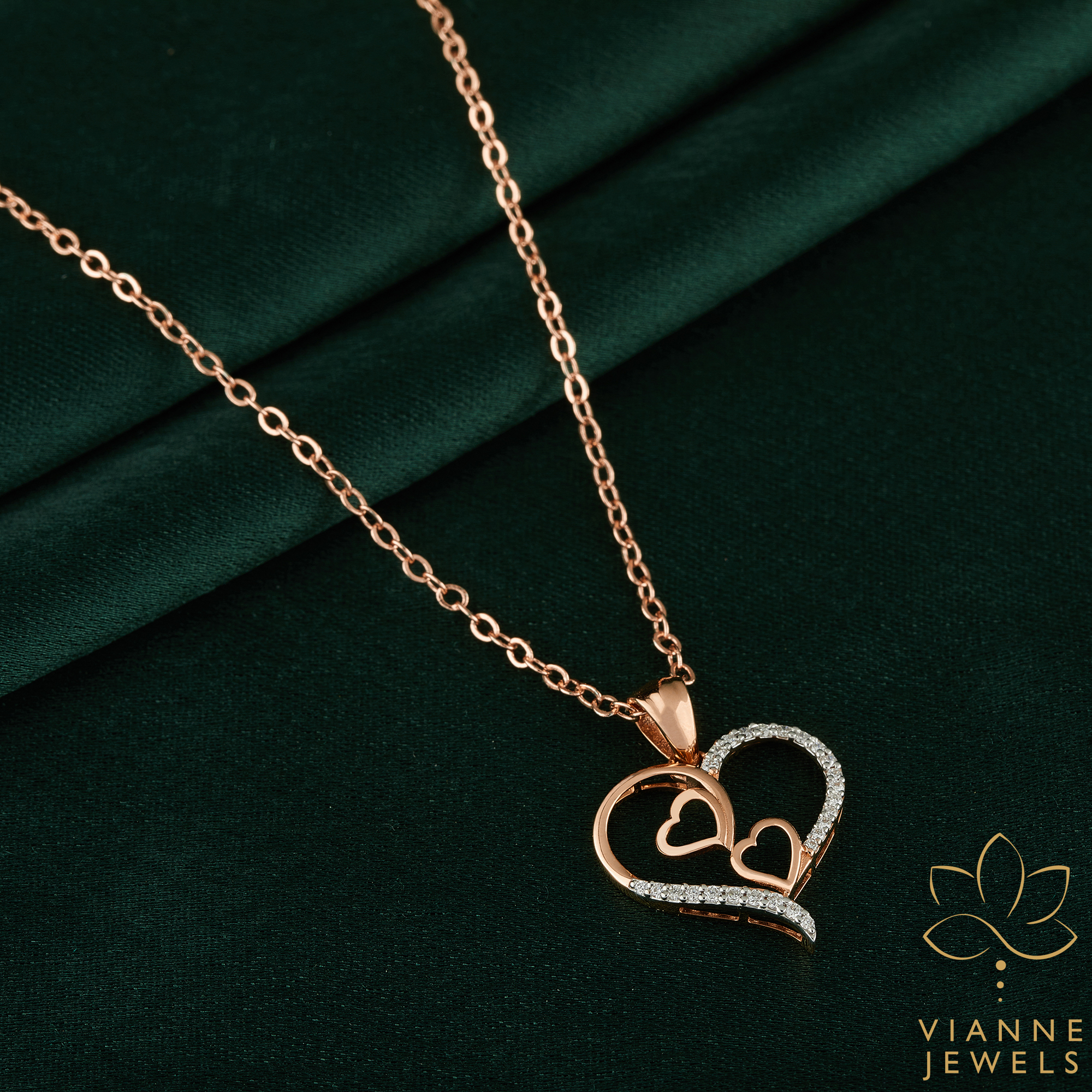 “Introducing the ‘Entwined Elegance’ Pendant, a dainty yet dazzling expression of love’s enduring bond. Crafted with the warmth of rose gold and the sparkle of lab-grown diamonds, this pendant captures the essence of modern romance and responsible luxury.