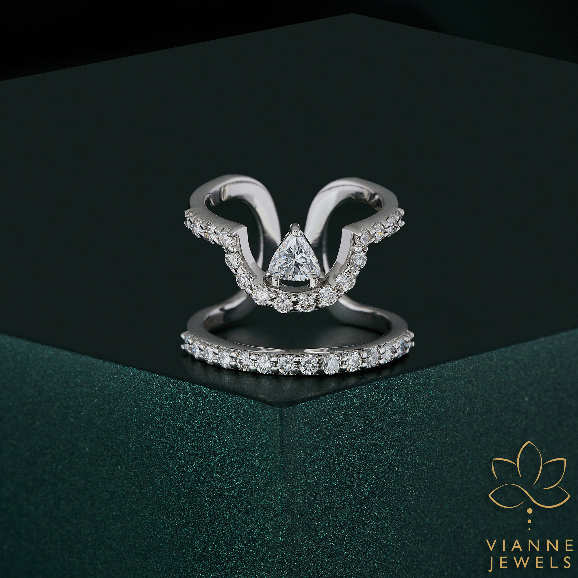 Each diamond is carefully selected for its brilliance and clarity, offering you a glimpse of eternity with every glance. The band, paved with a constellation of delicate diamonds, complements the central design, creating a harmonious balance of light and form.
