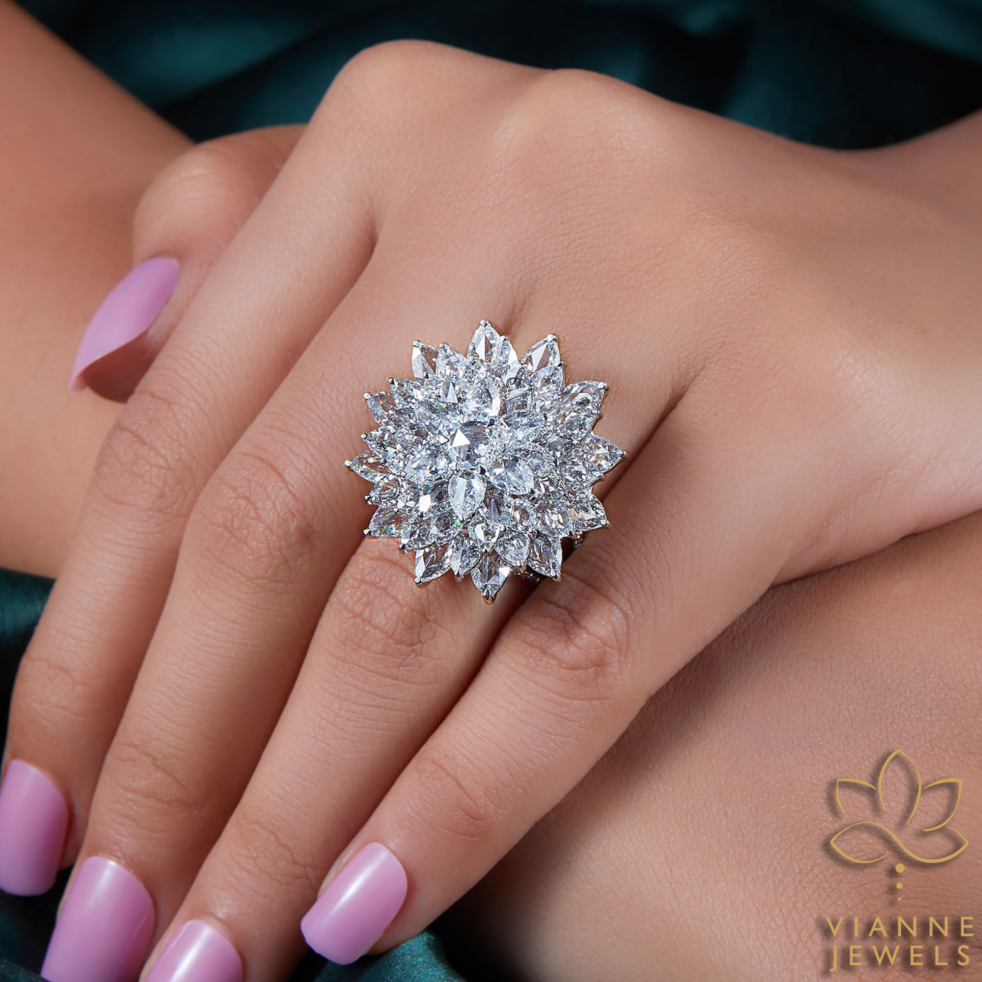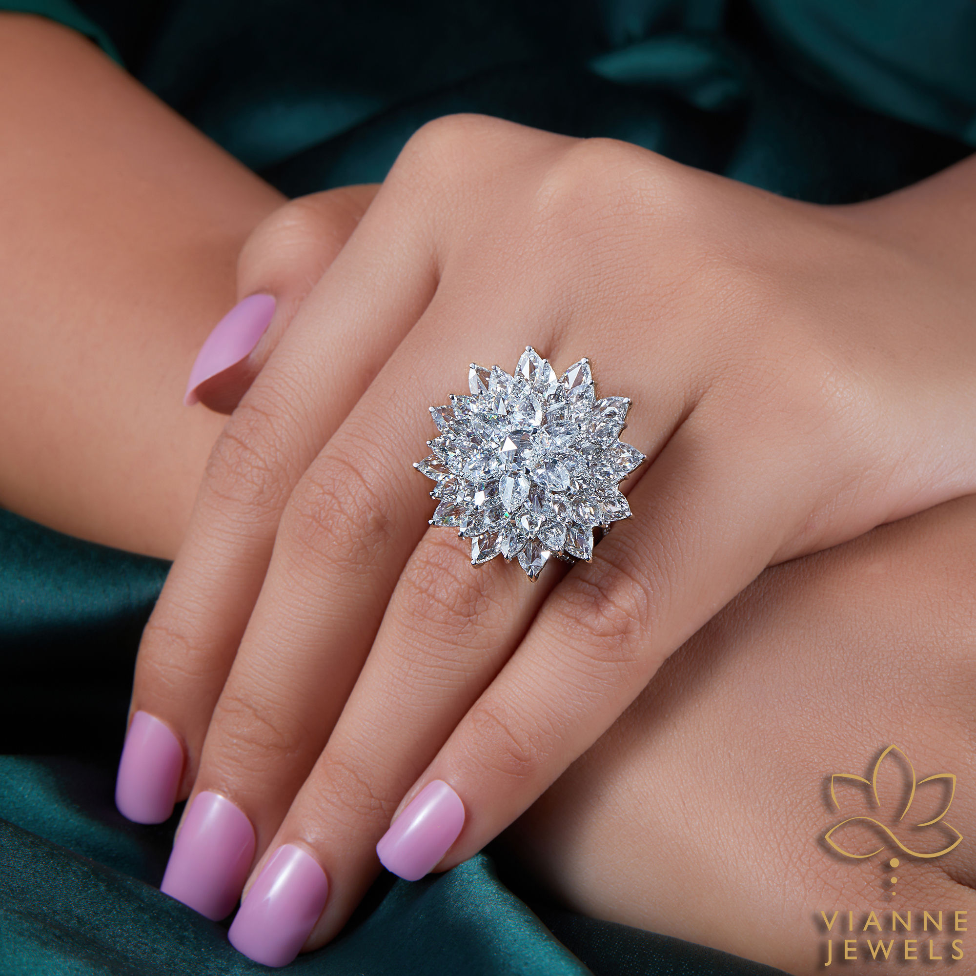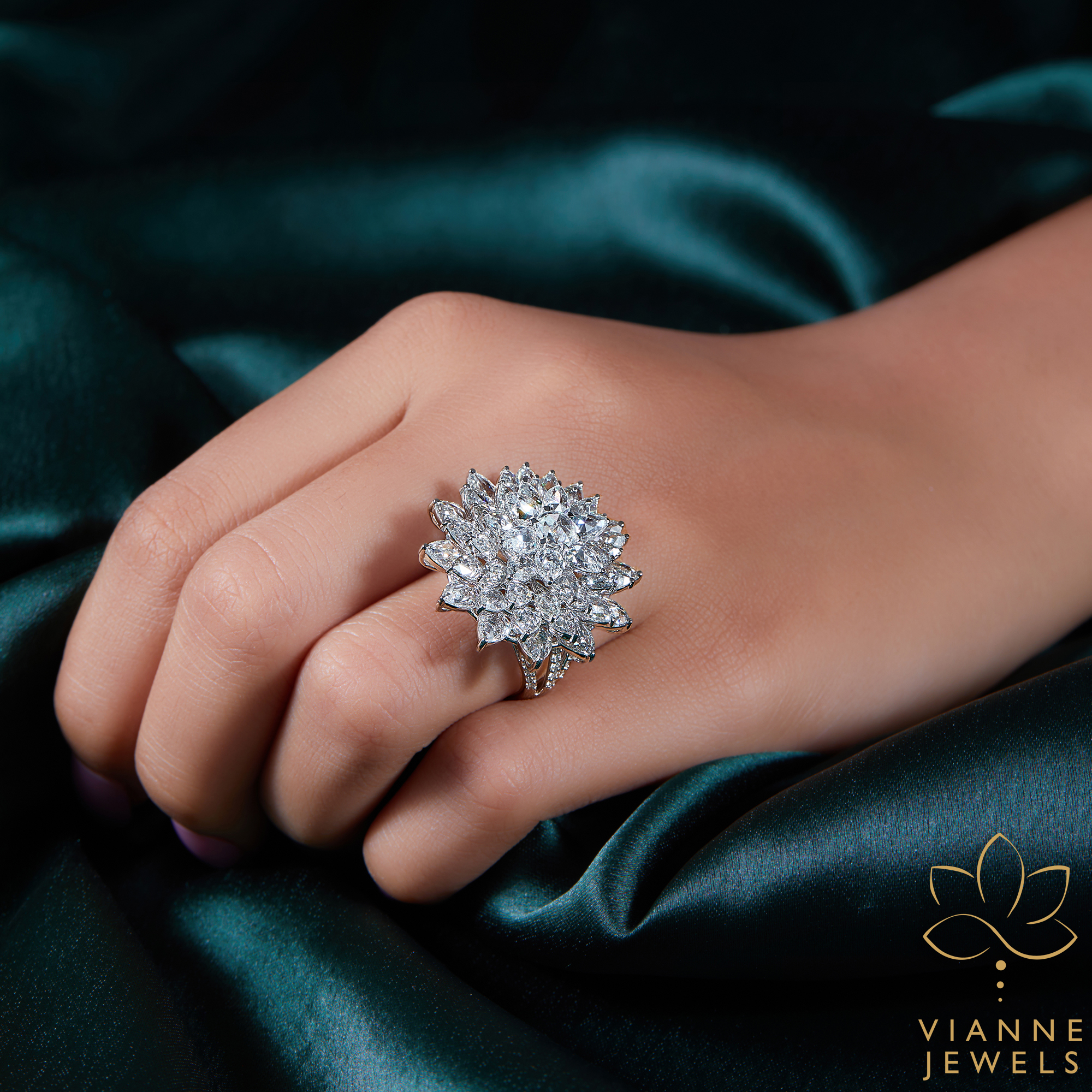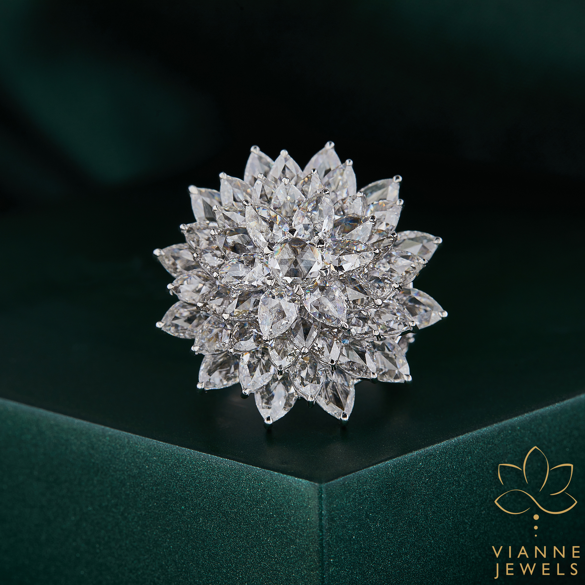 The floral design of this ring is not just visually stunning; it’s also rich with symbolism. Flowers have long been associated with growth, renewal, and the blossoming of new love. This ring captures that essence, making it an ideal gift for engagements, anniversaries, or as a magnificent statement piece.