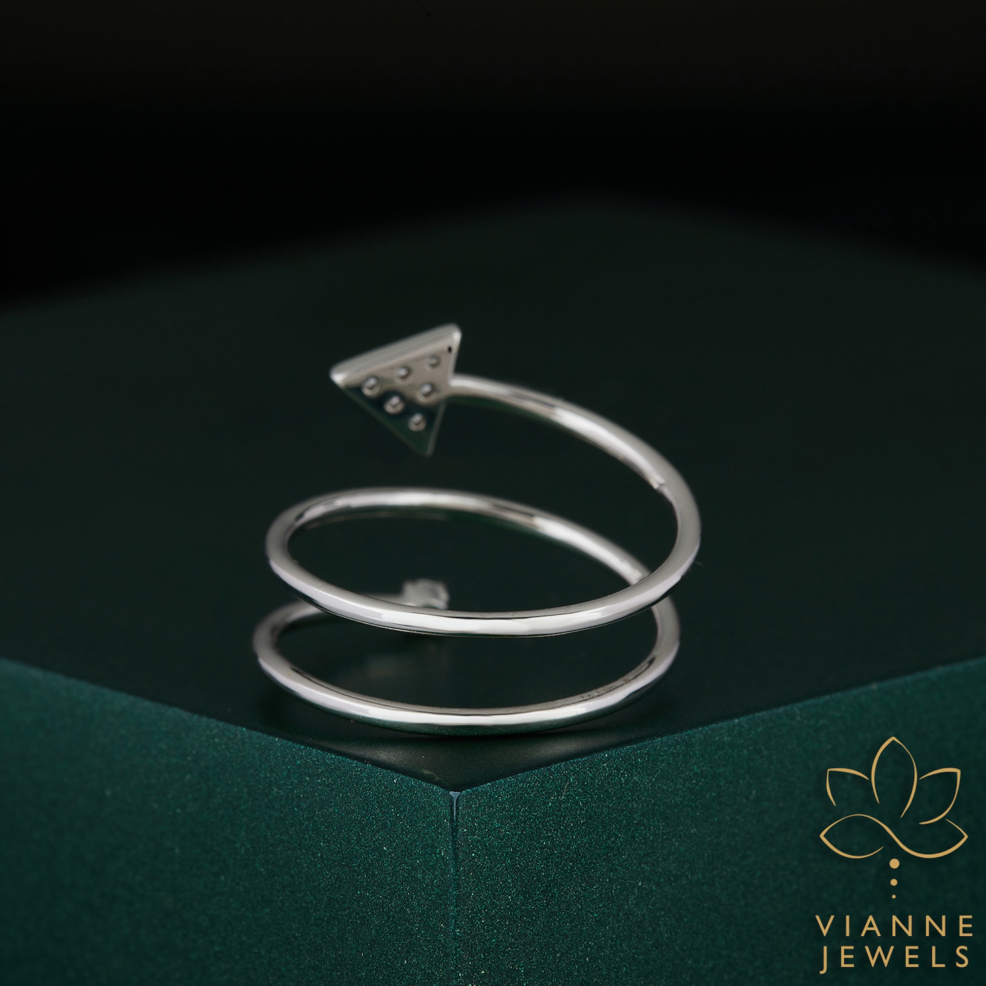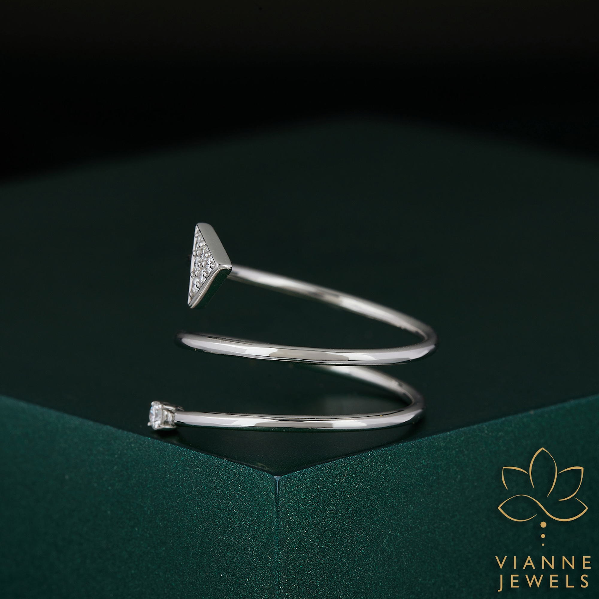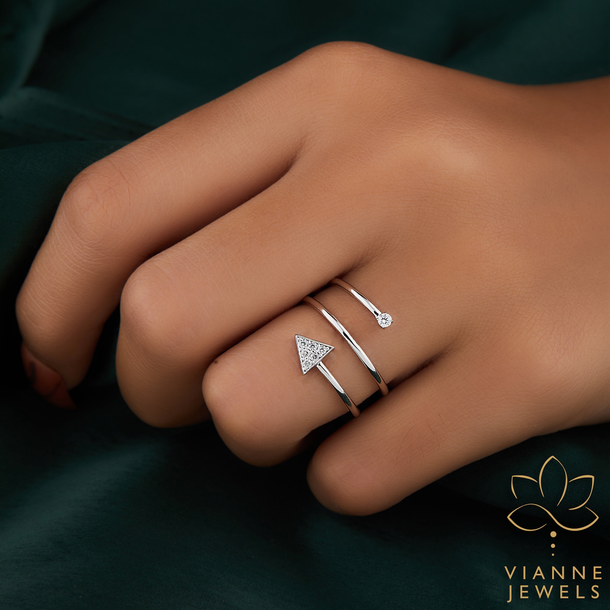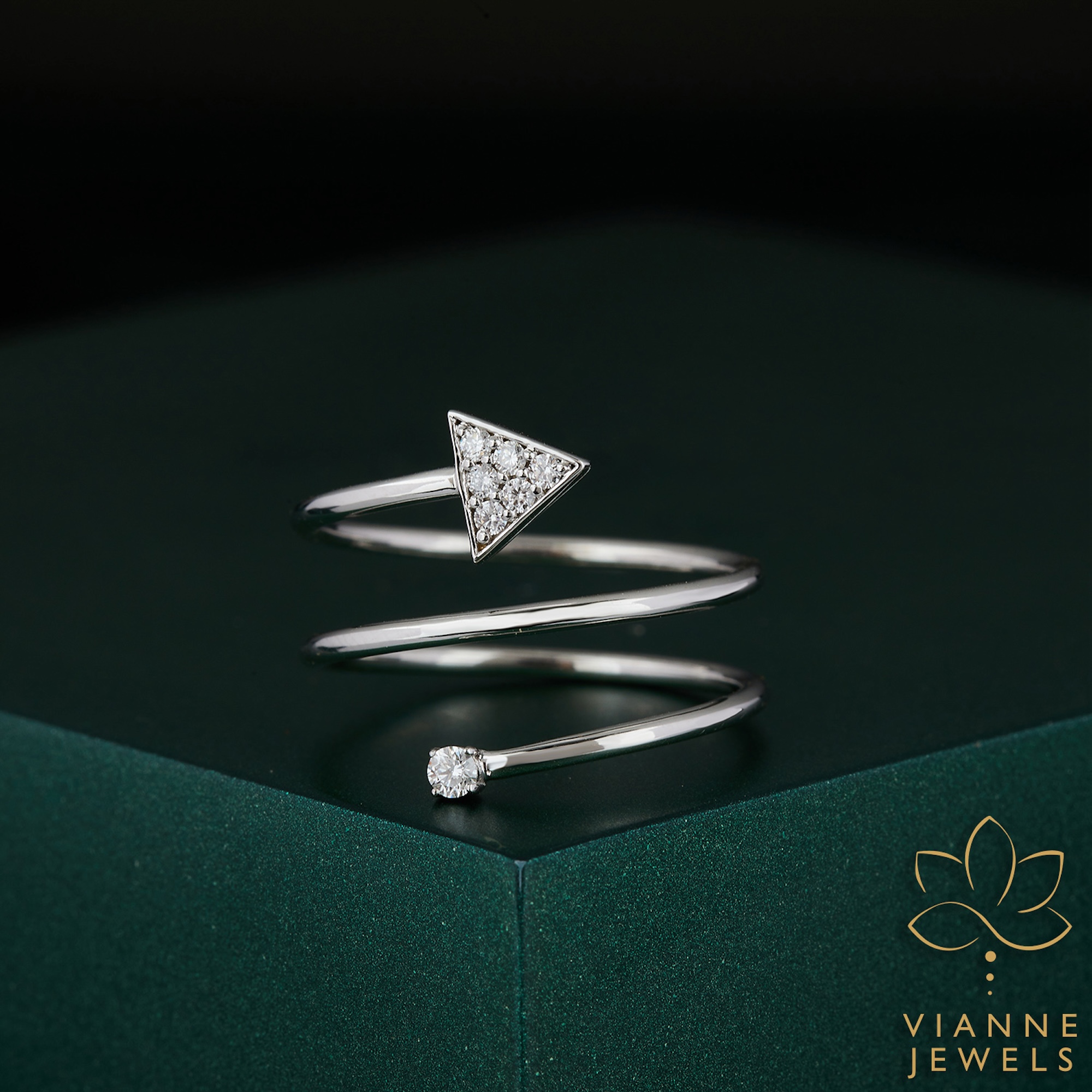 “Embrace the essence of modern chic with our ‘Geometric Elegance’ Open Ring, a bold yet minimalist design that marries contemporary style with the timeless beauty of diamonds. The focal point of this exquisite piece is a triangle pavé set with lab-grown diamonds, creating a mesmerizing effect that is both sharp and sophisticated. The open band design in white gold adds an avant-garde twist to this geometric treasure.