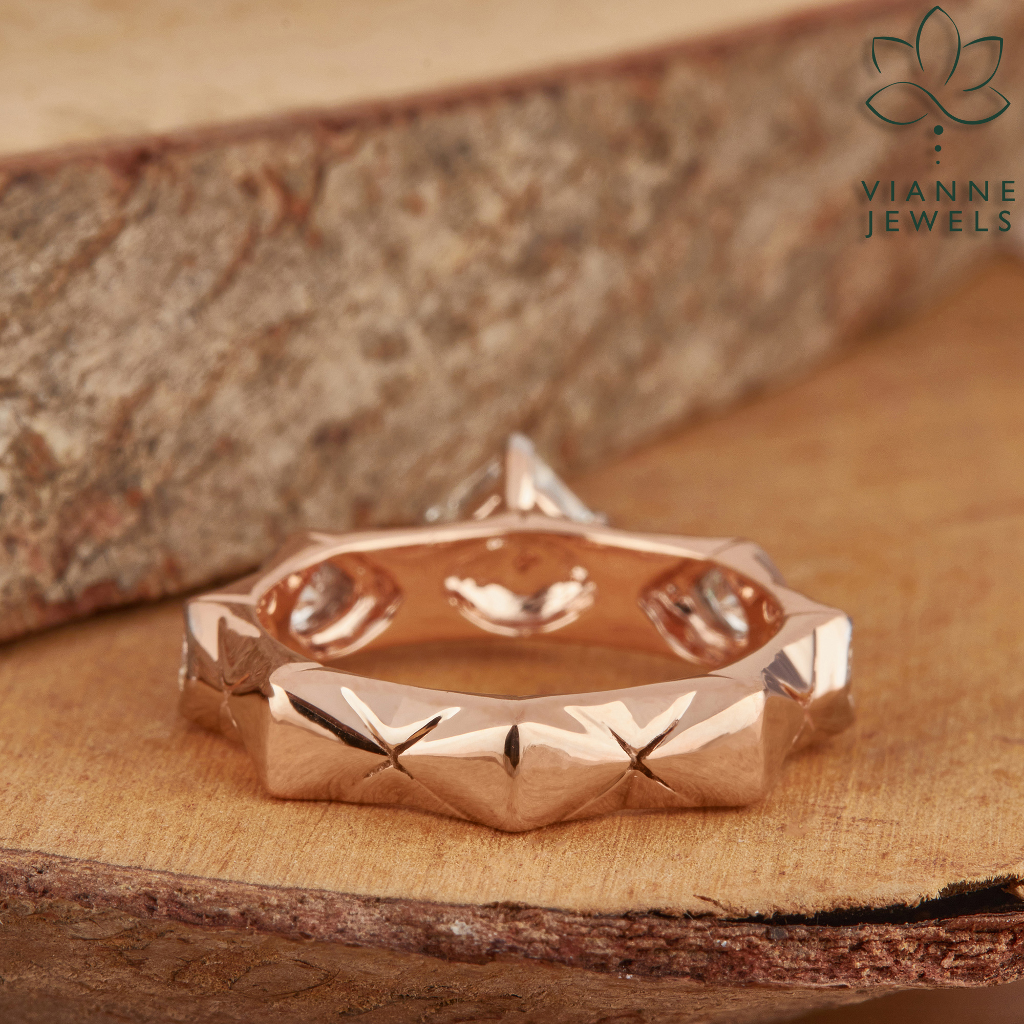 Whether it’s a special occasion, an engagement, or a self-love treat, this ring is a statement piece that will stand out in any collection. It’s not just jewelry; it’s a conversation starter, a symbol of love, and a pledge to a brighter, greener future. With this ‘Geometric Glamour’ ring, you’re not just wearing a piece of art—you’re also wearing a piece of the future.”
