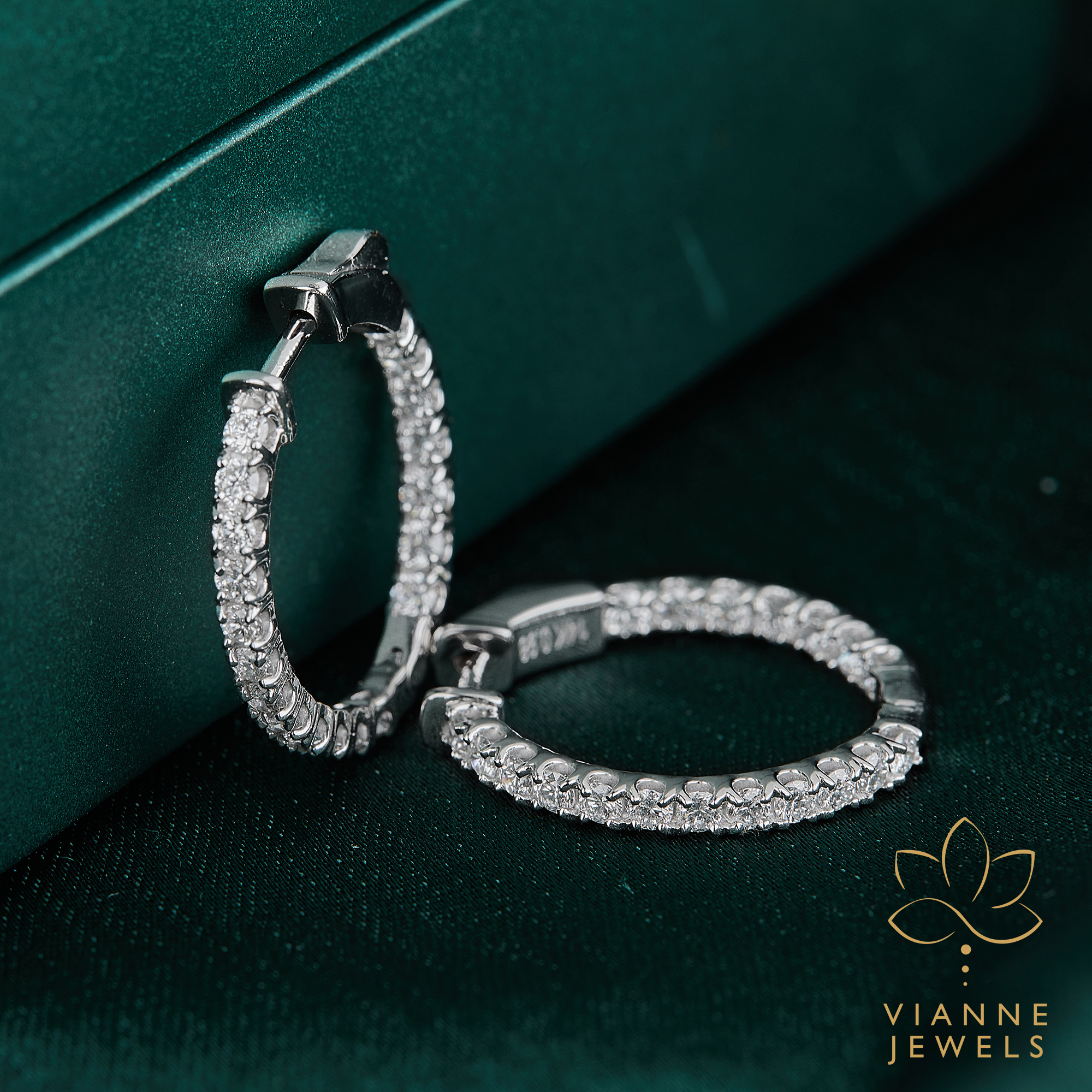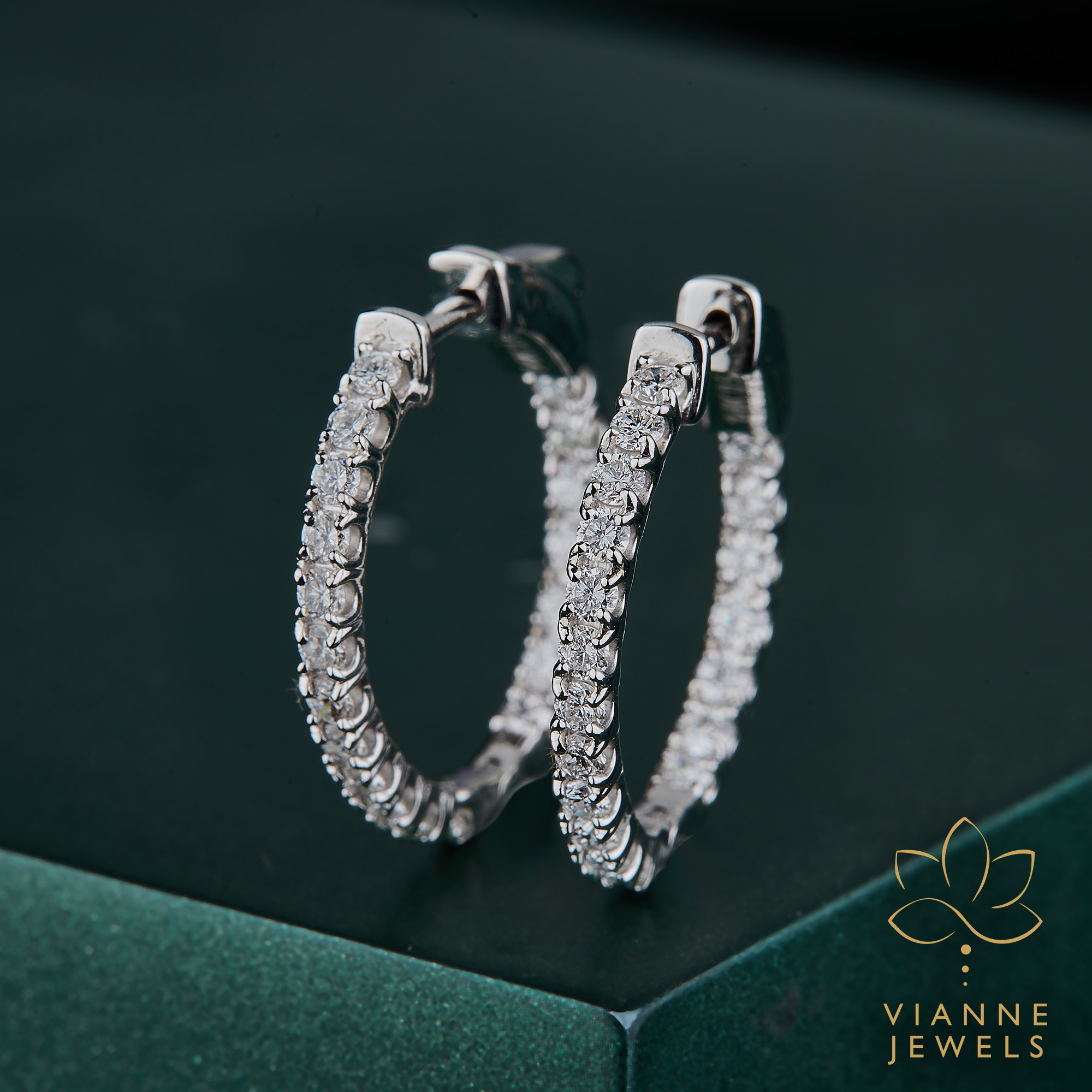 These petite hoops are crafted from fine white gold, polished to a mirror finish that enhances the sparkle of the inset diamonds. The secure back ensures they stay in place, whether you’re at the office or dancing the night away.