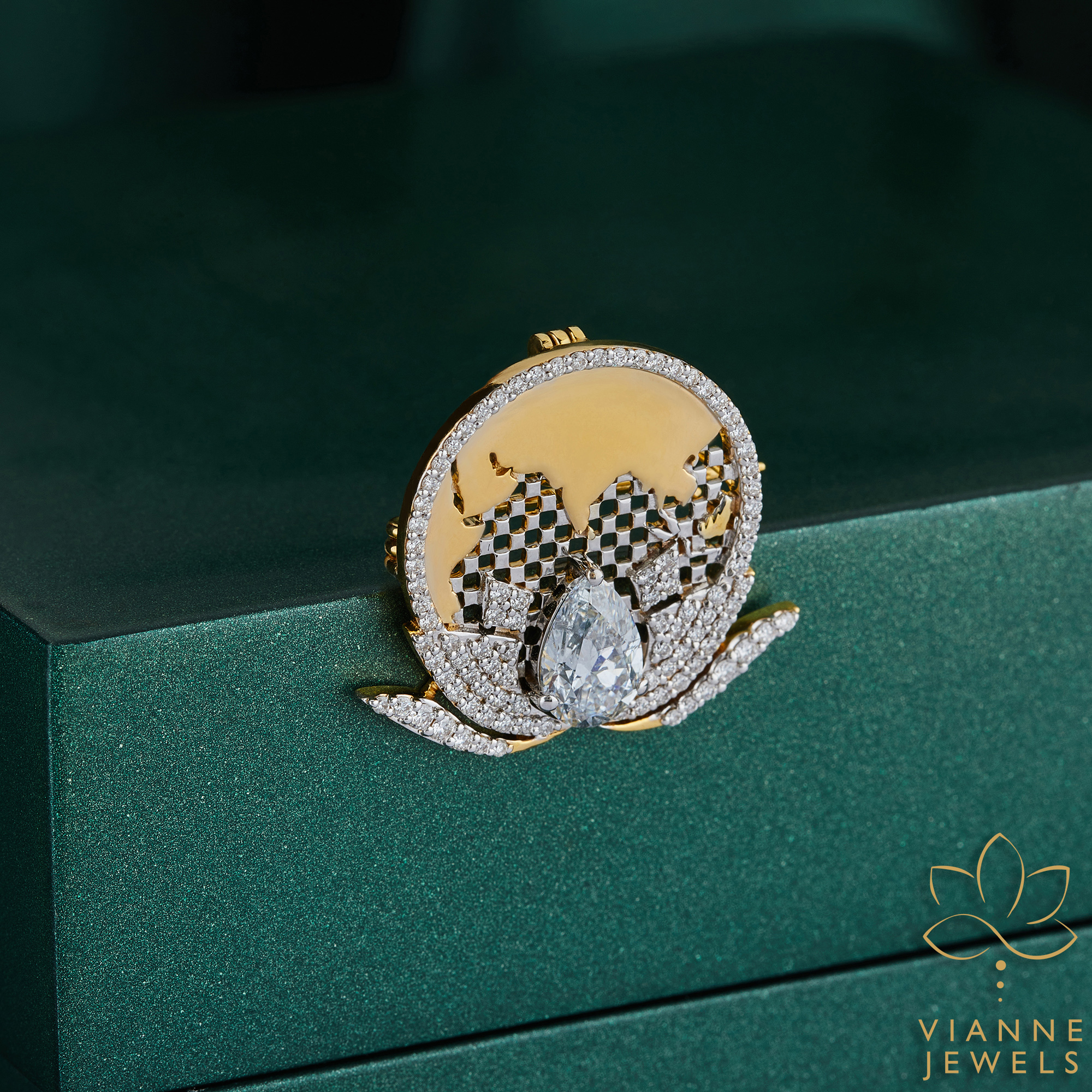 Chart a course for unparalleled style with the Global Elegance Marquise Diamond Brooch. Meticulously designed to represent a traveler’s spirit and the beauty of our planet, this brooch is a statement piece that speaks volumes about the wearer’s taste for luxury and a love for the Earth.