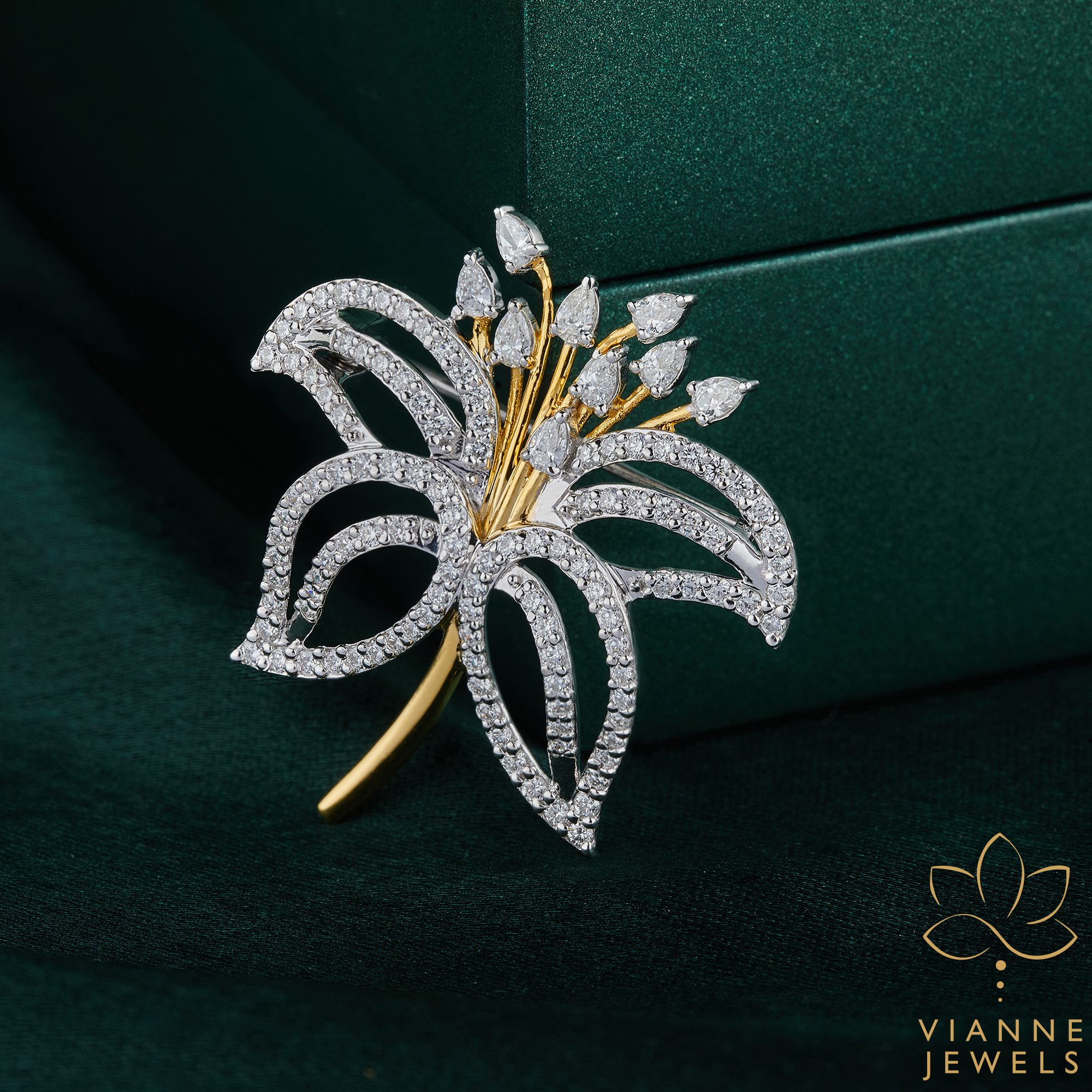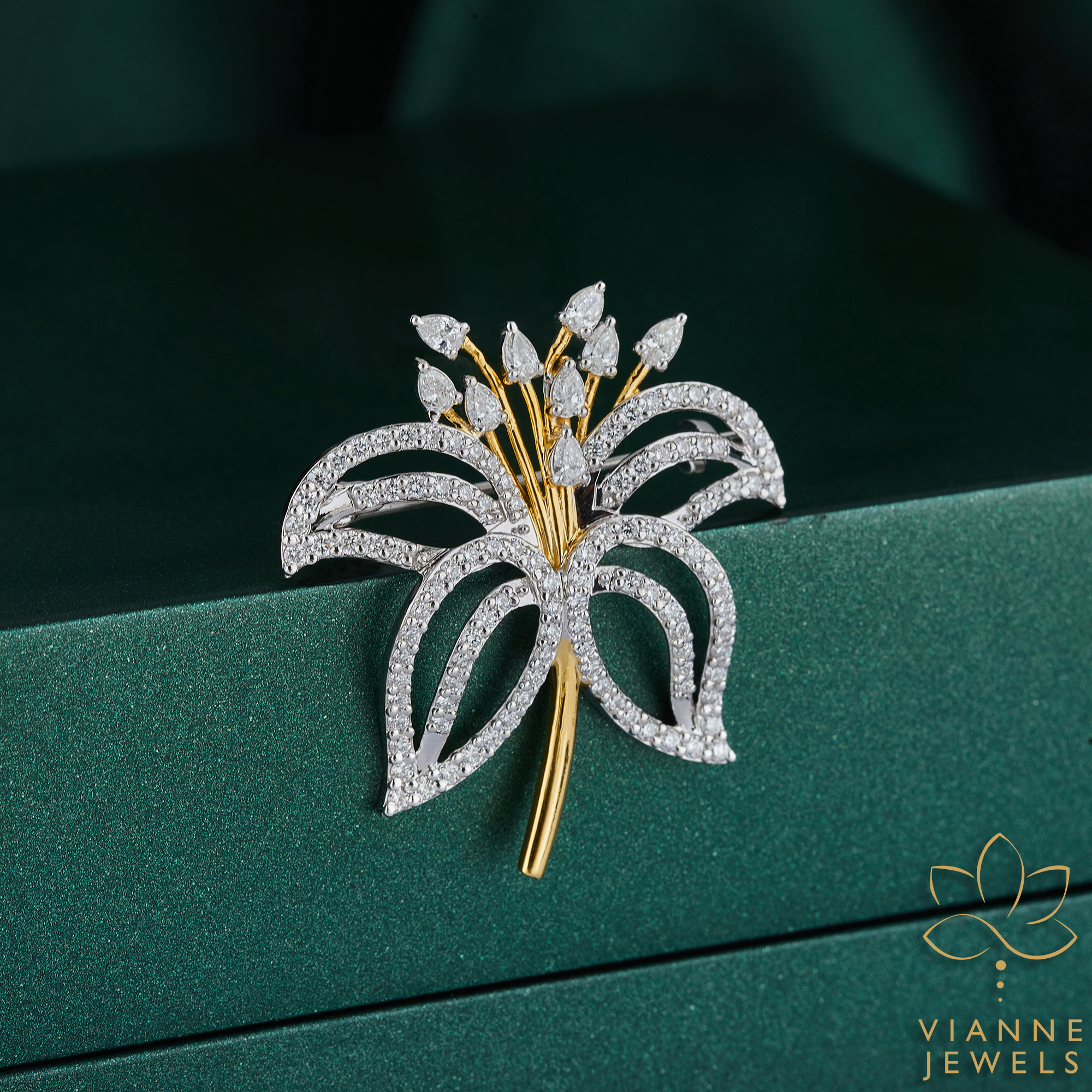 The Golden Bloom Diamond Brooch is a symphony of nature’s grace and human ingenuity, a floral-inspired piece that marries the luster of lab-grown diamonds with the timeless beauty of gold.