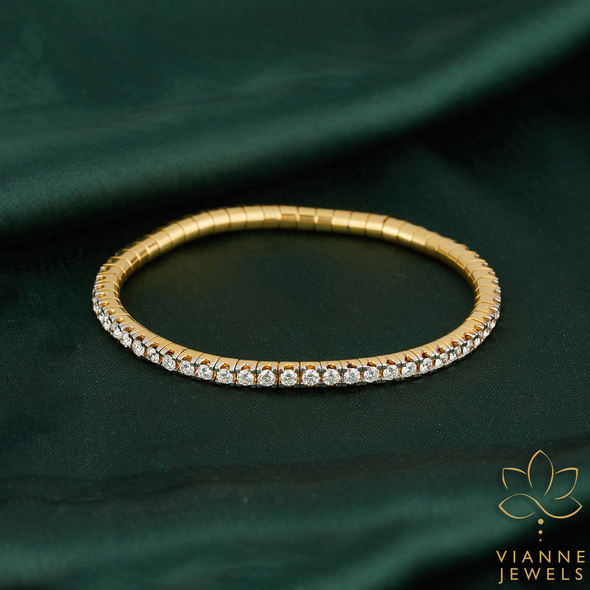 Crafted with precision, these lab-grown diamonds shine with the same fiery brilliance as mined diamonds, offering a guilt-free indulgence for the eco-conscious jewelry lover. The choice of 18K yellow gold provides a rich, luxurious backdrop that amplifies the diamonds’ sparkle, ensuring this bracelet stands out as a statement of refined taste.