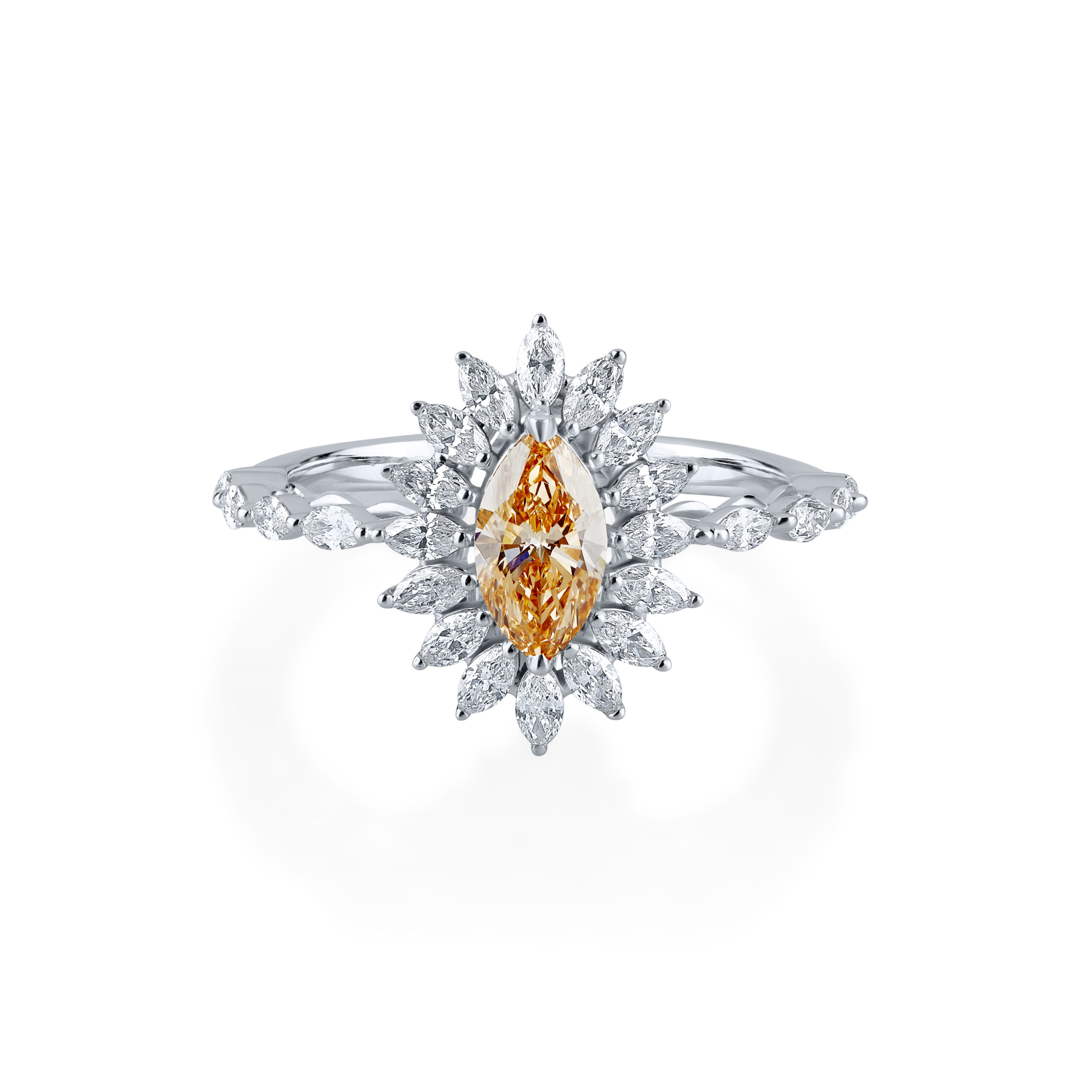 - Center Stone: Fancy Yellow Marquise Diamond