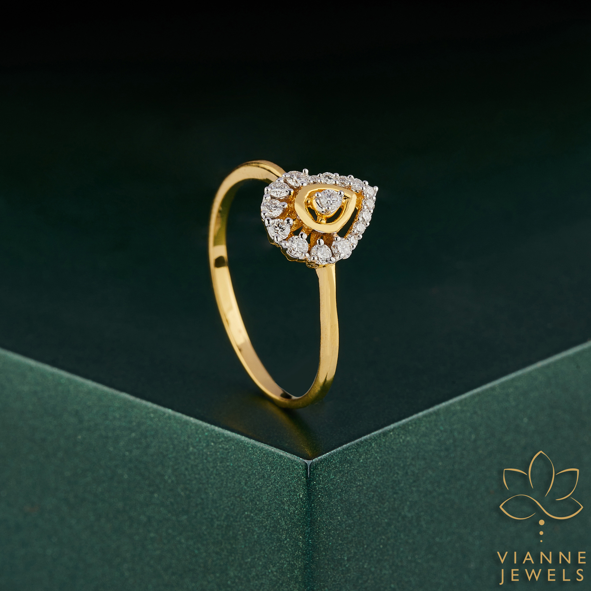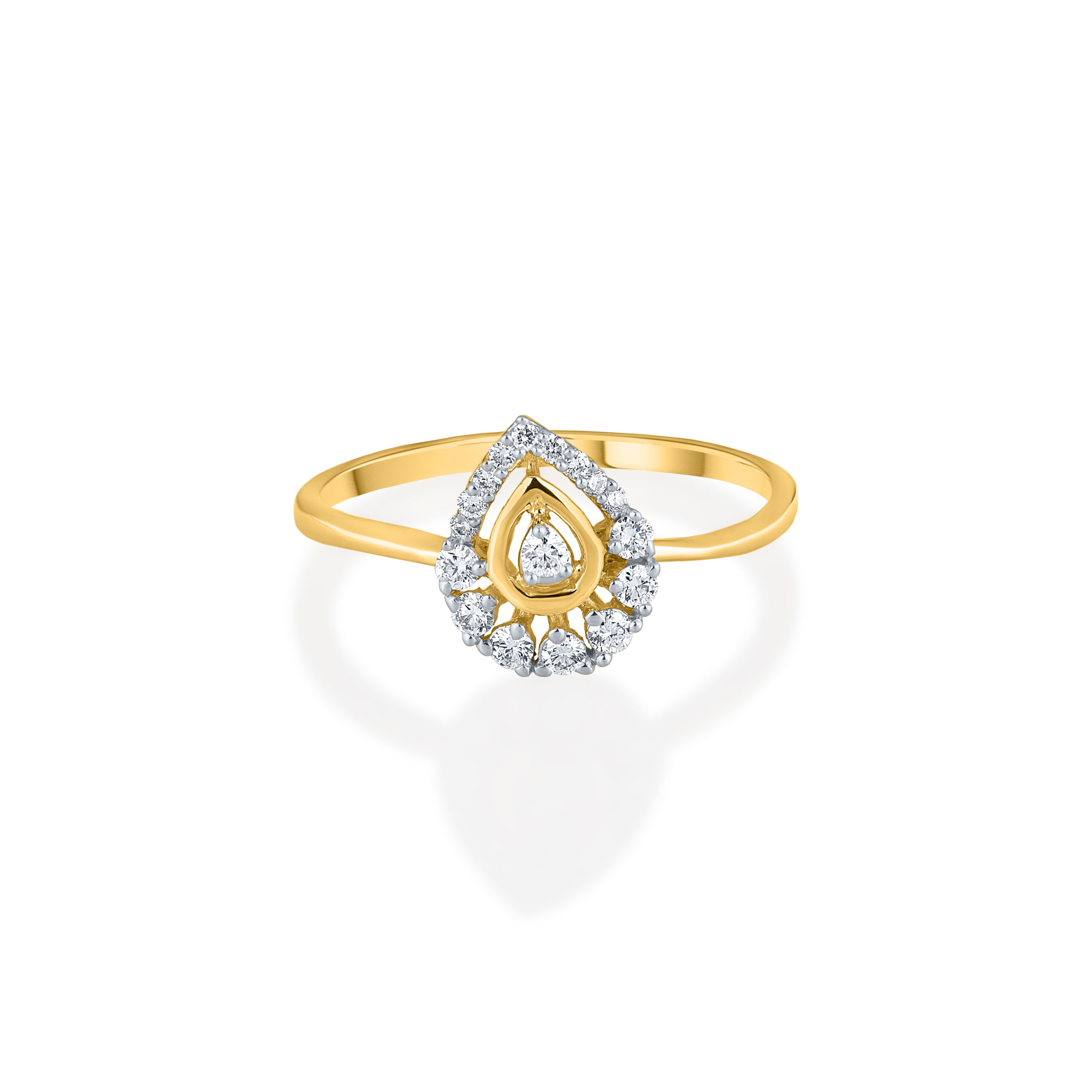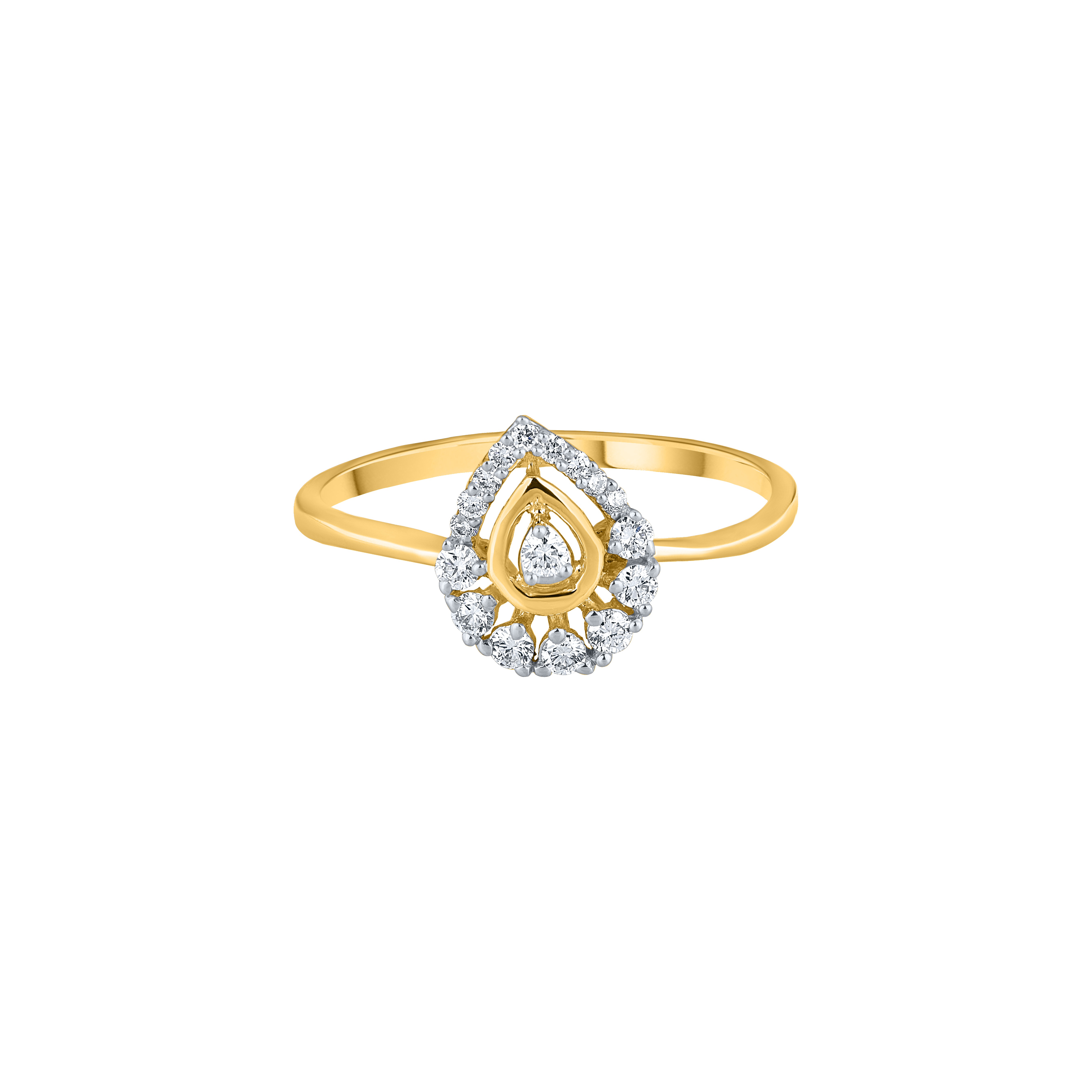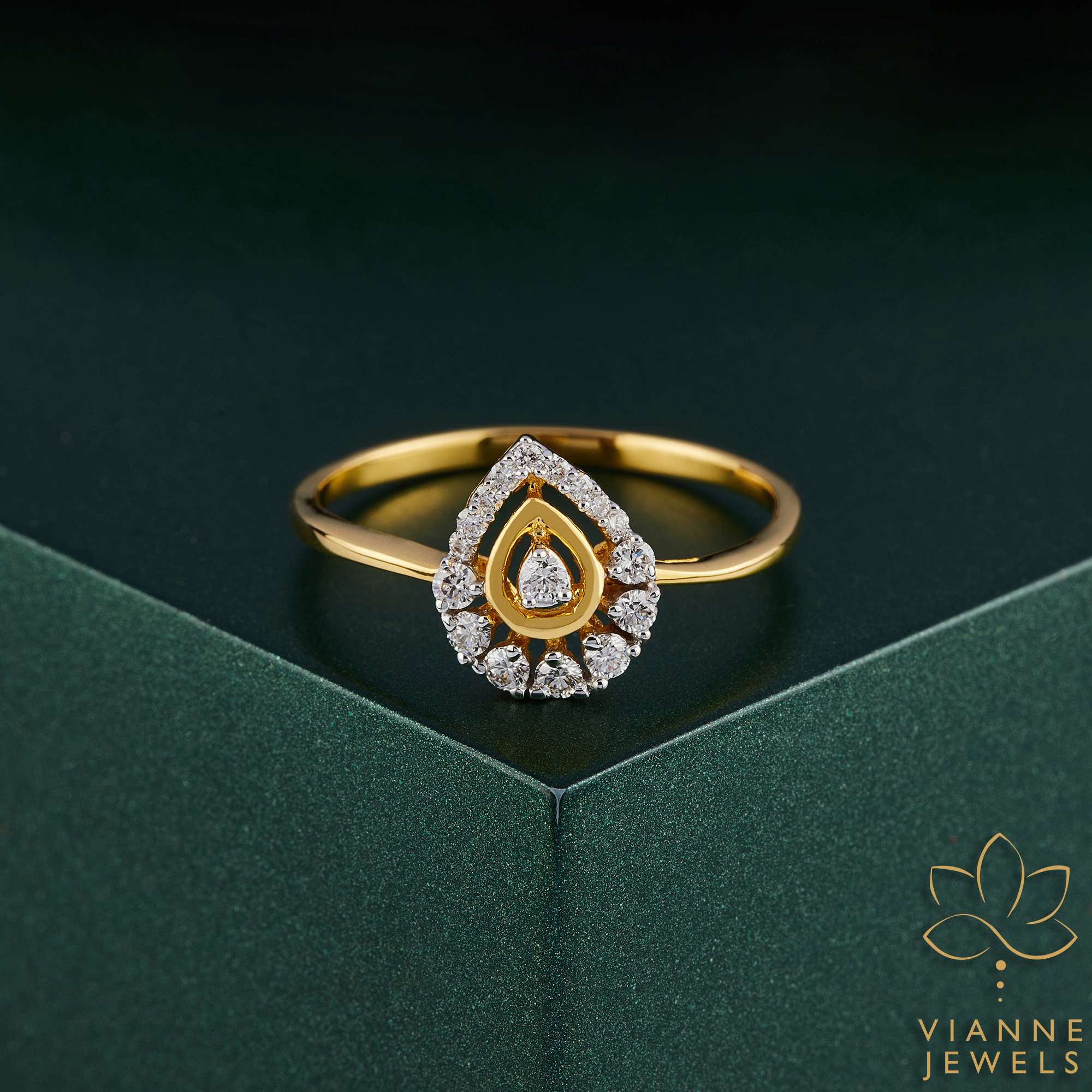 The allure of this piece lies in its dual tones; the warmth of the gold band contrasts beautifully with the cool shimmer of the diamonds, creating a stunning visual symphony. The central teardrop motif is a timeless symbol of emotion and elegance, making this ring a perfect gift for life’s most precious moments.