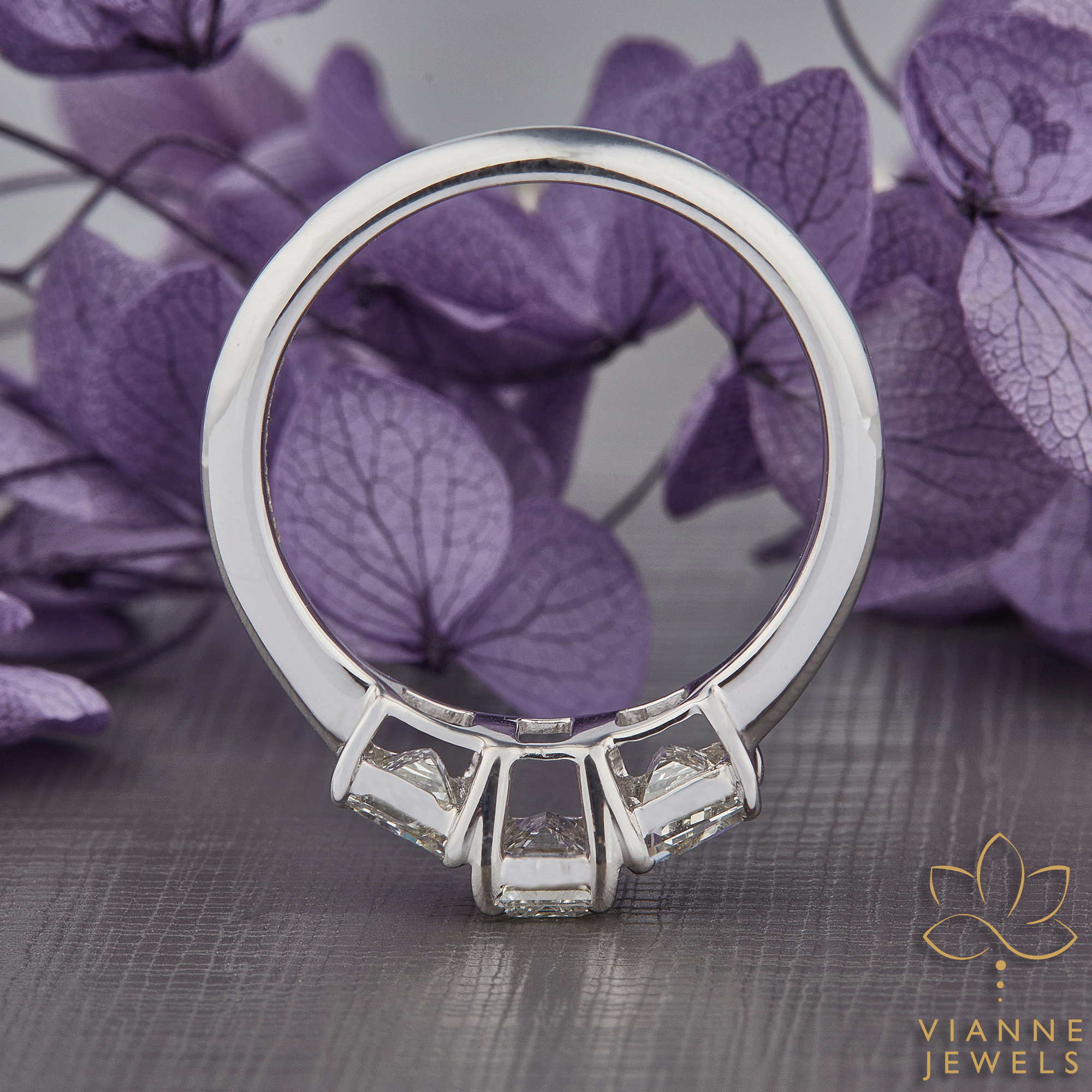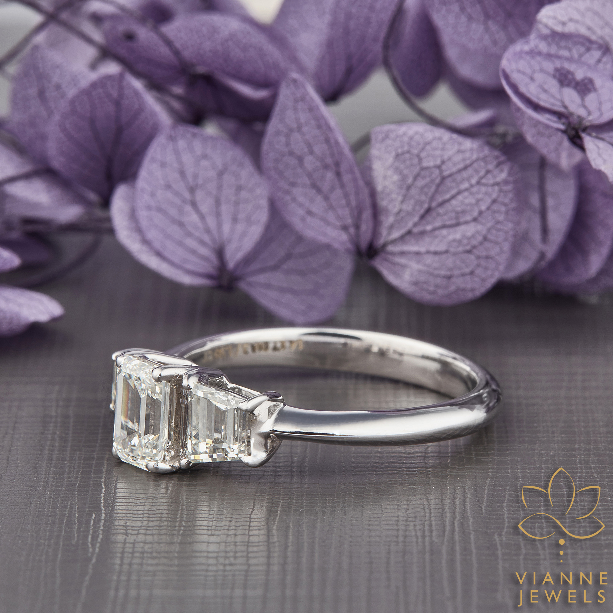 Embrace the radiance of love with the Lavish Lustre Engagement Ring, where classic elegance meets modern sustainability. The ring features a magnificent centre piece – a large emerald-cut lab-grown diamond, flanked by two equally lustrous side stones, all harmoniously set in a sleek 14K white gold band.