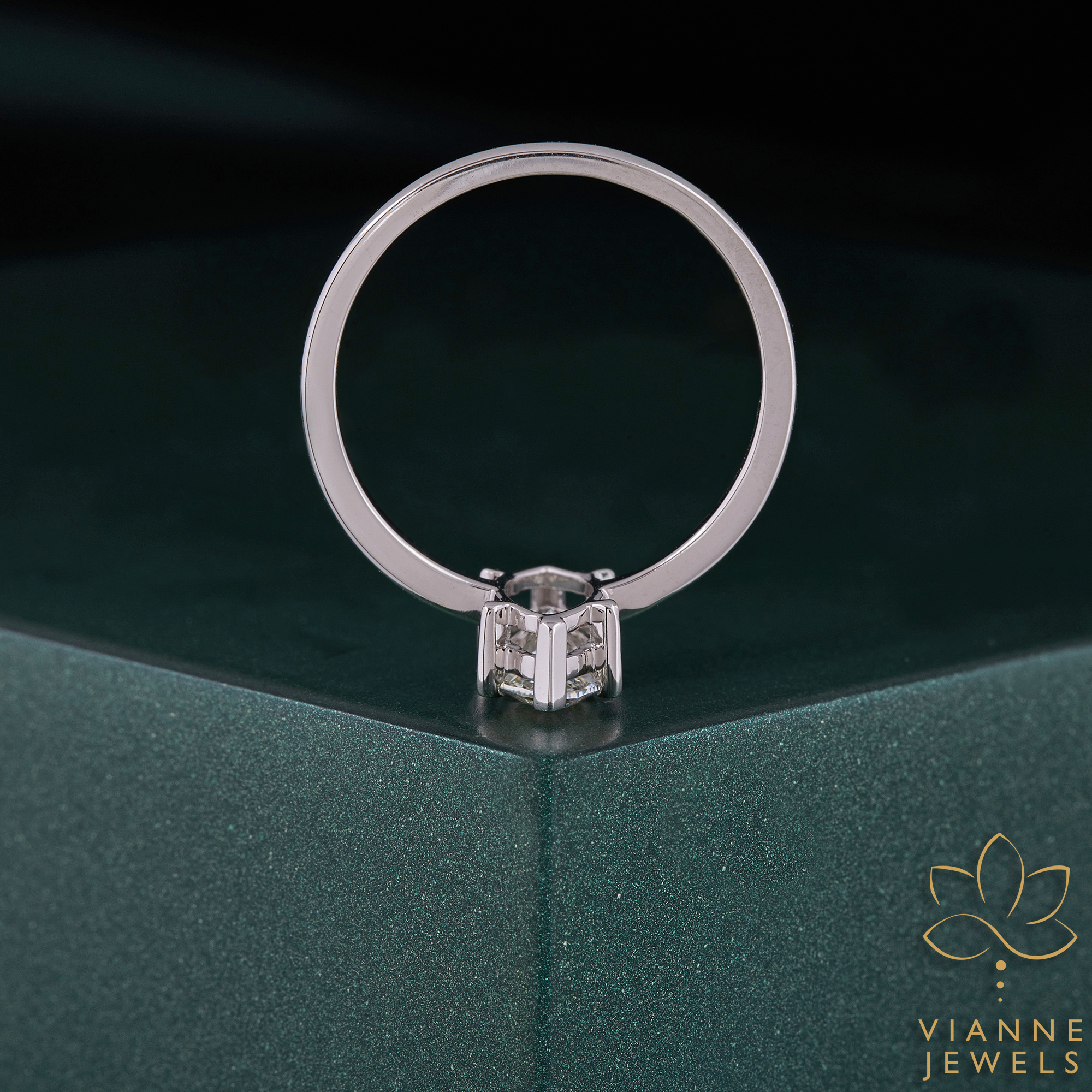 Ideal for those who seek a blend of contemporary design and timeless beauty, the “Lustrous Apex” ring makes a bold statement of love and commitment. Whether as an engagement ring, a special gift, or a personal treasure, it stands as a symbol of purity and innovation in the realm of fine jewelry. This ring is not just a piece of adornment but a celebration of sustainable luxury and understated glamour.