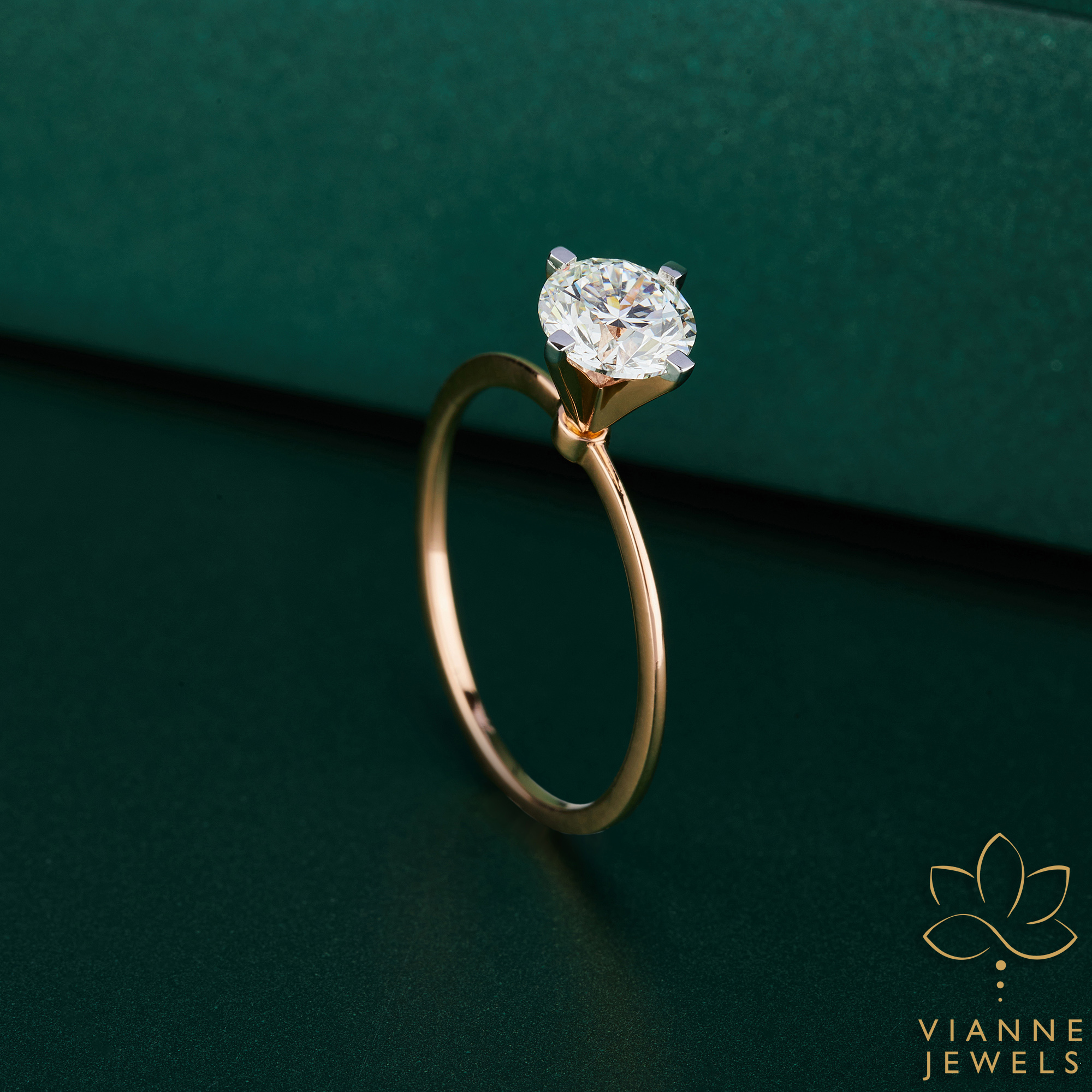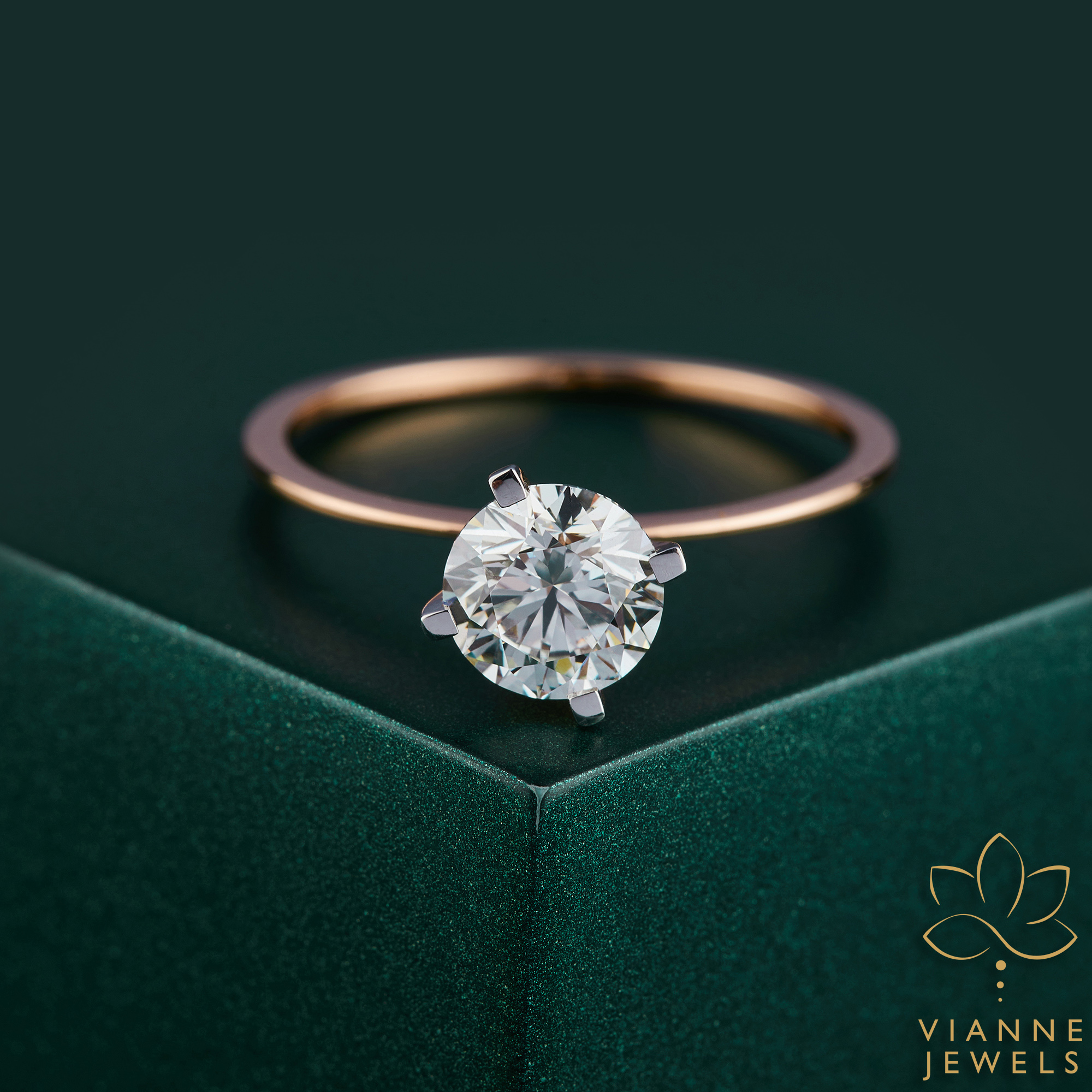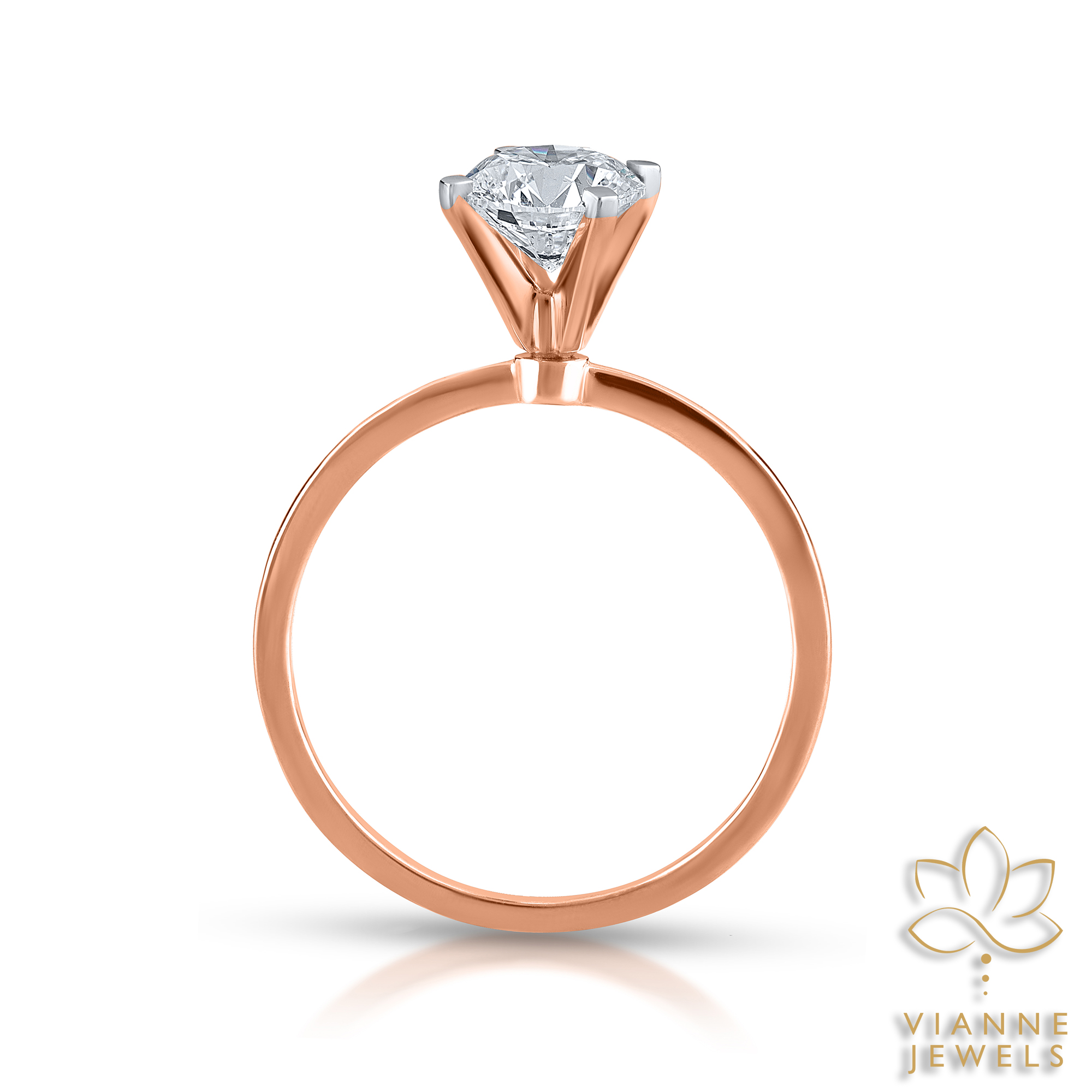 Set in a band of lustrous 14K rose gold, the diamond radiates with a fire and scintillation that catches the eye and captivates the soul. Each angle reflects the light in a dance of sparkle and sophistication, making it an ideal choice for those who appreciate the subtle allure of understated luxury.