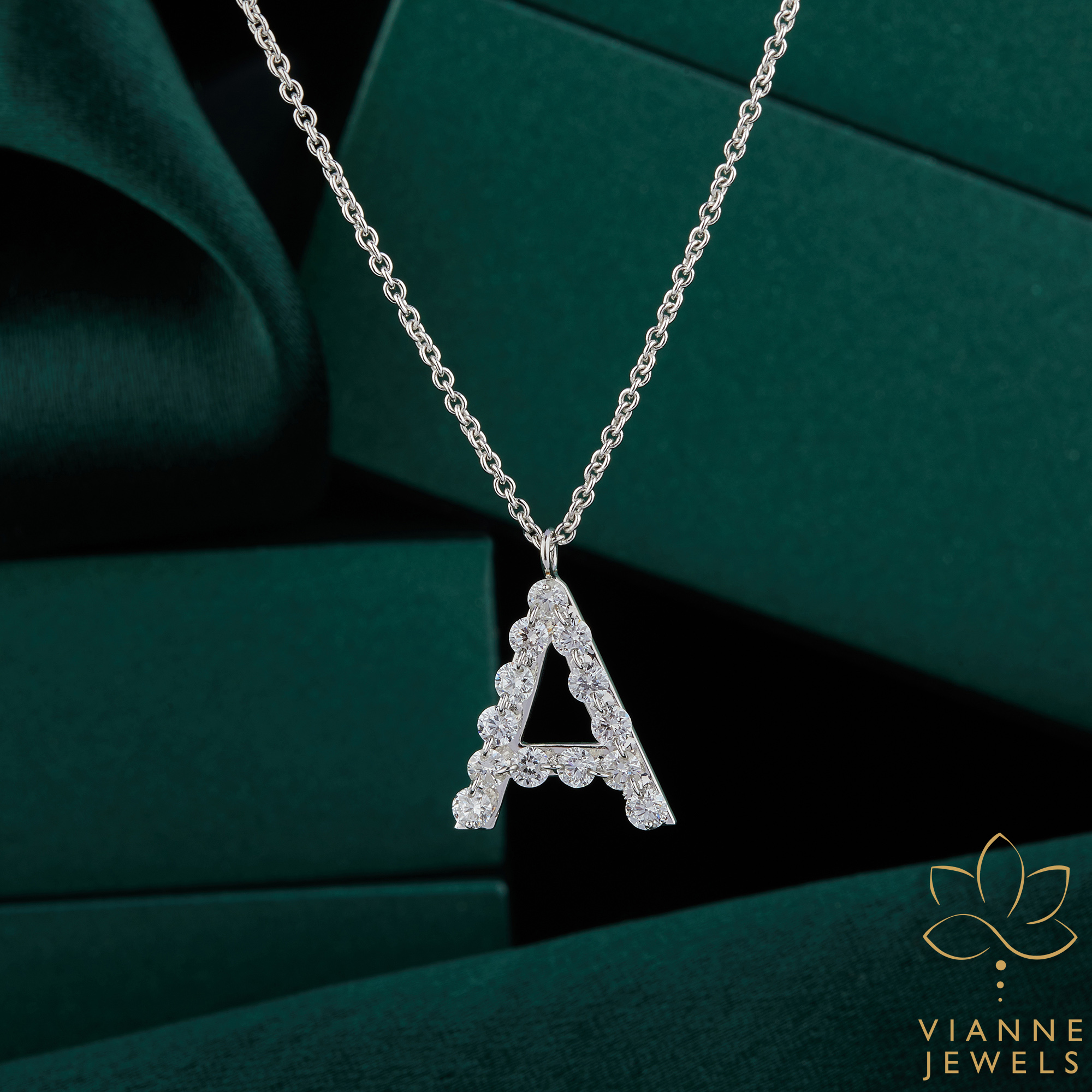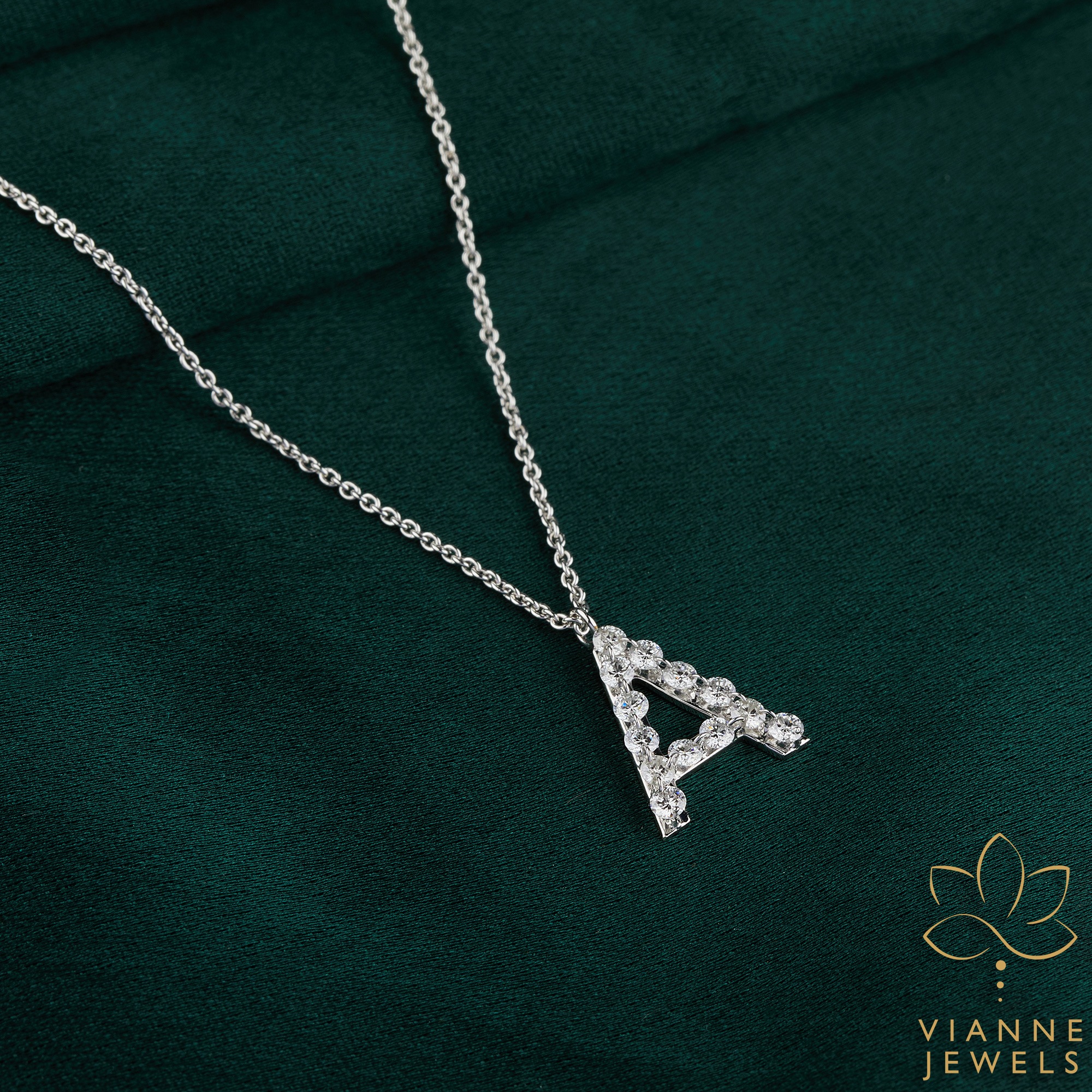“Craft a signature look with this sparkling Lab-Grown Diamond Initial ‘A’ Pendant, merging personal charm with eco-conscious elegance.”