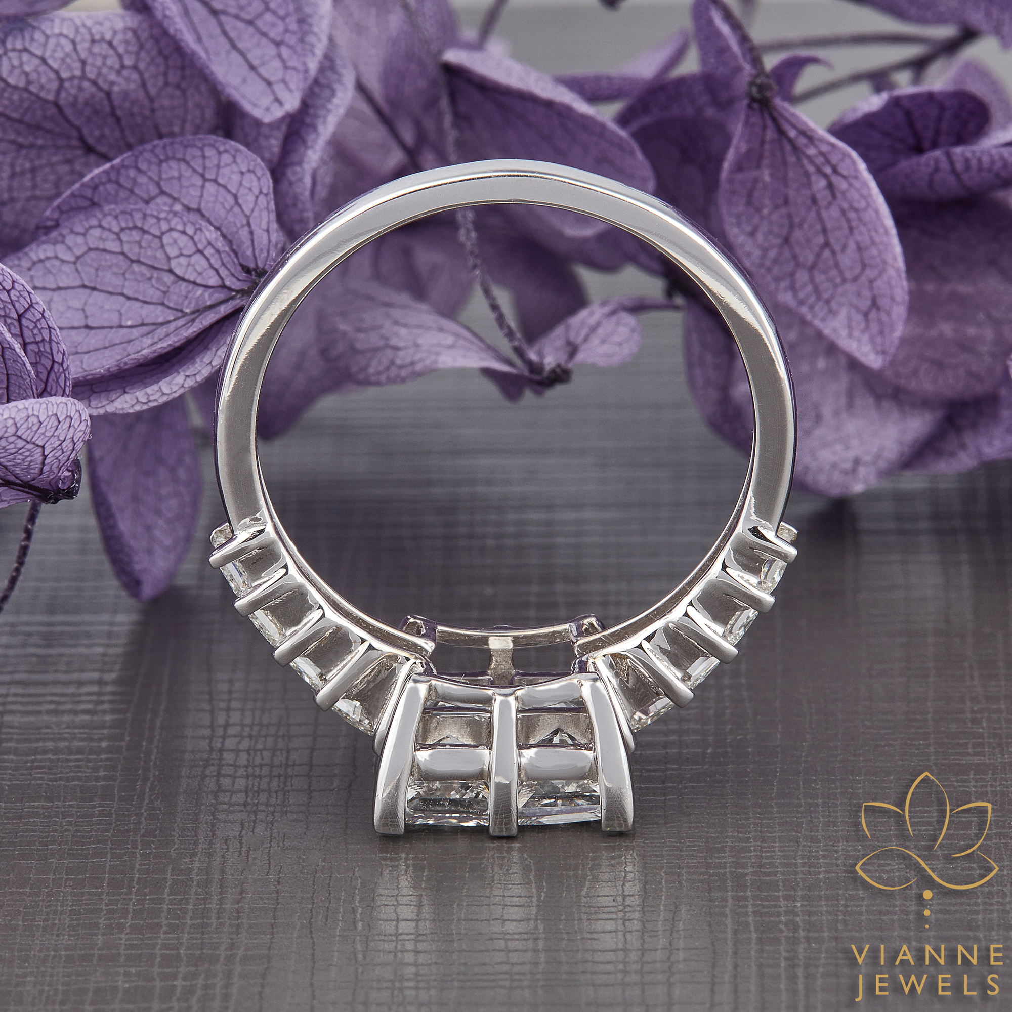 • Center Stone: Princess Cut Diamond