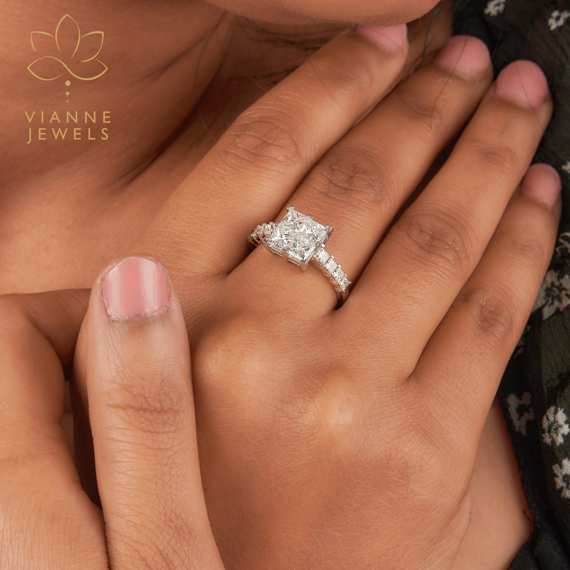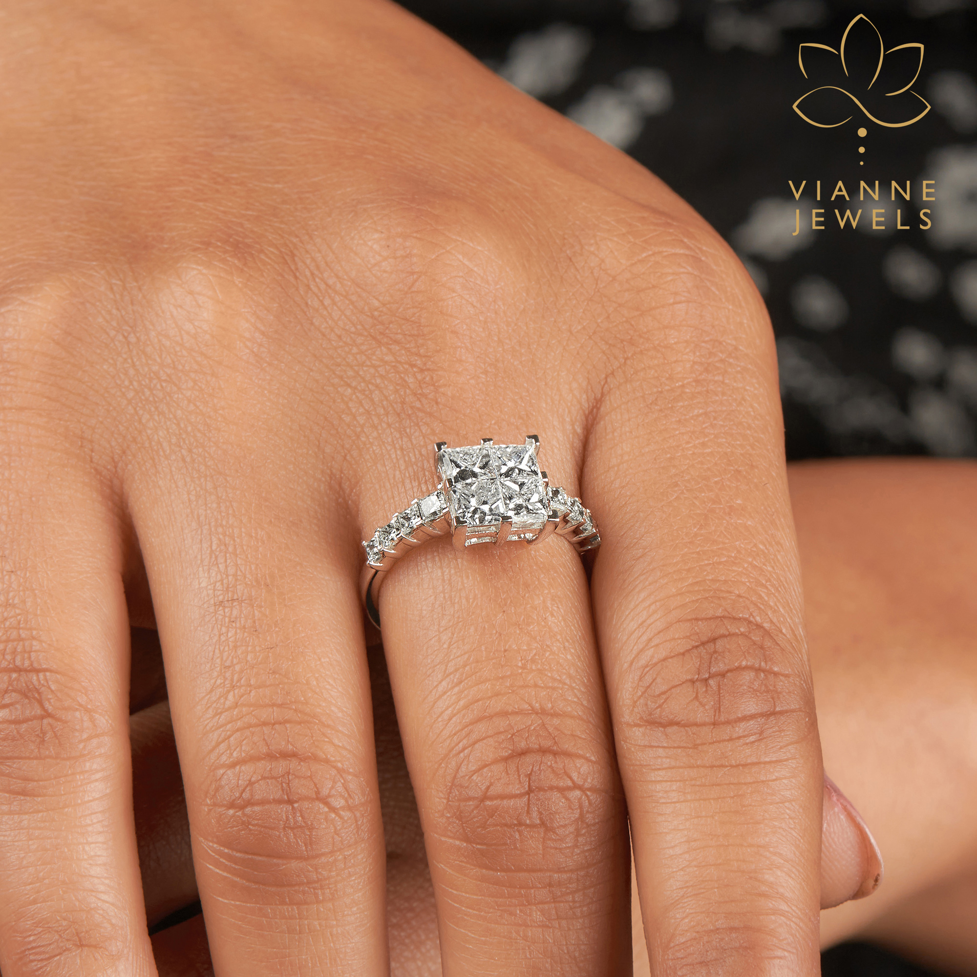 Discover the epitome of refined romance with our Princess Cut Pavé Diamond Engagement Ring, a treasure from the Vianne Jewels exclusive bridal selection.