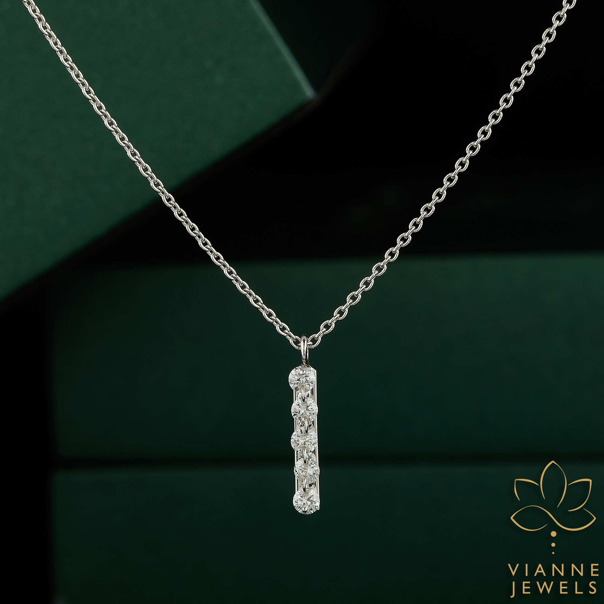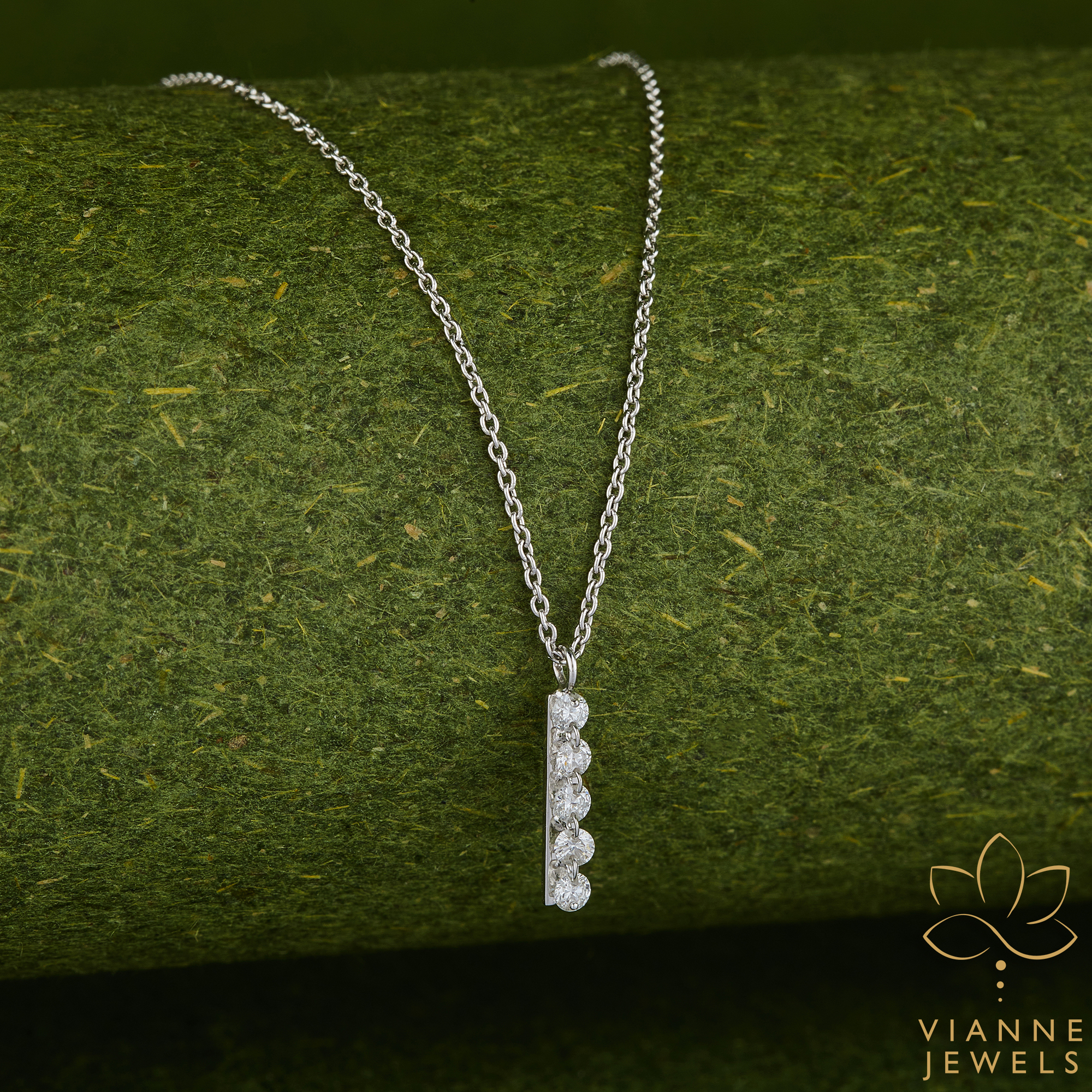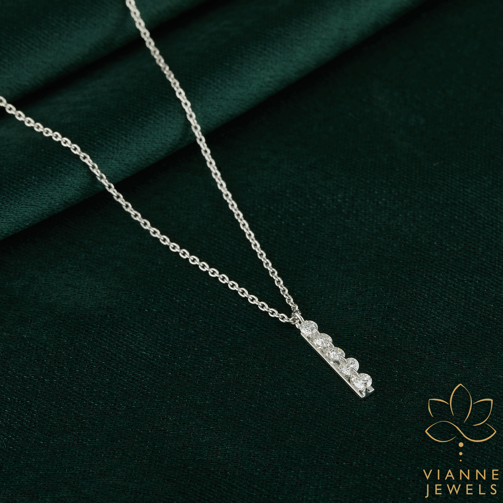 Each diamond is meticulously selected for its brilliance and clarity, ensuring that your pendant catches the light and eyes in any setting. The vertical arrangement of the stones creates a modern silhouette that elongates the neckline, making it a versatile addition to both day and evening ensembles.