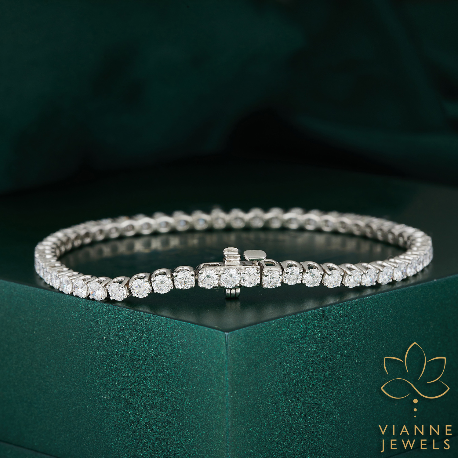 Fastened with a secure clasp, this bracelet is designed for comfort and durability, allowing you to wear it with ease from day to night. Whether you’re dressing up for a special occasion or adding a touch of glamour to your everyday wear, the “Radiant Elegance” tennis bracelet is sure to capture attention and become a cherished addition to any jewelry collection.