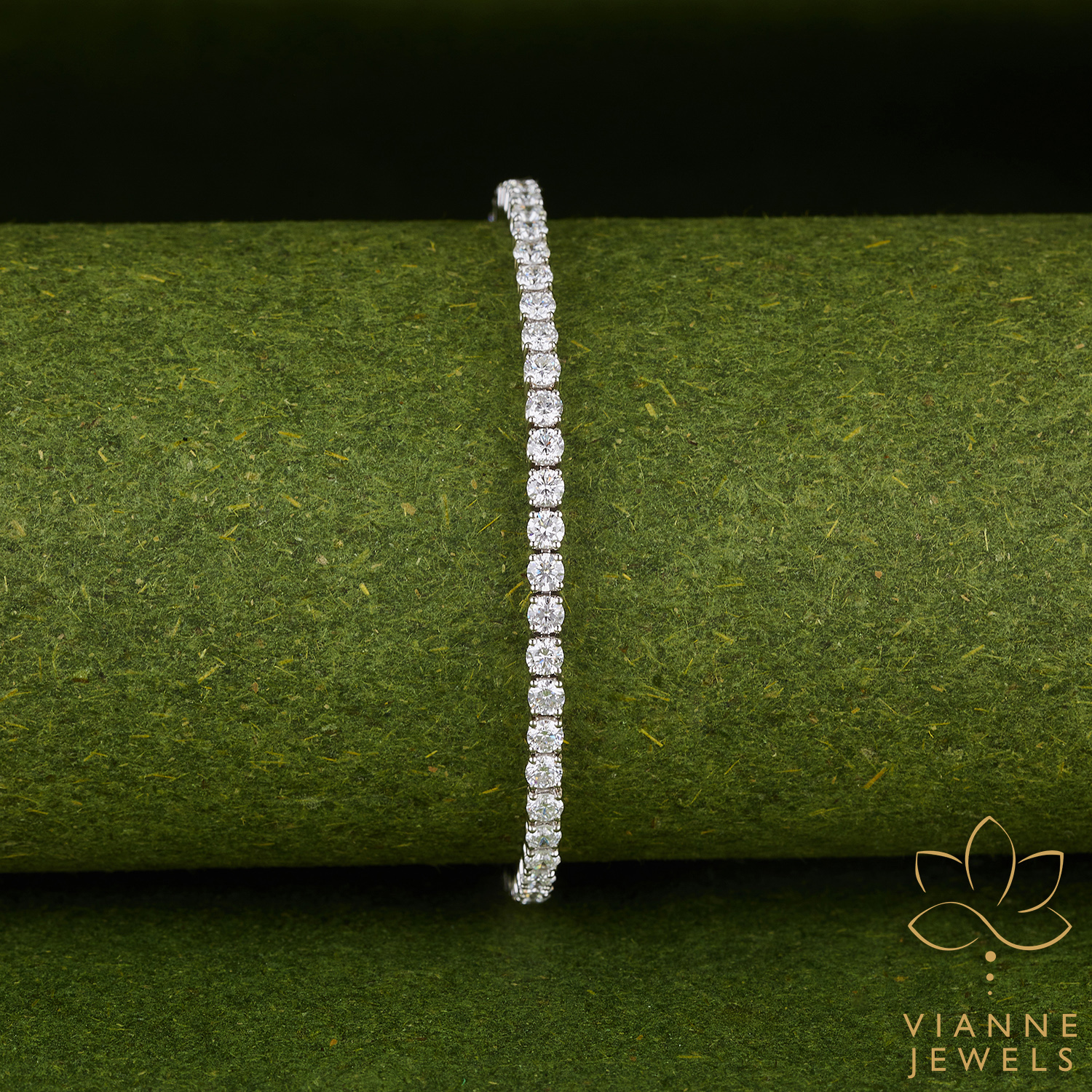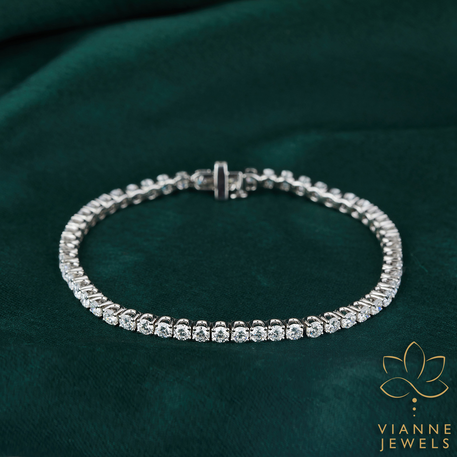 Lab-grown diamonds offer the same physical, chemical, and optical characteristics as mined diamonds but are a more sustainable and ethical choice. Each diamond in this bracelet is hand-selected for its exceptional clarity and color, ensuring that your piece will radiate with pure, unadulterated shine.