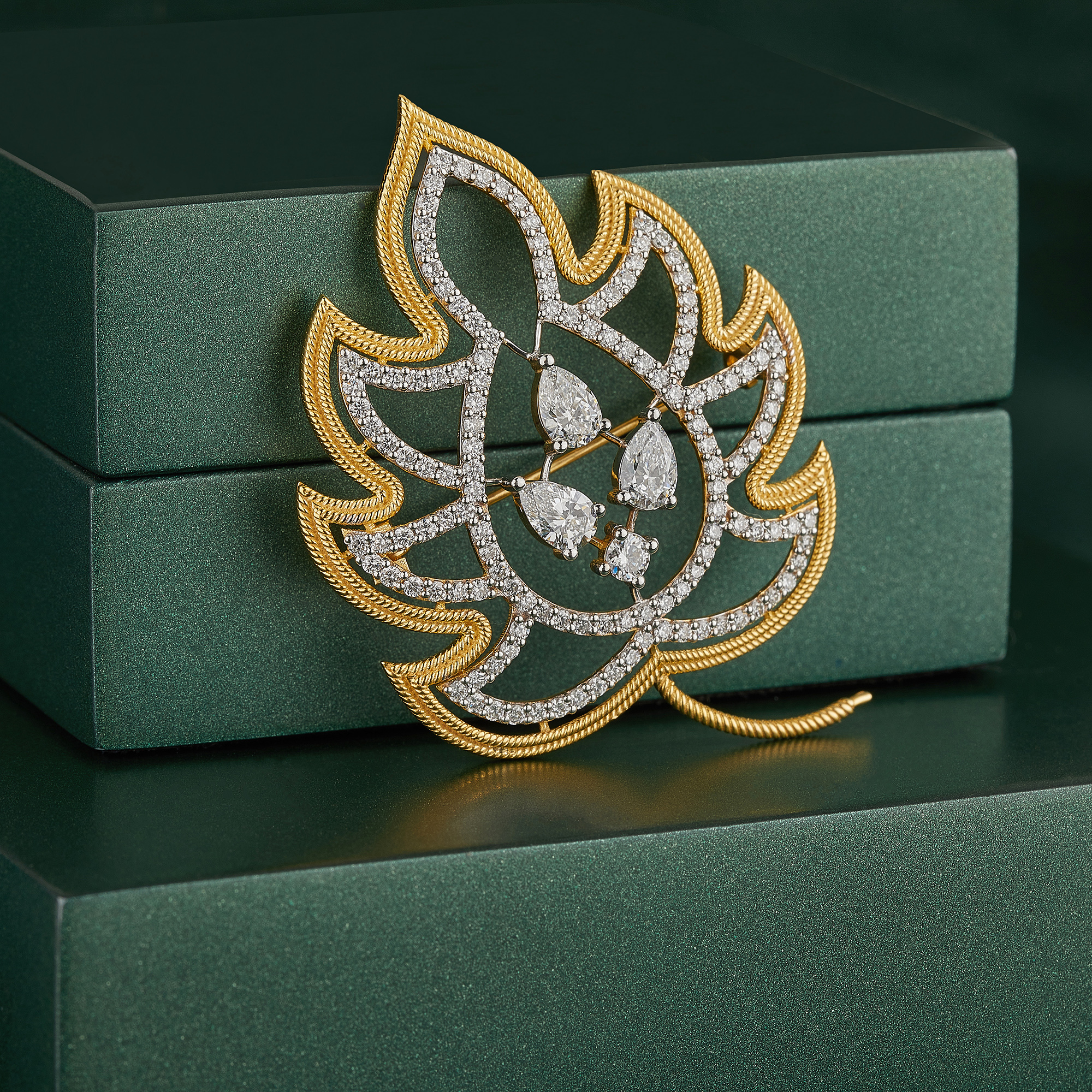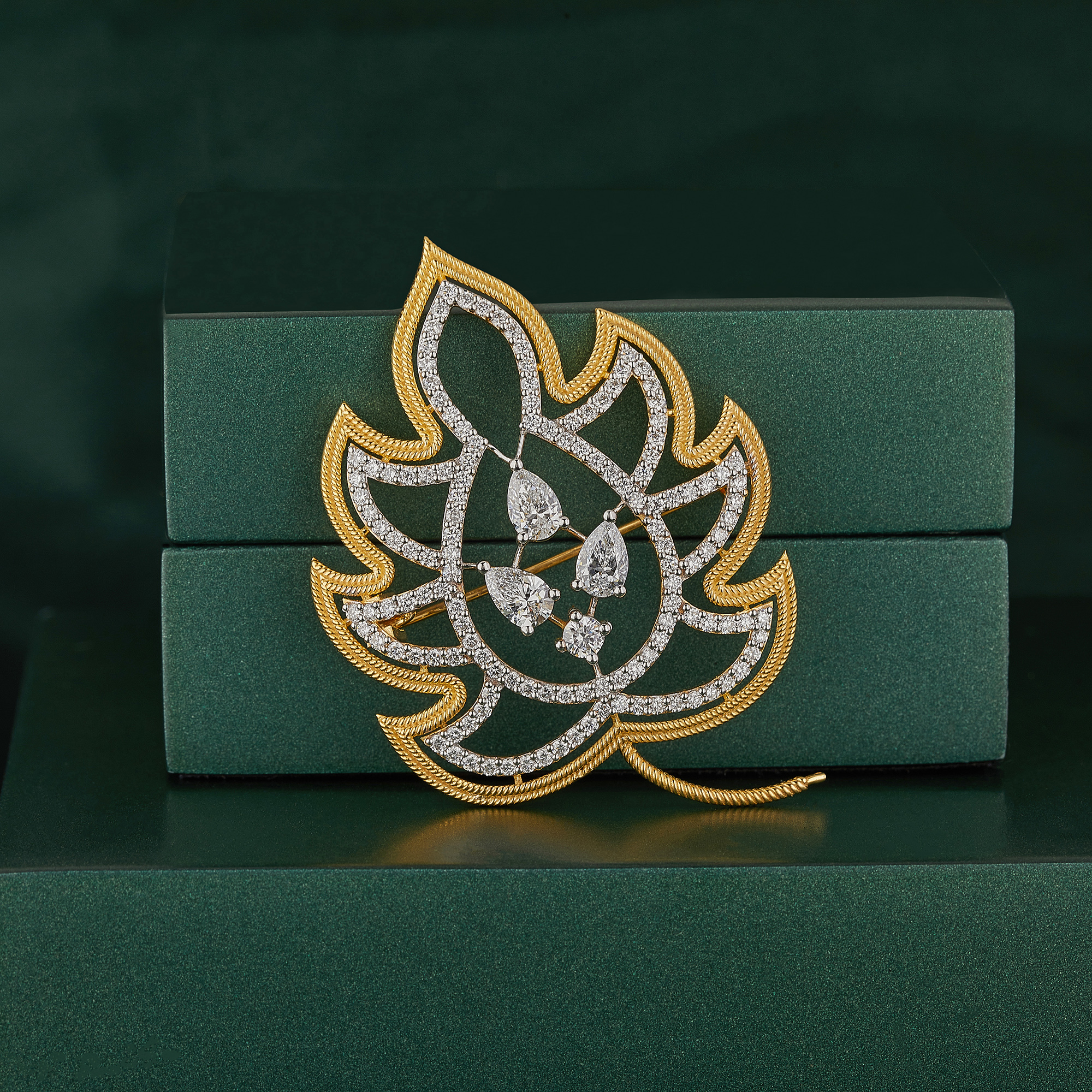 - Captivating Presence: The brooch is adorned with a constellation of lab-grown diamonds, creating a spectacular play of light that brings the lotus design to life.