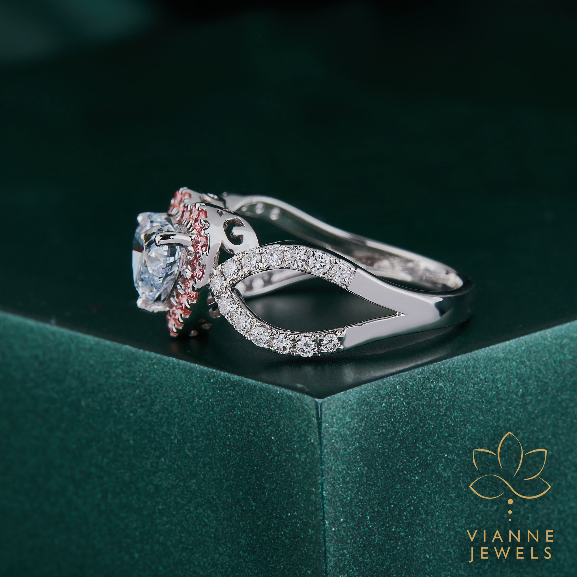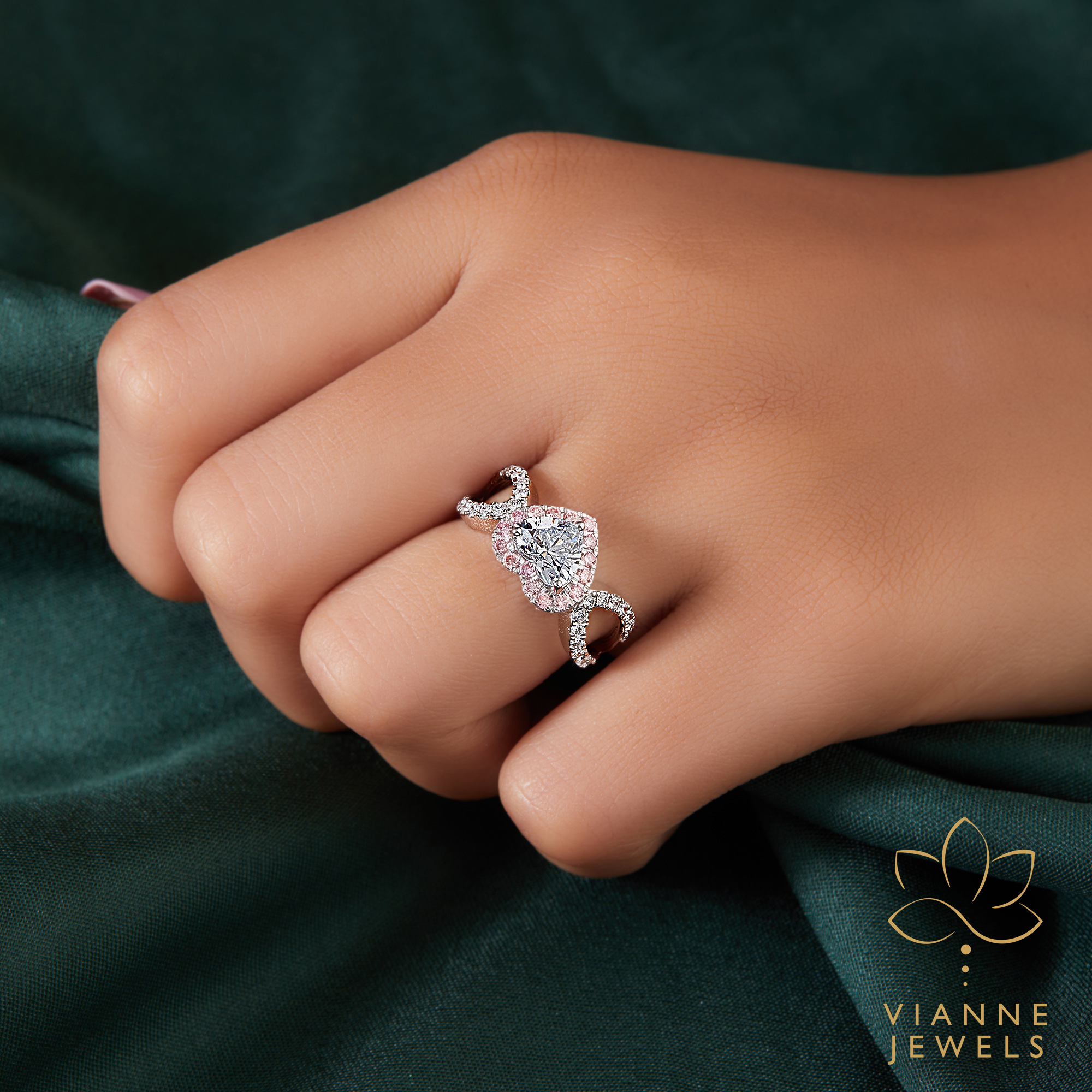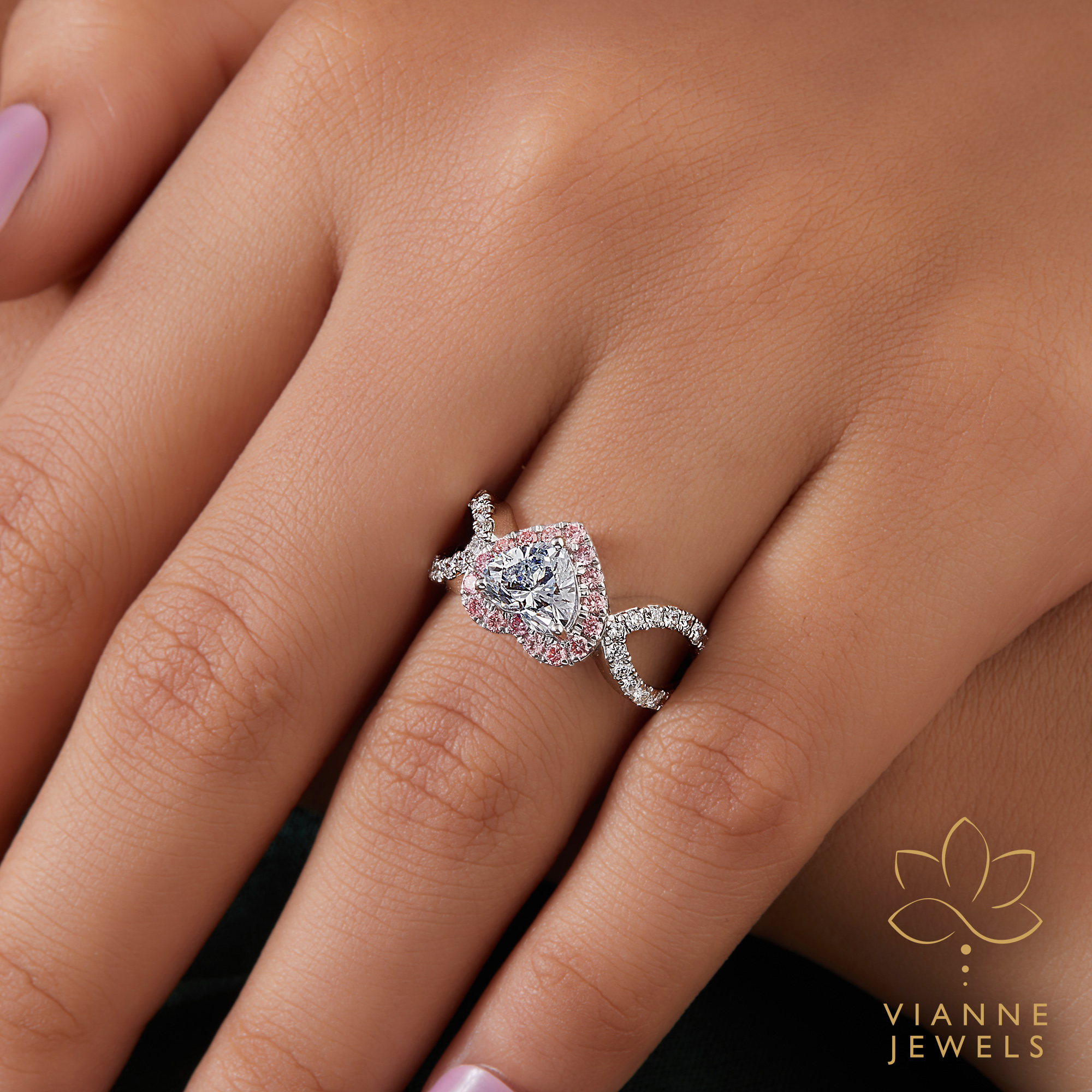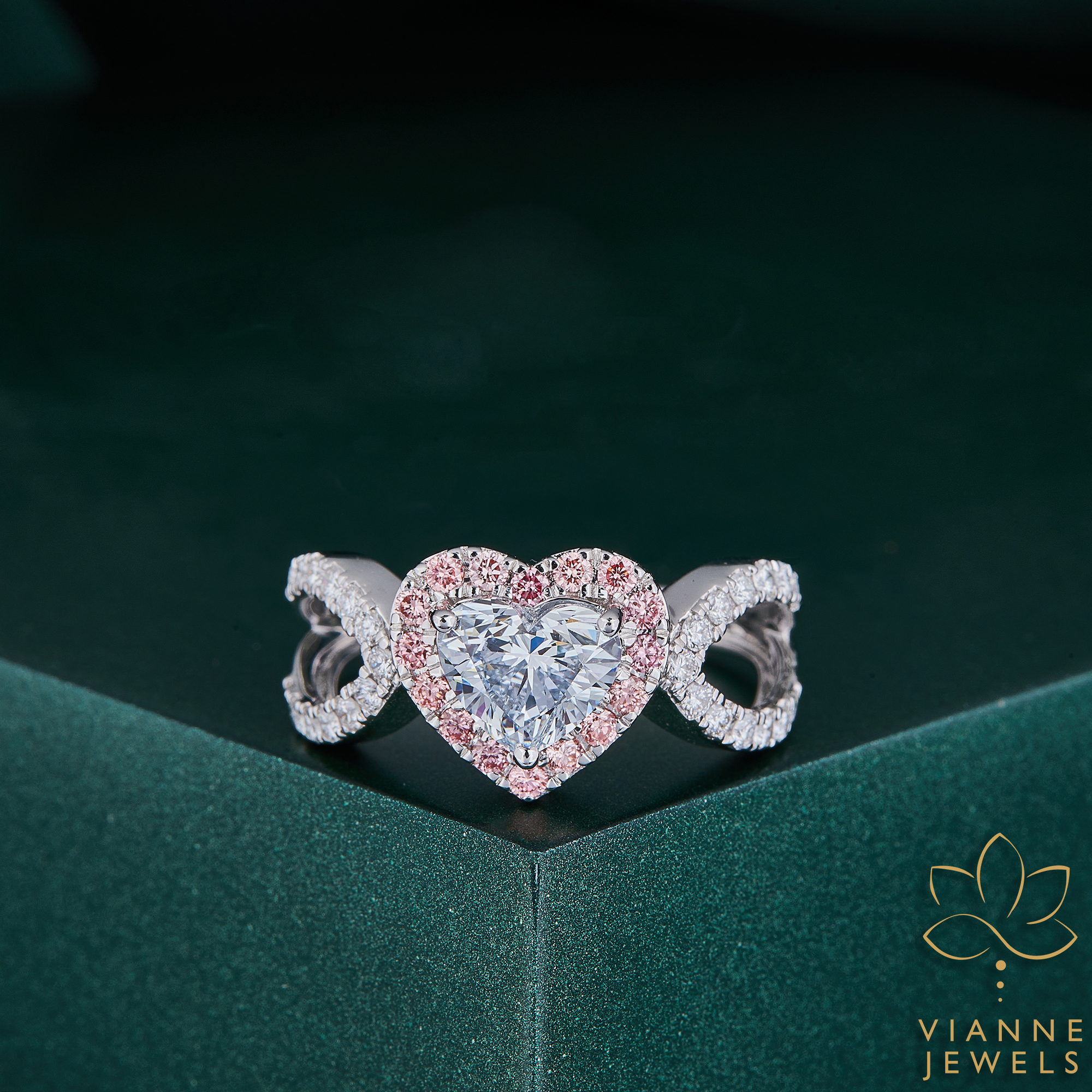 “Feel the pulse of romance with our ‘Romantic Heartbeat’ Halo Ring, a testament to love that combines the timeless symbol of a heart with the modernity of lab-grown diamonds. At the center of this exquisite piece lies a lab-grown diamond, cut into the perfect shape of a heart, symbolizing pure love and emotional connection. This central gem is lovingly enveloped by a halo of delicate pink pavé diamonds, adding a blush of color and a whisper of tenderness.