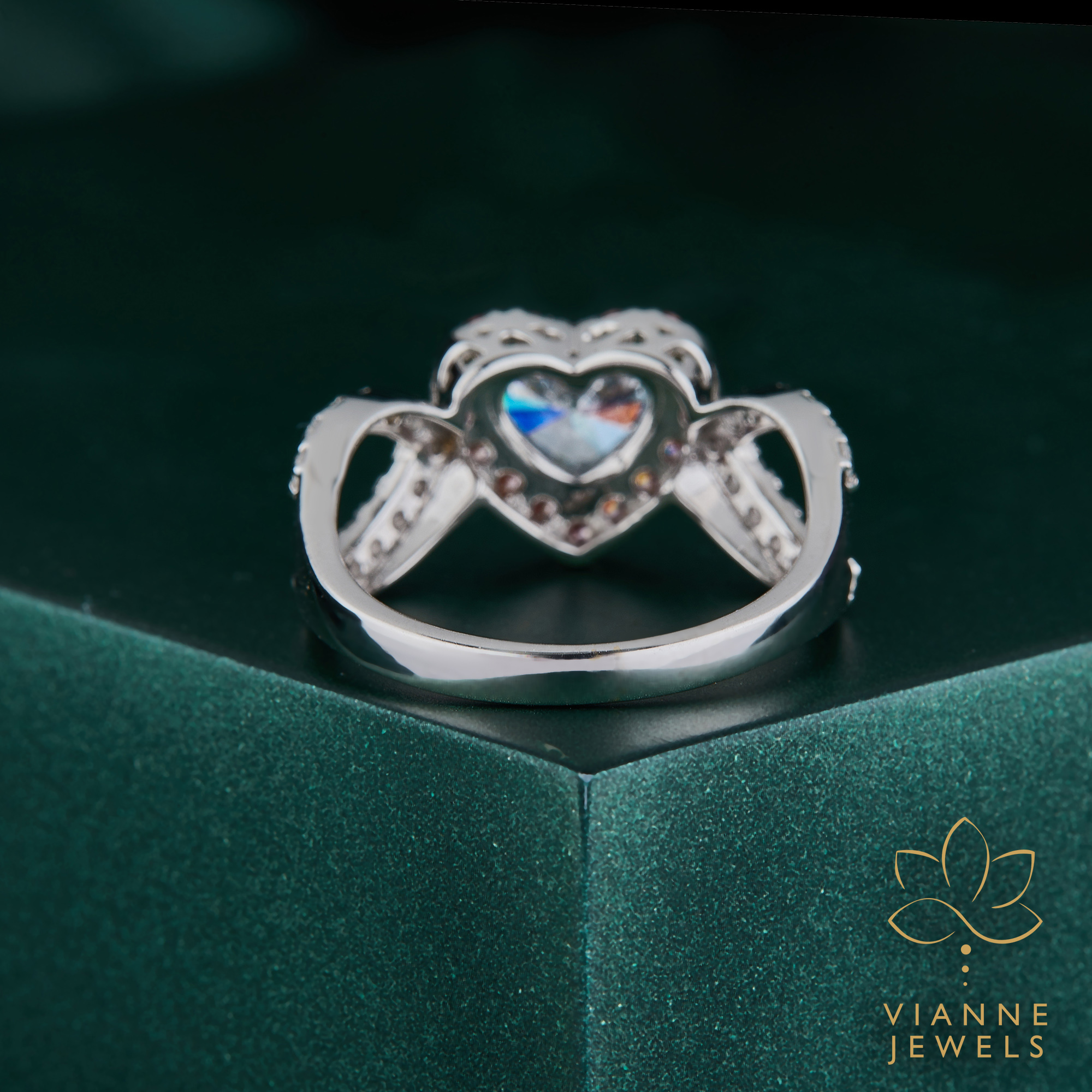 Perfect as an engagement ring, a promise ring, or a gift of affection, this ring is a daily reminder of love’s enduring power. The band itself is adorned with sparkling pavé diamonds, ensuring that the ring dazzles from every angle and declares your love story to the world.