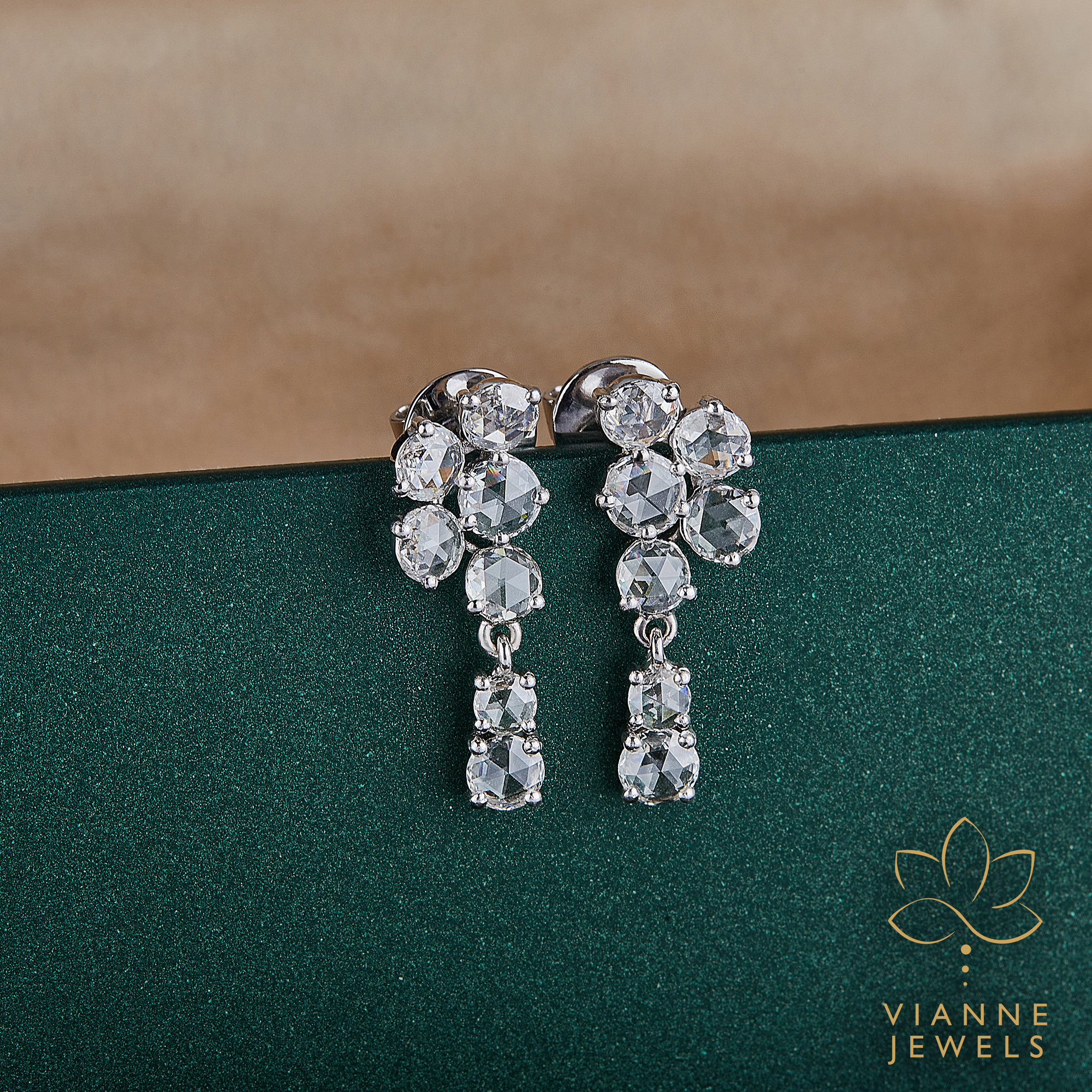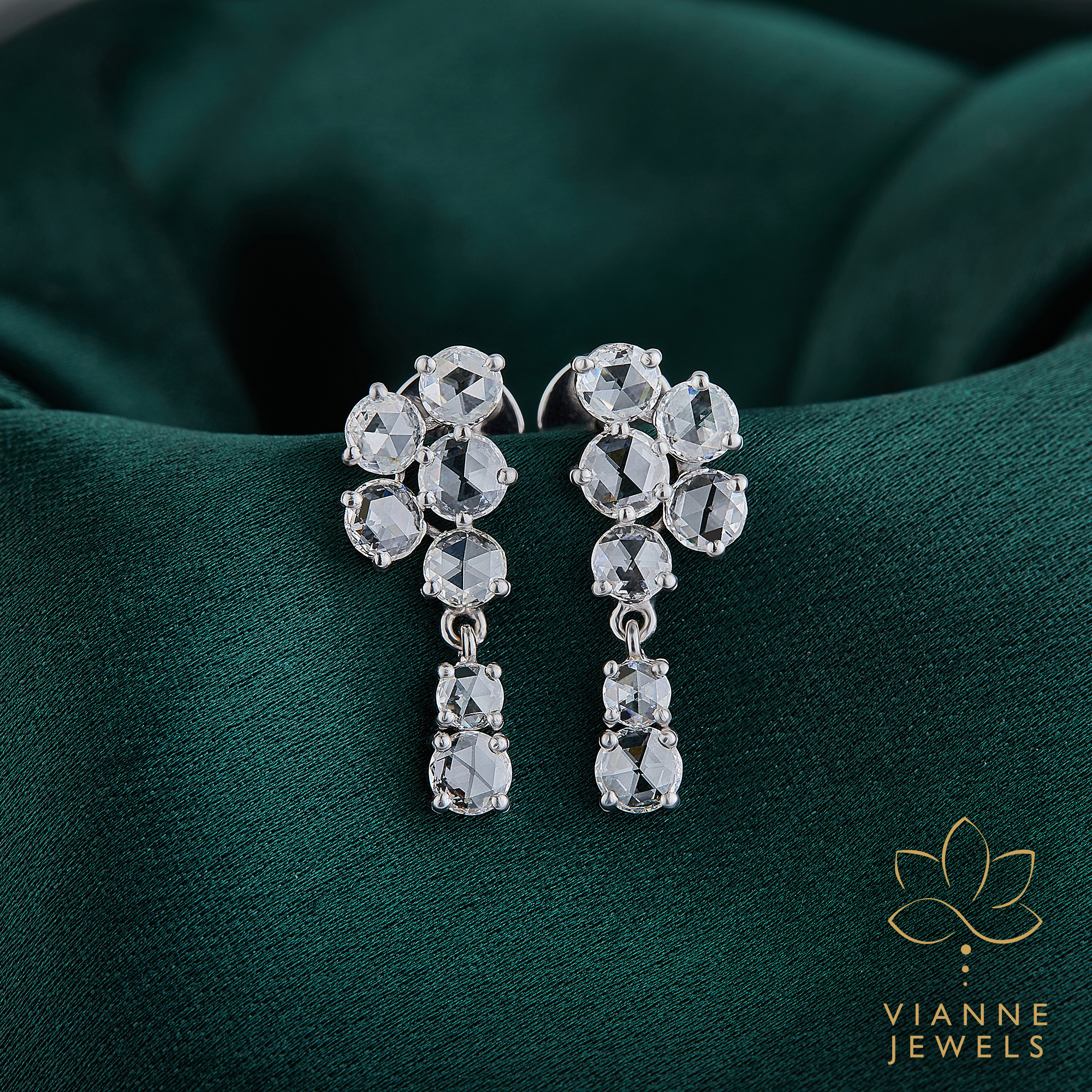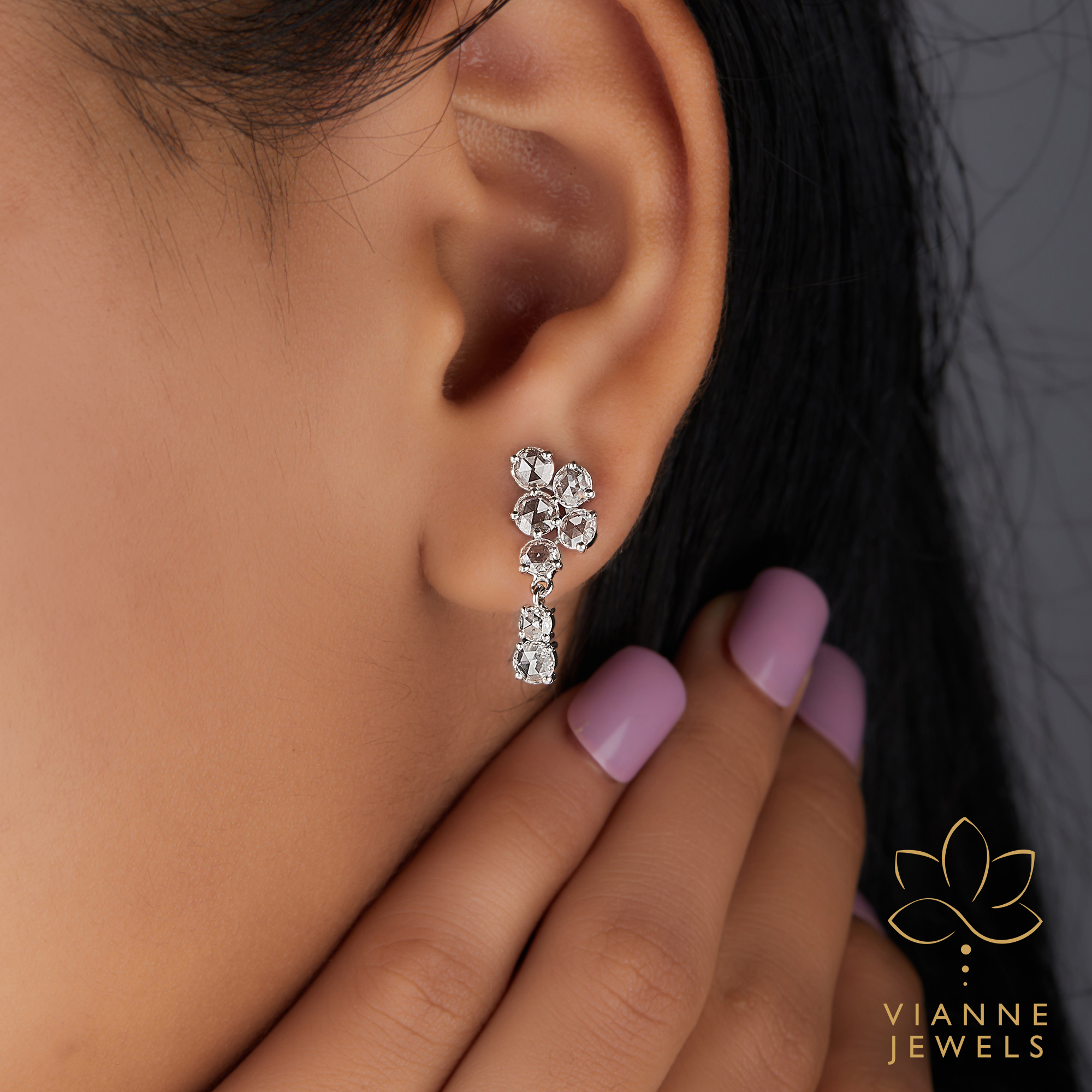 “Step into the spotlight with our Shimmering Cascade Earrings, where each tier of lab-grown diamonds is precisely set to create an enchanting chandelier effect. Reflecting the latest in eco-friendly luxury, these earrings feature diamonds crafted with care for the environment, providing an ethical alternative to traditional gemstones without compromising on the sparkle.
