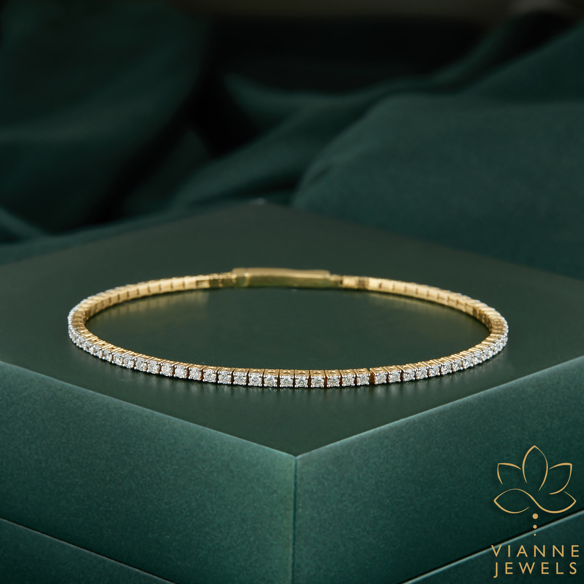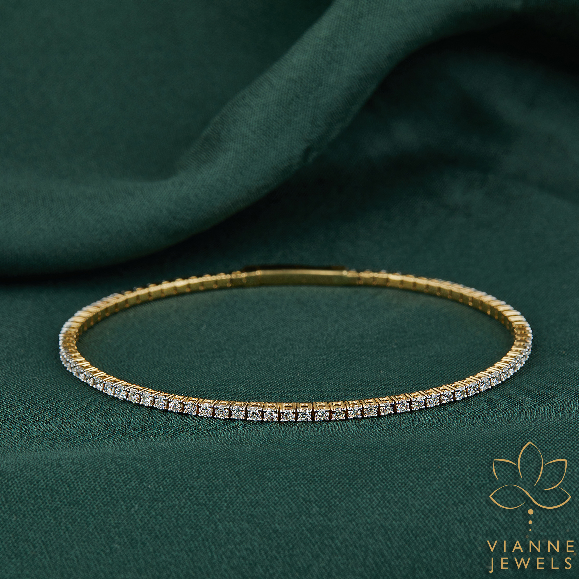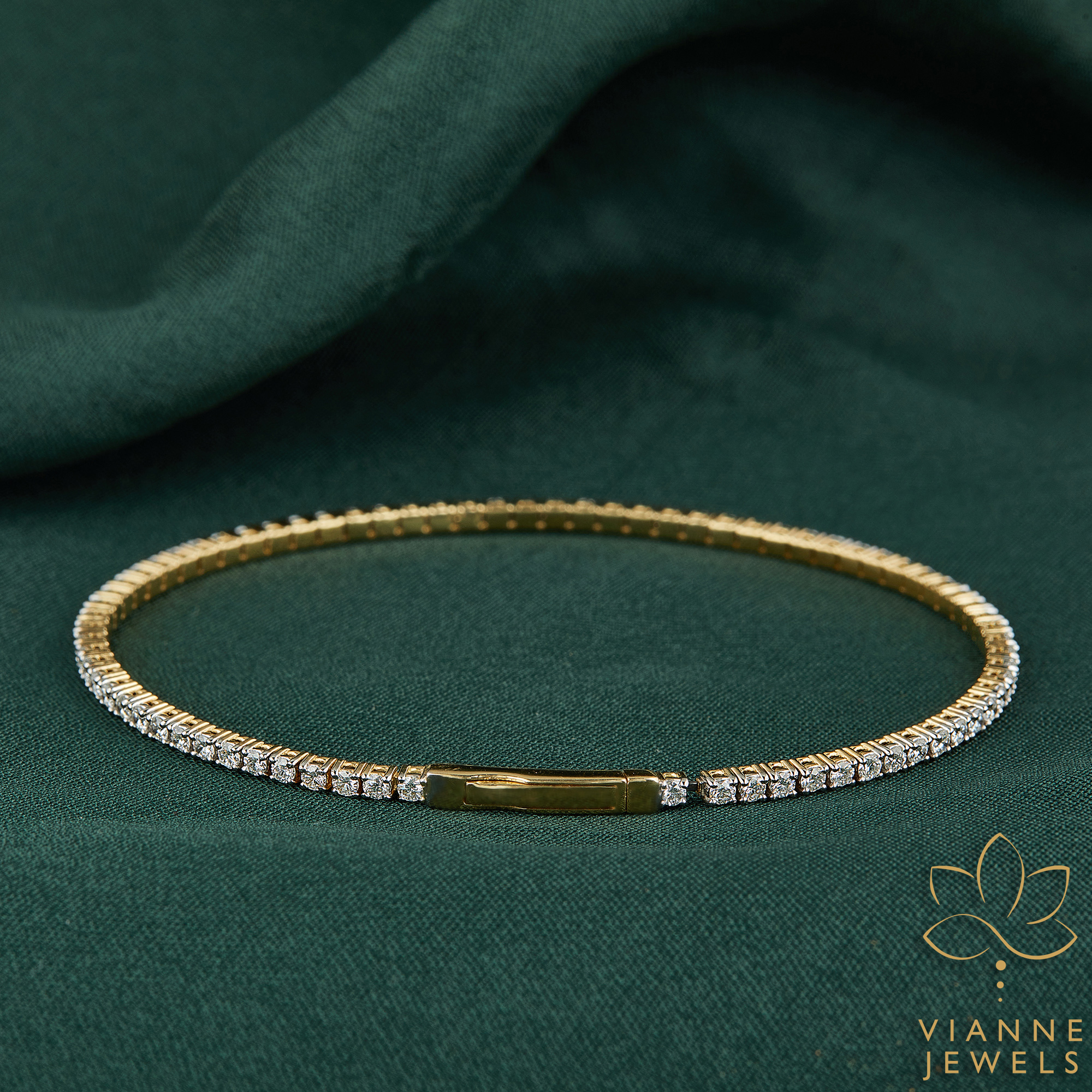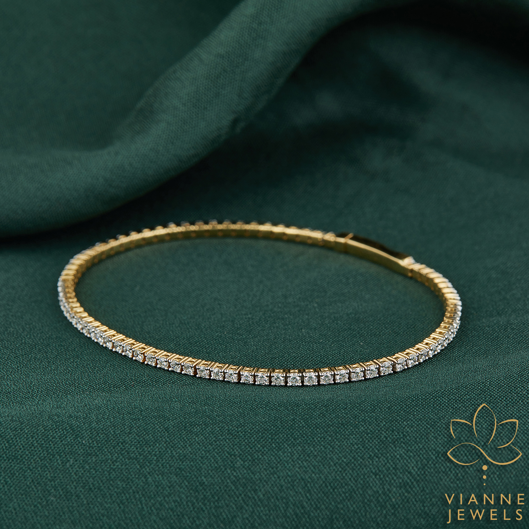 The ‘Sunbeam Sparkle’ Bracelet captures the essence of sophisticated design and ethical luxury. Forged in 18K gold, this bracelet presents a sleek and flexible form, allowing for ease of wear while ensuring a secure fit. Embellished with a continuous row of lab-grown diamonds, each stone sparkles like a droplet of sunlight captured in crystalline form.