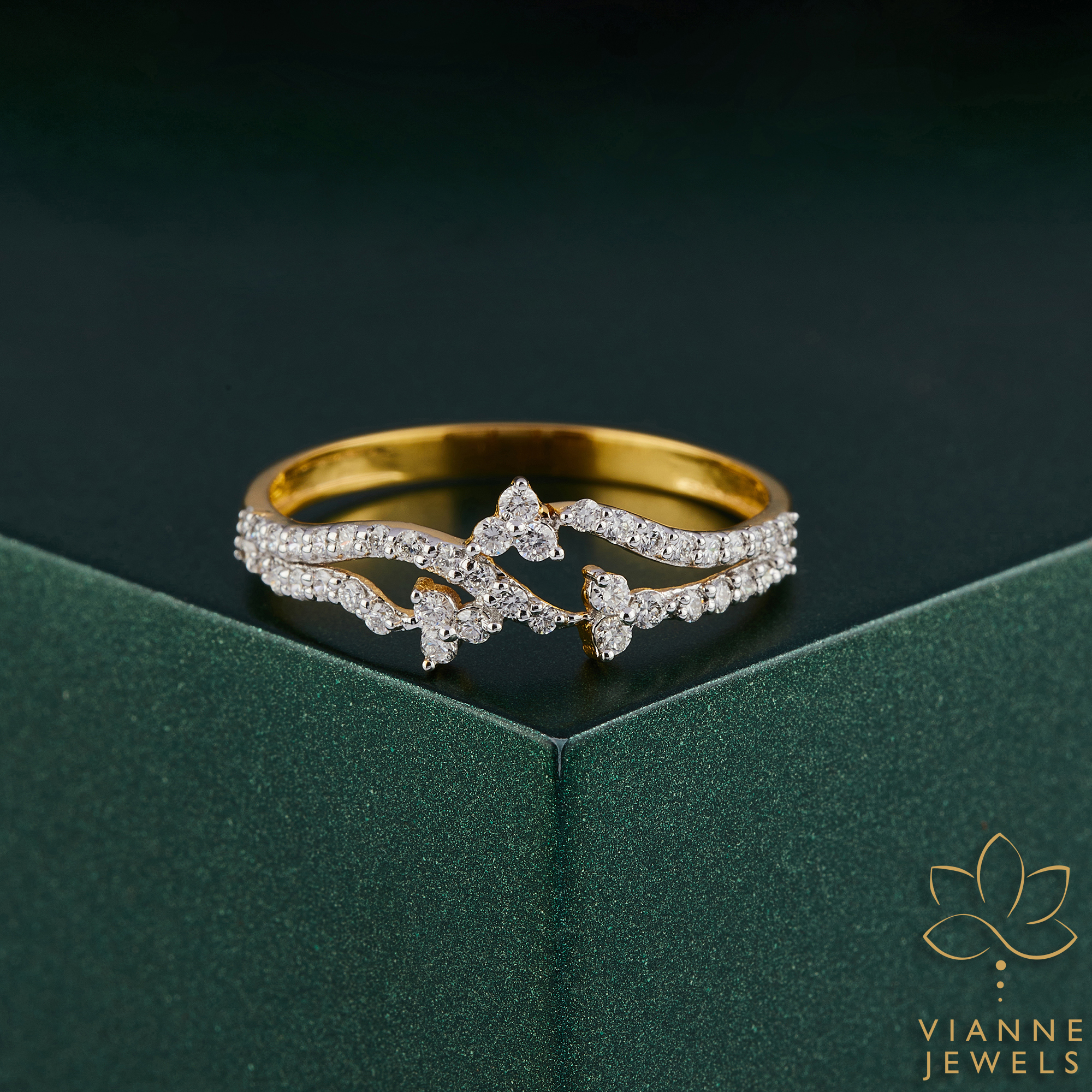 “Introducing our “Whispers of Nature” ring – a masterpiece that marries the elegance of nature with the brilliance of technology. Expertly crafted from the finest 14K gold, this ring takes inspiration from the gentle rustle of leaves, a design that winds enchantingly around your finger.